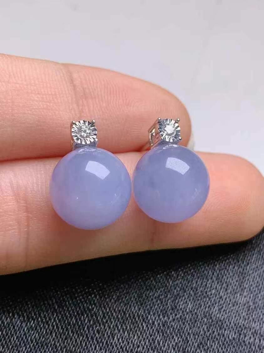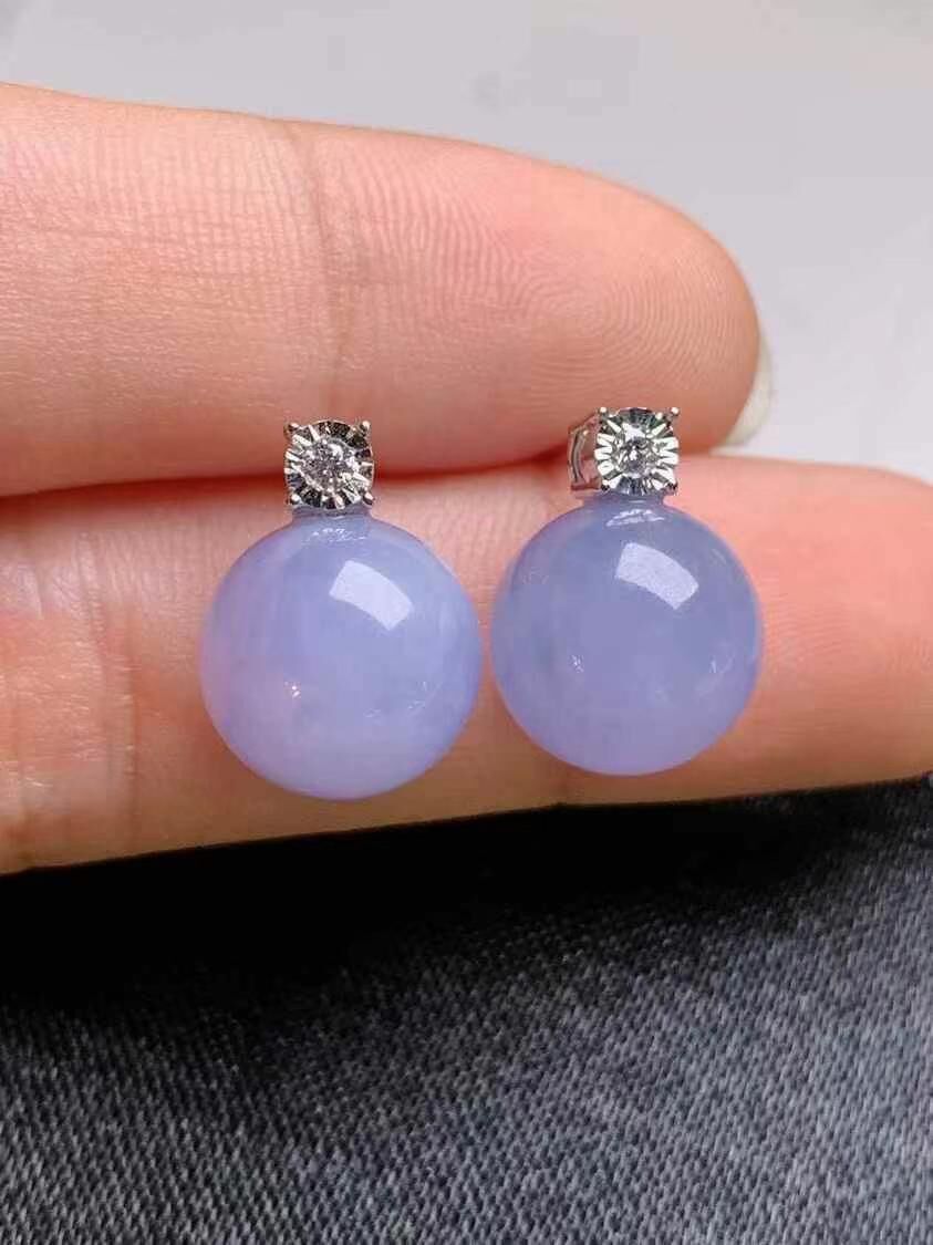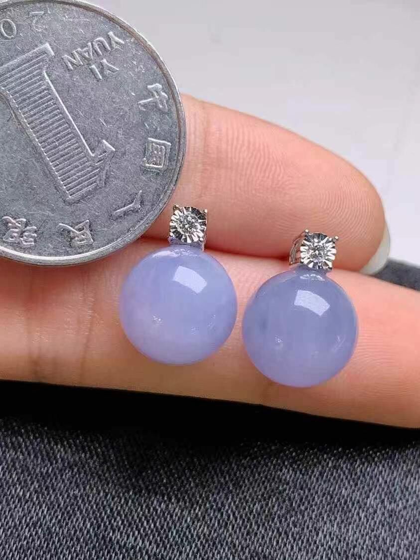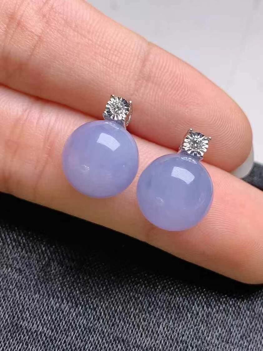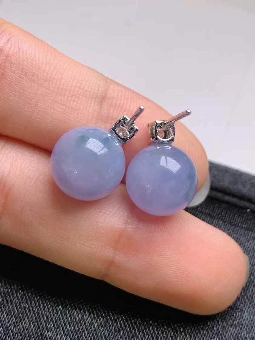 • 翡翠紫羅蘭珠珠耳釘 (10.8mm直徑),天然翡翠A玉, 緬甸玉, Jade, Jadeite