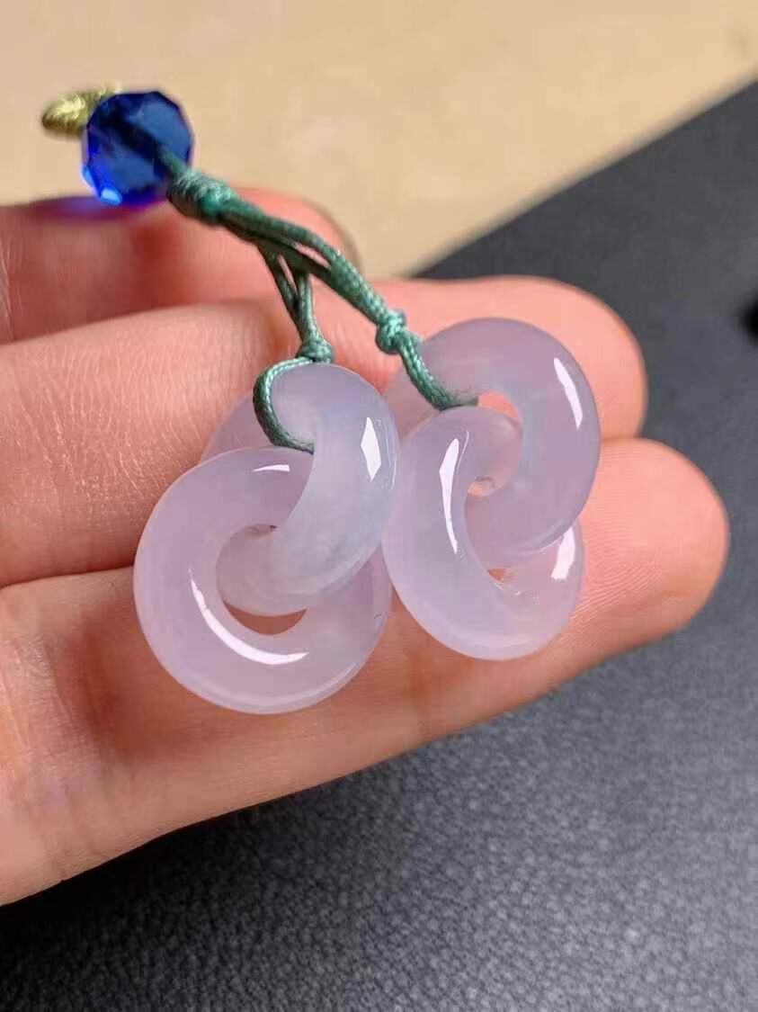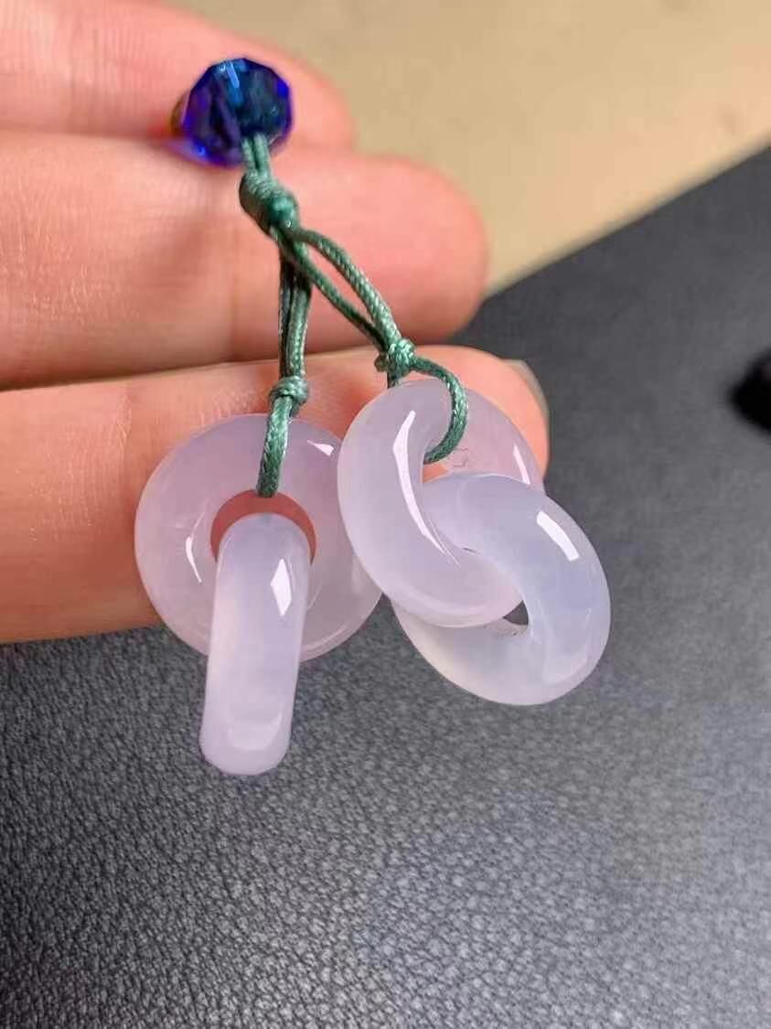 天然翡翠A玉,冰種紫雙環,環環相扣設計,水頭好,通透度高,紫色溫婉優雅,可做耳環或吊墜。