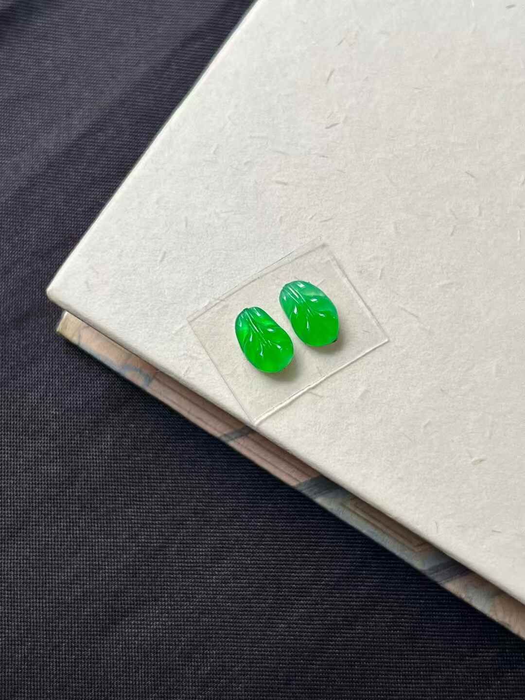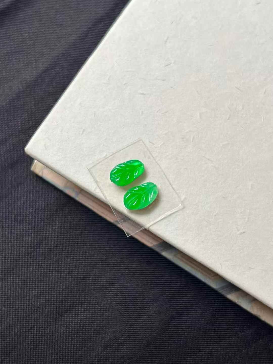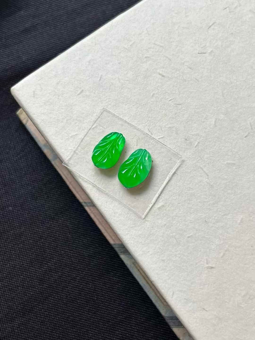 • 翡翠玉葉一對,天然翡翠A玉, 緬甸玉, Jade, Jadeite