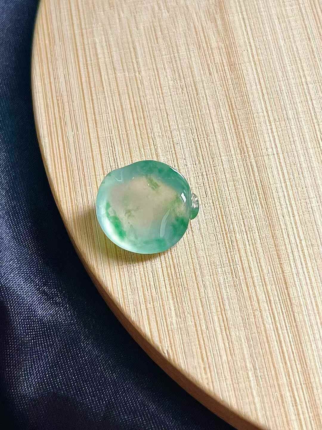 天然翡翠A玉,冰潤水透,種老細膩起熒。