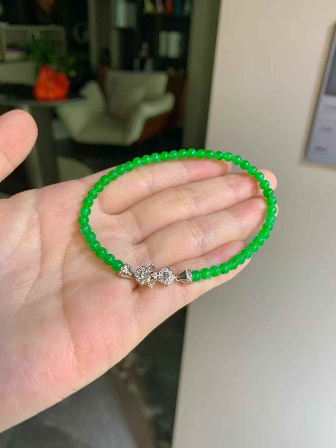 • 翡翠珠子項鏈手串一套 (3.5-3.7mm直徑),天然翡翠A玉, 緬甸玉, Jade, Jadeite