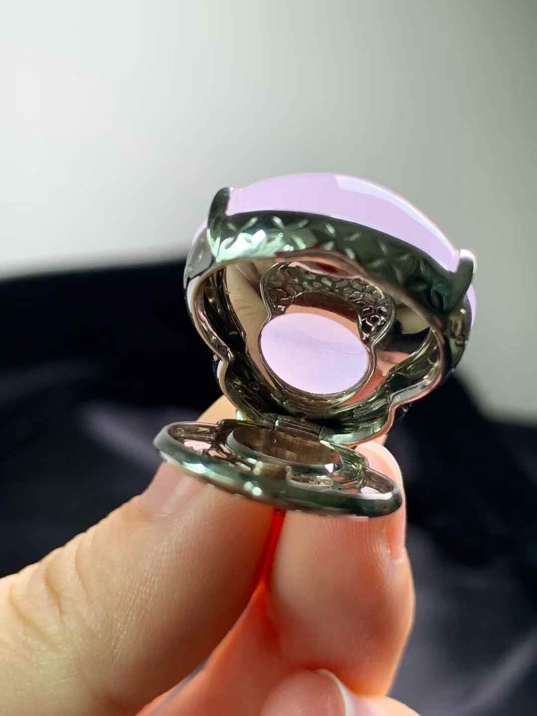 天然翡翠A玉,18K金鑲嵌,紫色濃郁。