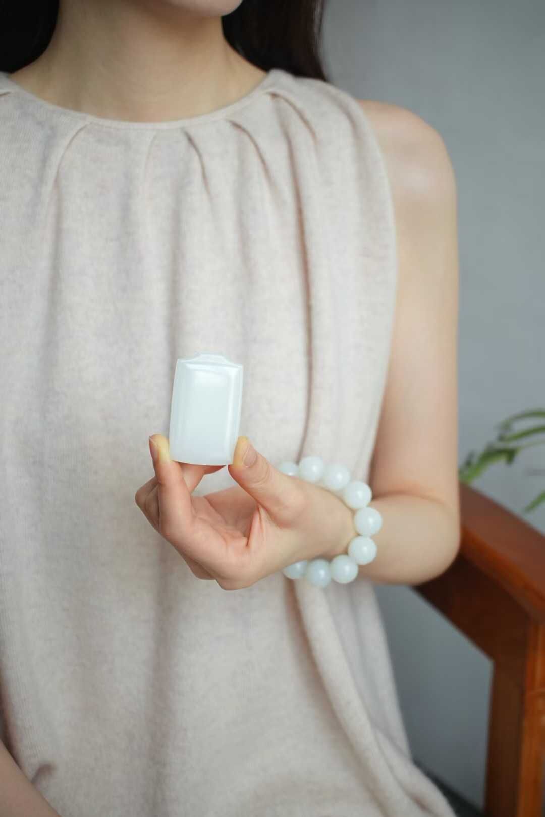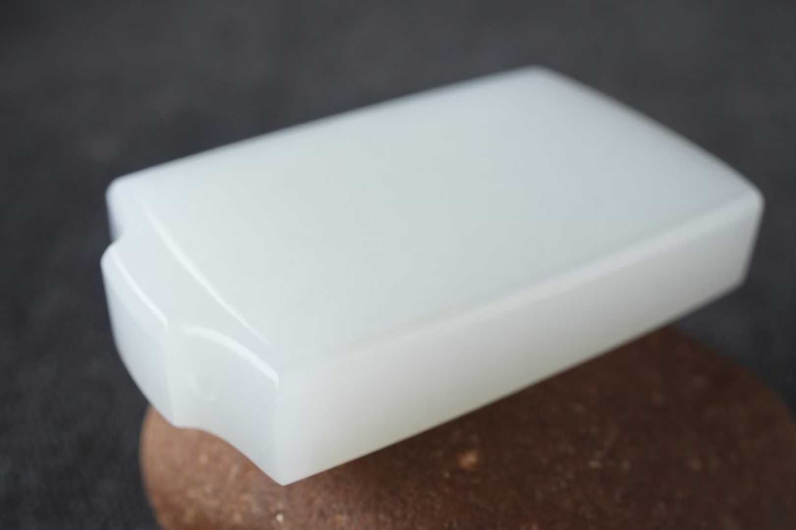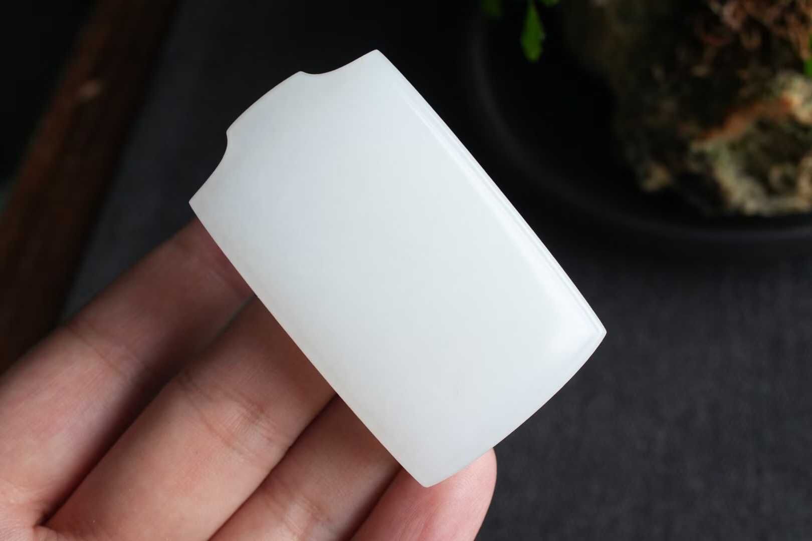 收藏級,很厚實的和田玉羊脂白玉牌,白度亮眼,玉質細膩脂粉飽滿,剛性足,內裡結構凝實渾厚,牌型規整大氣,線條流暢
