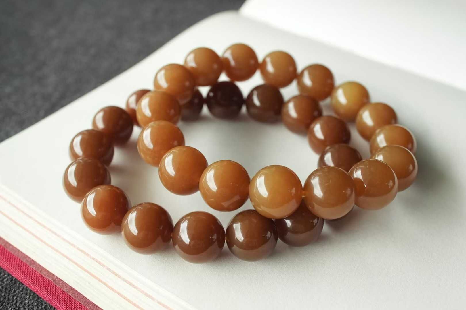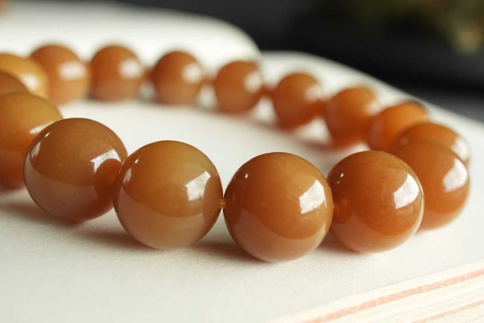 收藏級,和田玉新疆且末金山礦純糖高貨料,兩串大尺寸老紅糖、金糖串串,顏色非常非常好!都是色正油糯到位的高貨料,滿屏油感都要溢出來了,不用盤都冒油的好料子,顆顆色澤均勻醇厚全糖色,區別普通糖玉