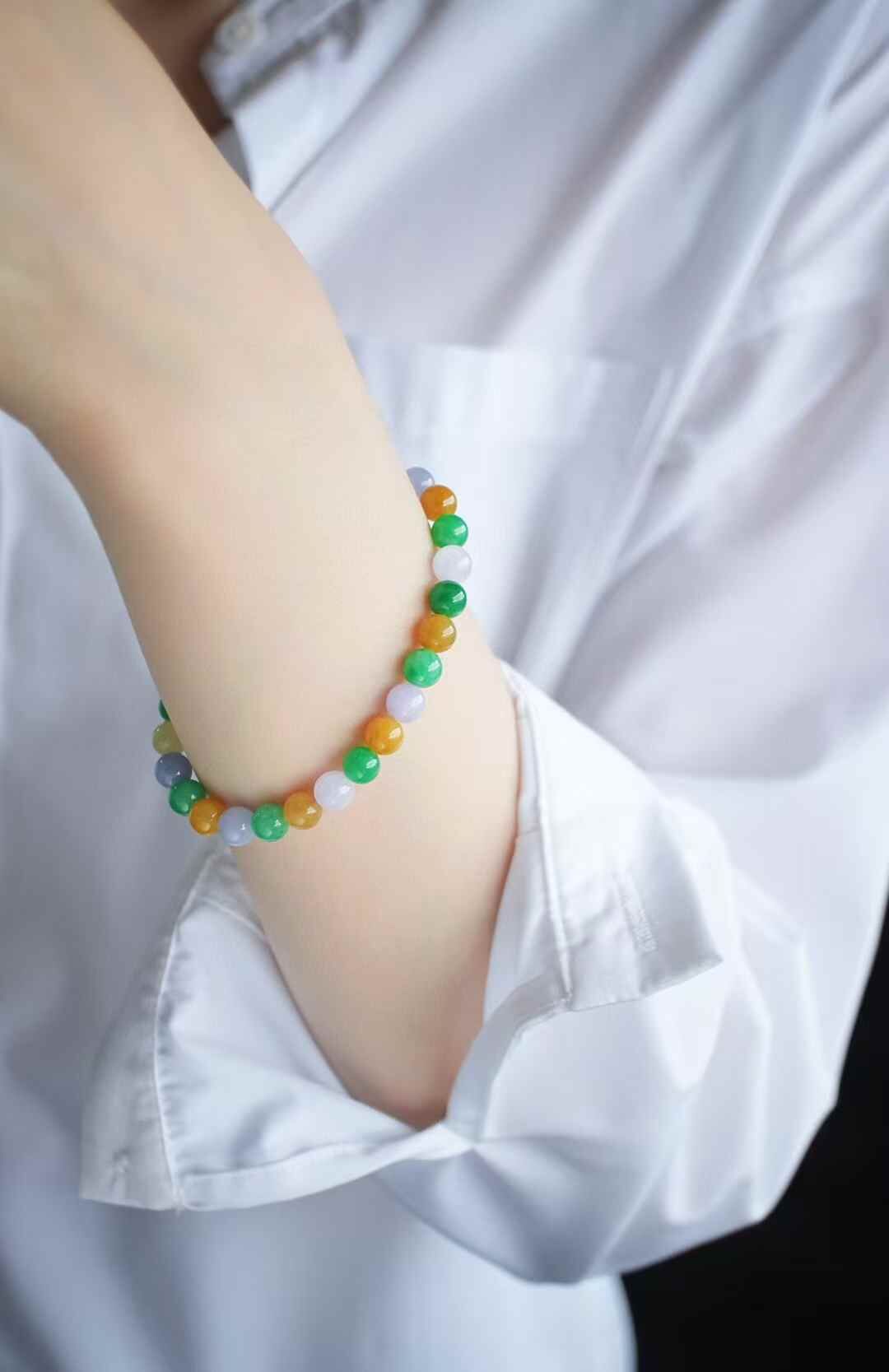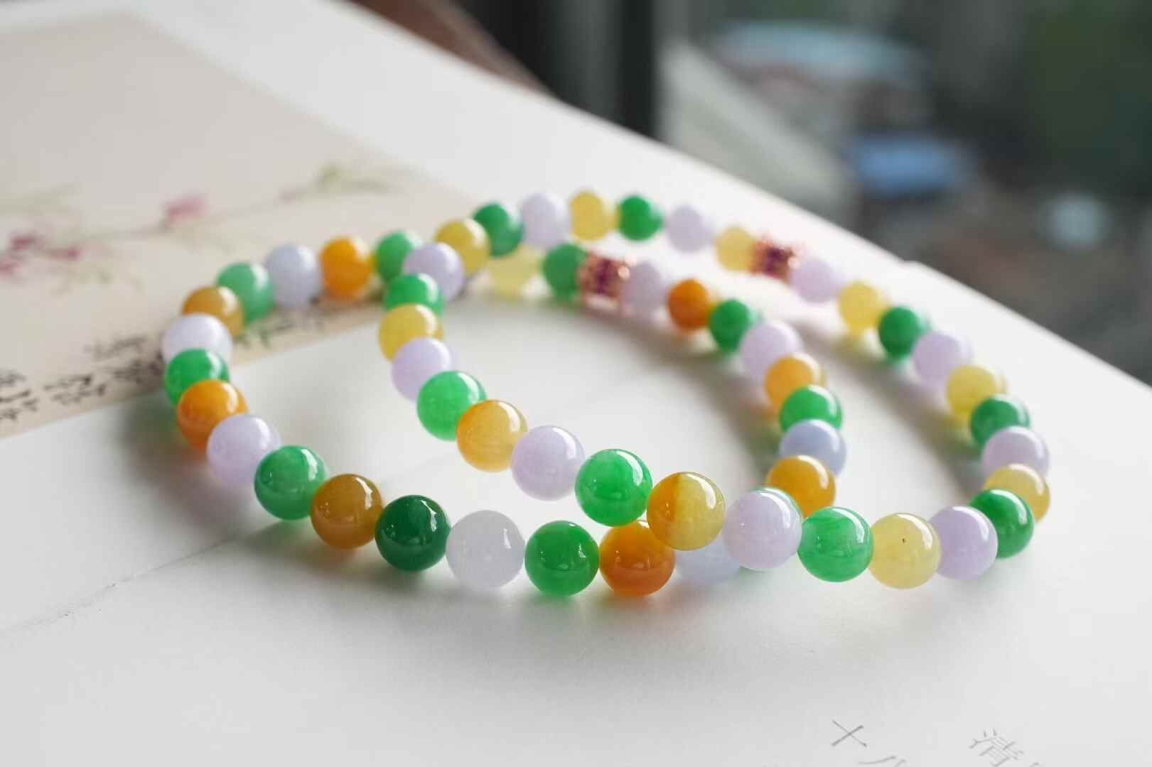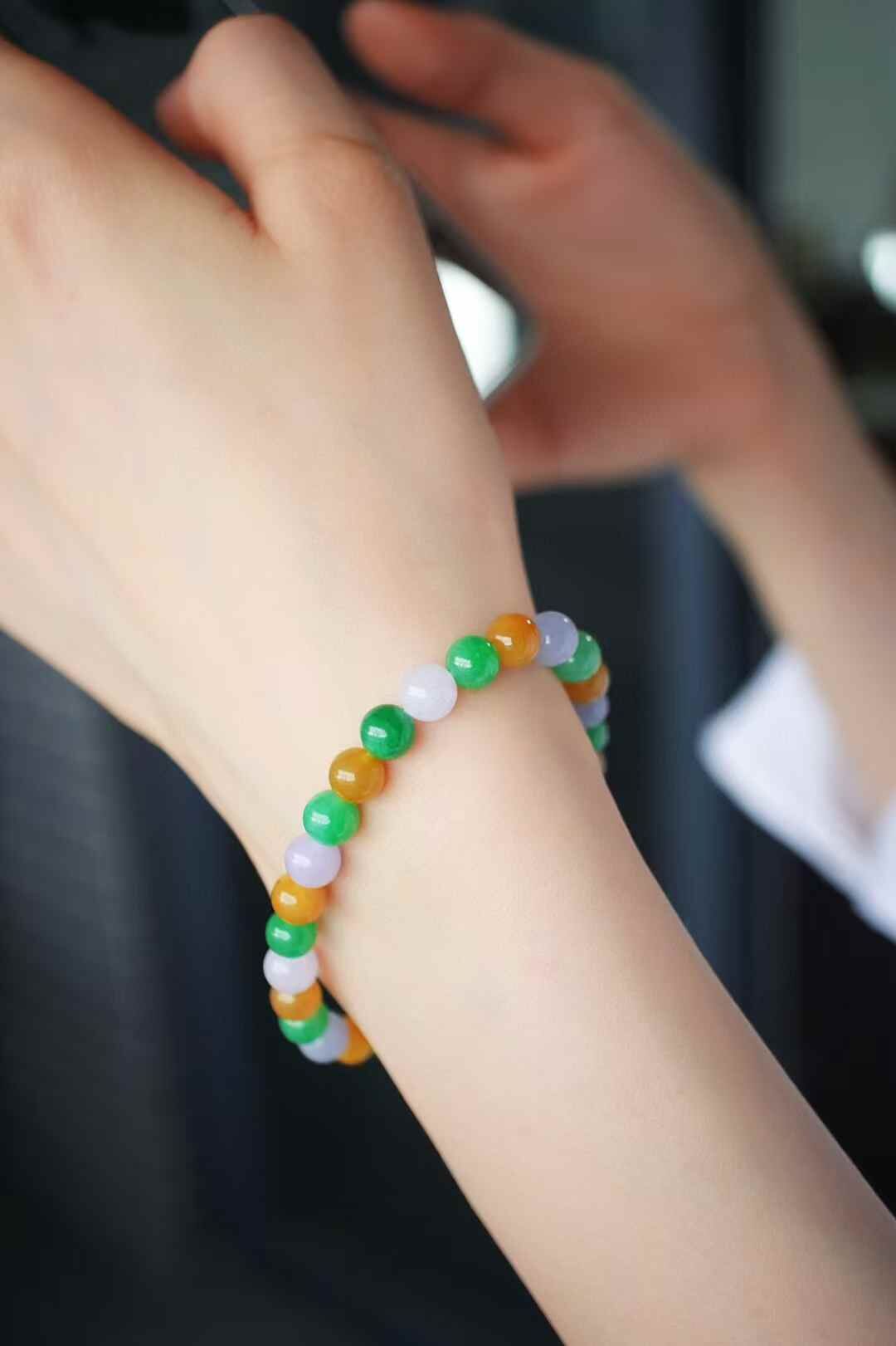 • 翡翠三彩手串 (6.2-6.5mm直徑),天然翡翠A玉, 緬甸玉, Jade, Jadeite
