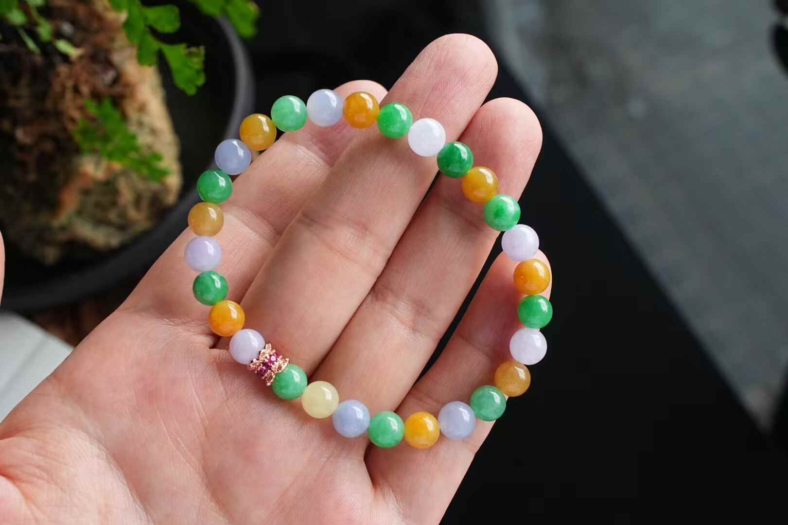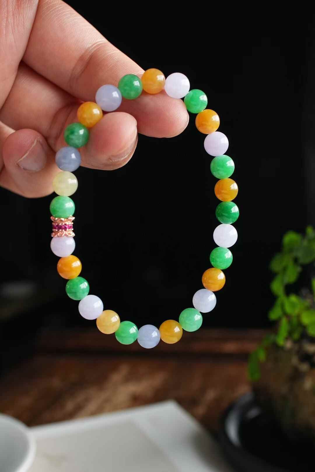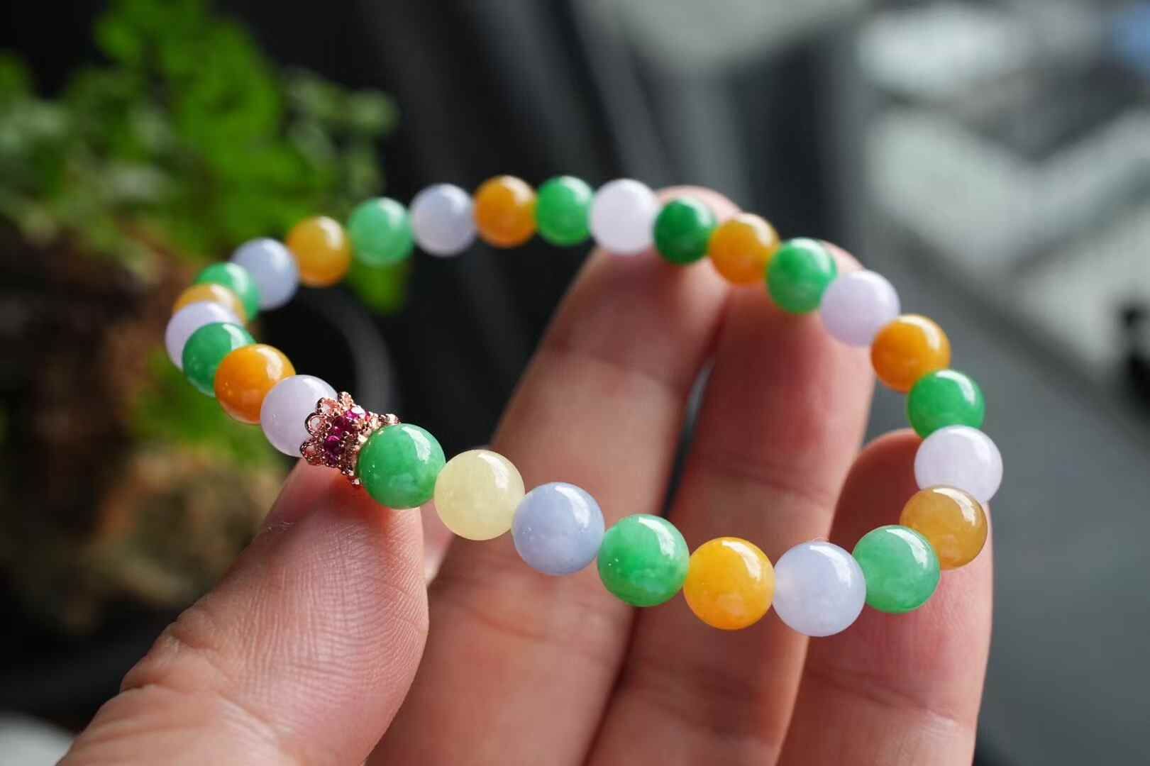 • 翡翠三彩手串 (6.2-6.5mm直徑),天然翡翠A玉, 緬甸玉, Jade, Jadeite