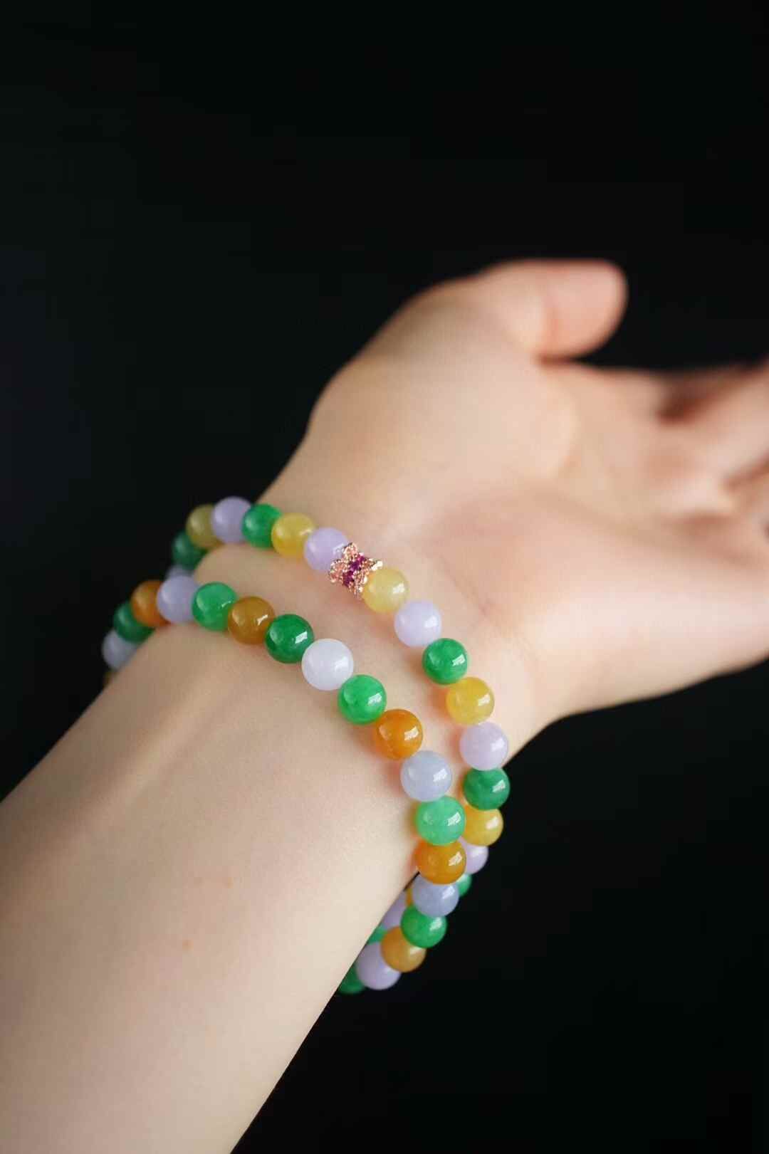 616849 翡翠三彩手串