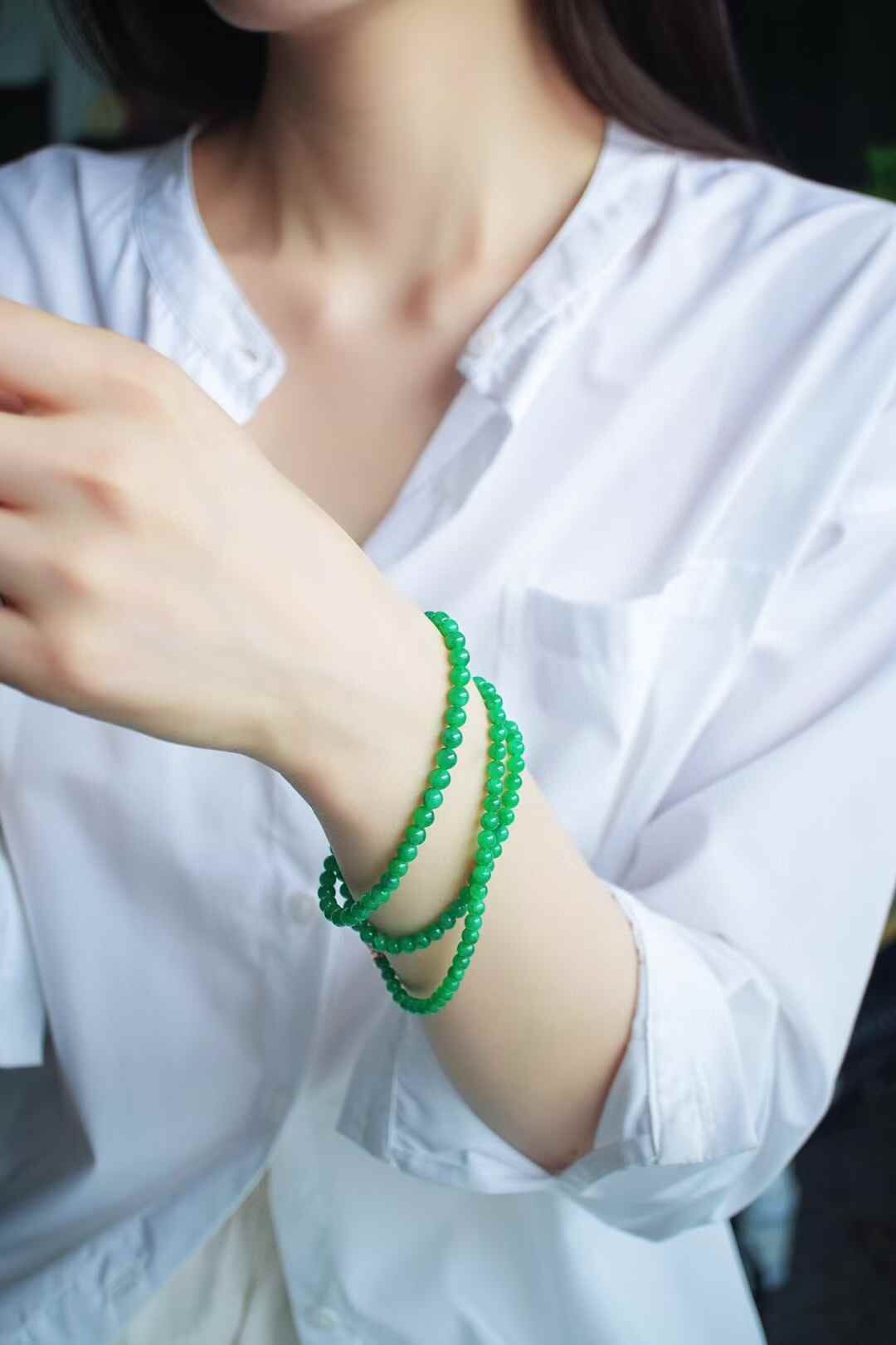 616854 翡翠老種正陽綠珠鏈
