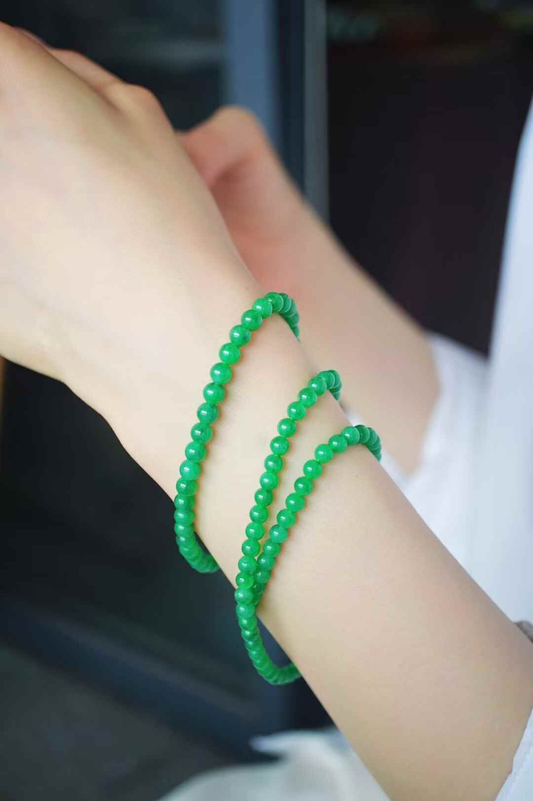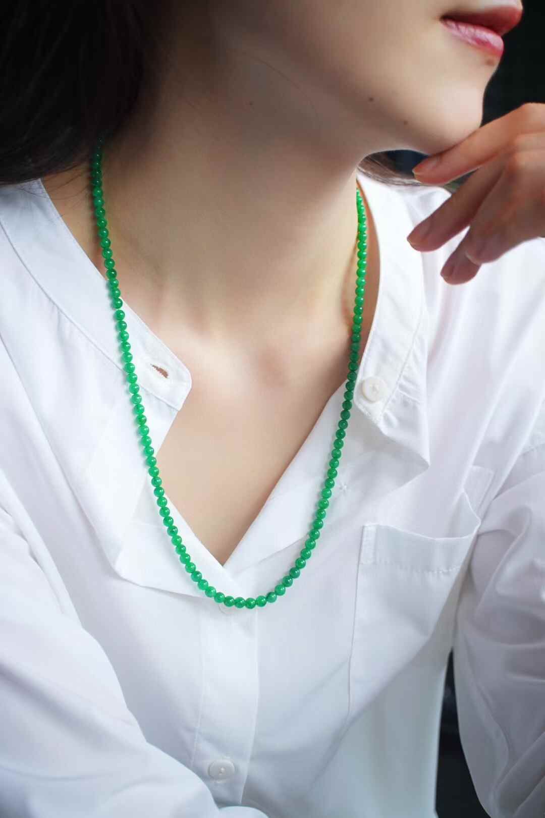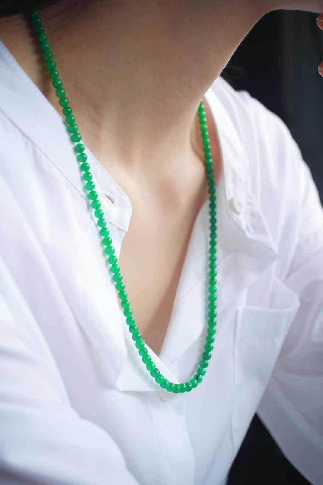 616854 翡翠老種正陽綠珠鏈 (4.2-5mm直徑)