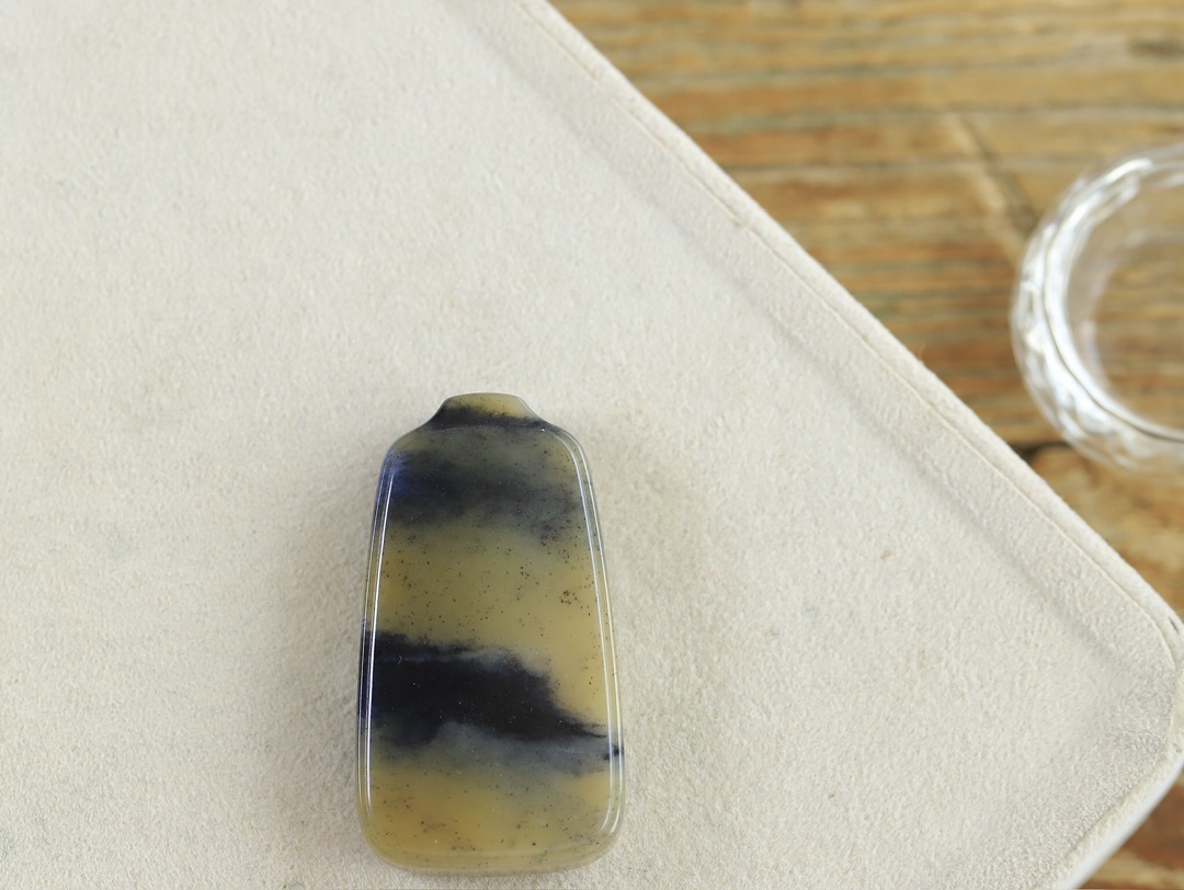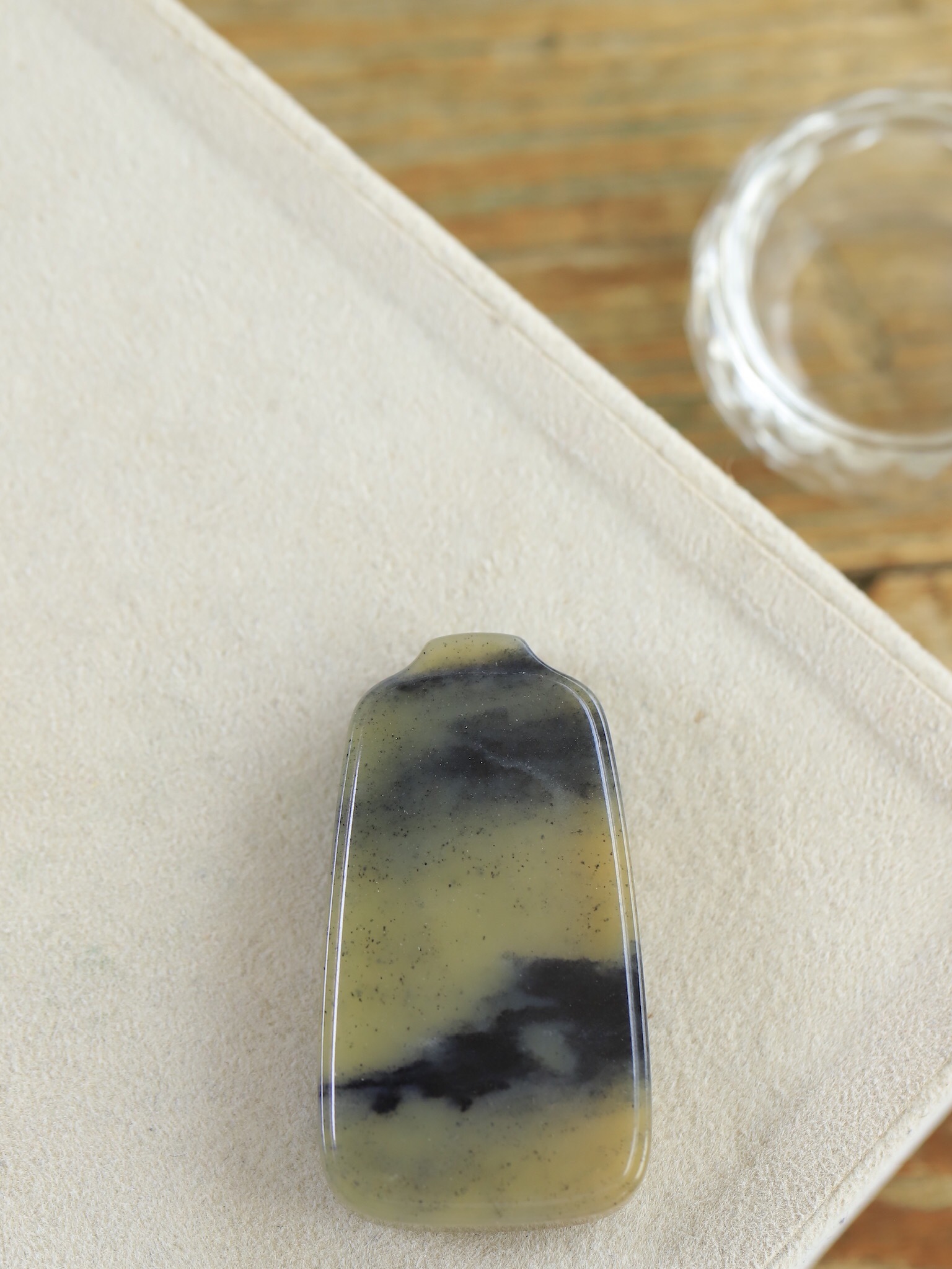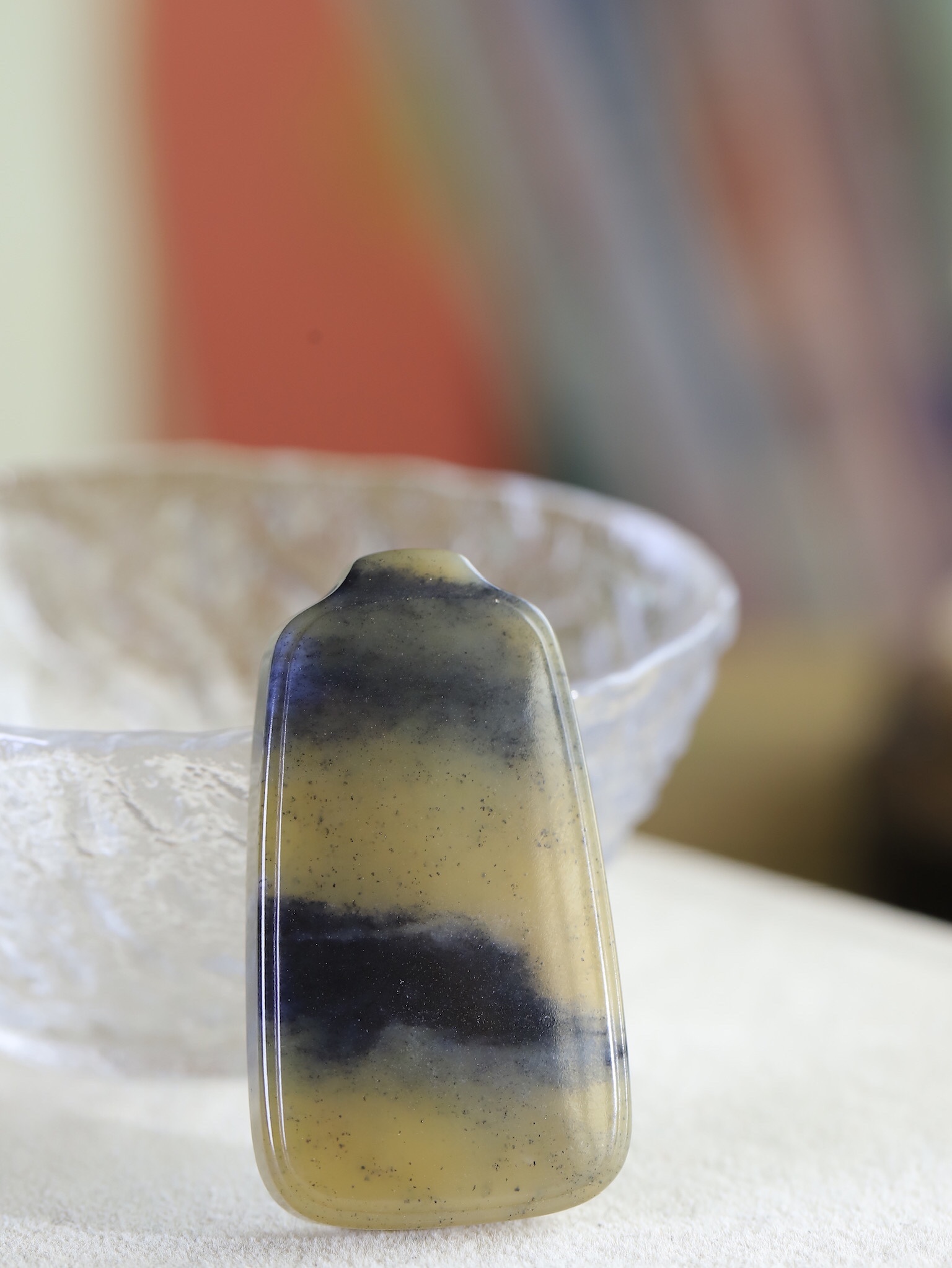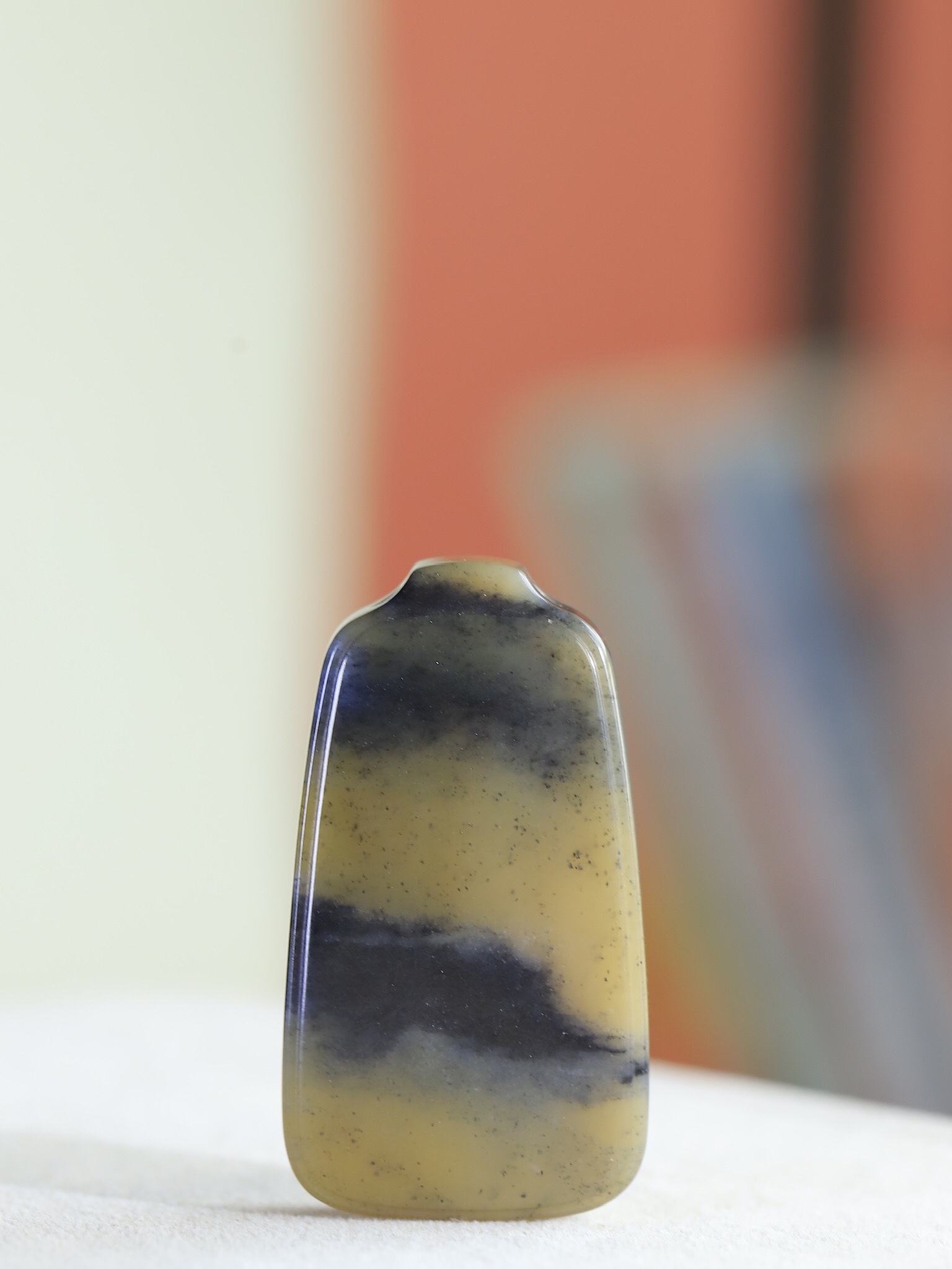 和田玉青花帶糖平安無事牌,質地溫潤細膩,油潤如脂,飽滿光澤,大圭不琢,美其質也,以“素”身的形式,來表現其自然本質。