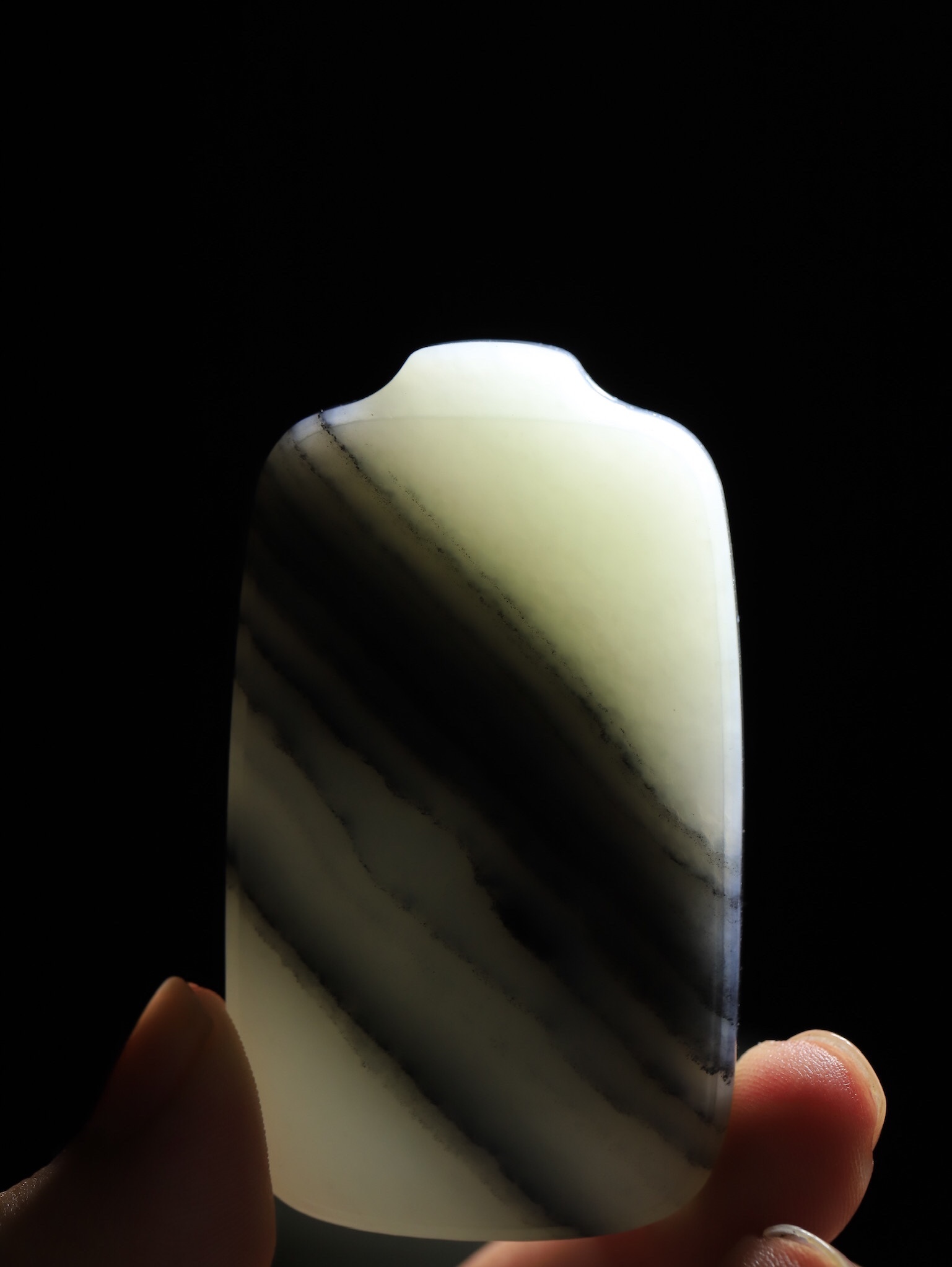 新疆和田玉籽料平安無事牌質地溫潤細膩,油潤如脂。飽滿光澤。大圭不琢,美其質也。以“素”身的形式,來表現其自然本質。