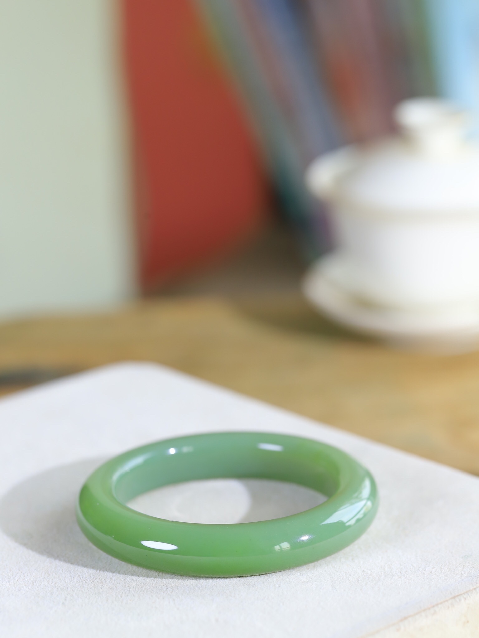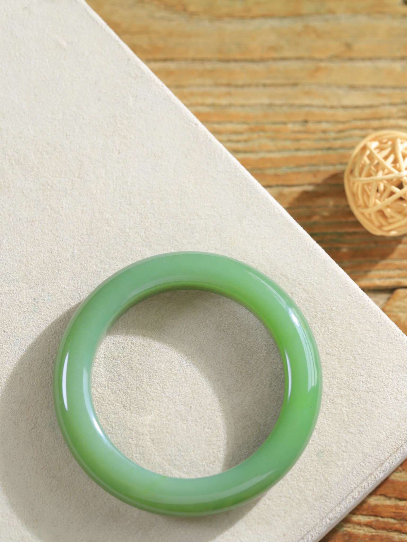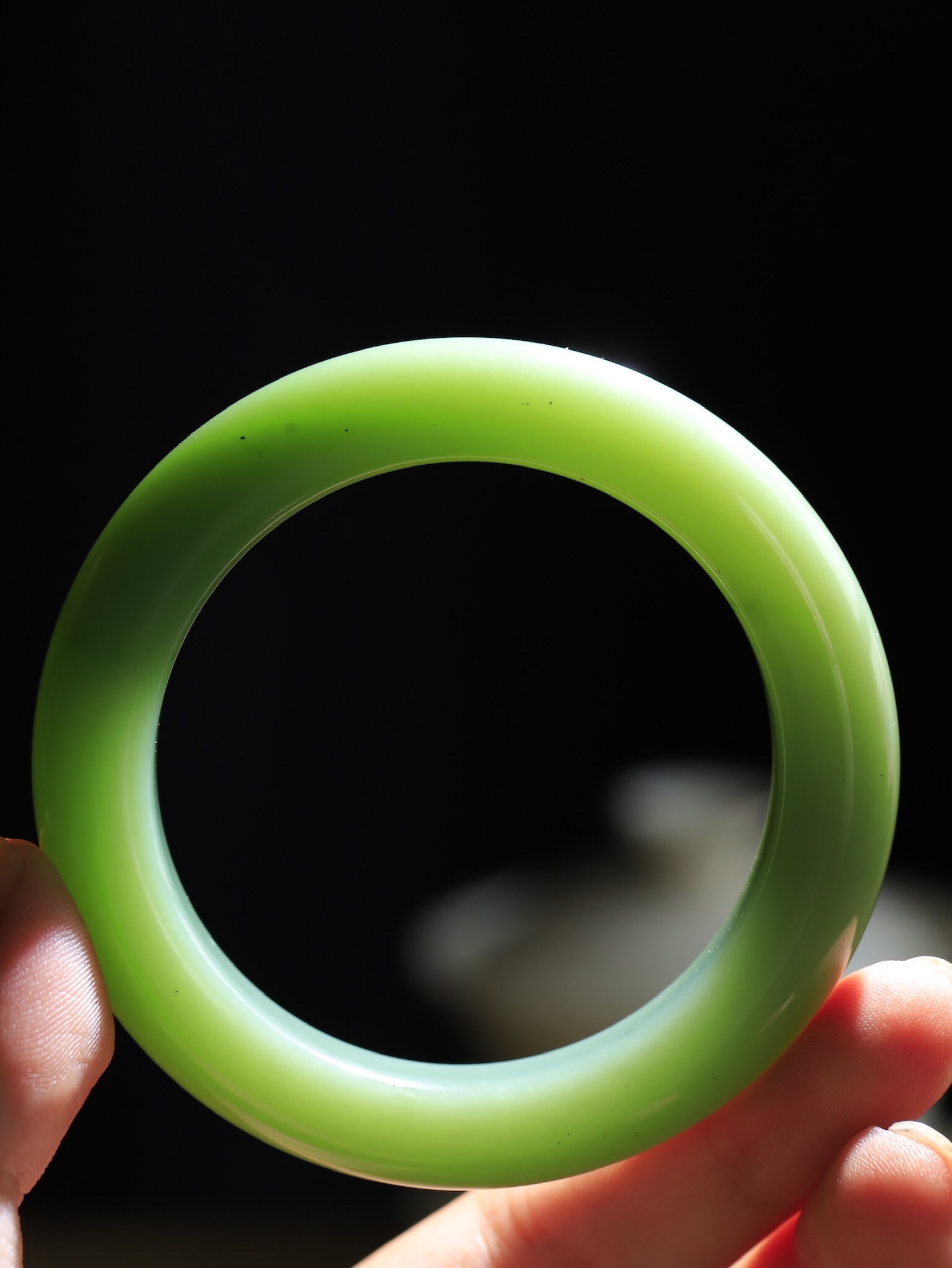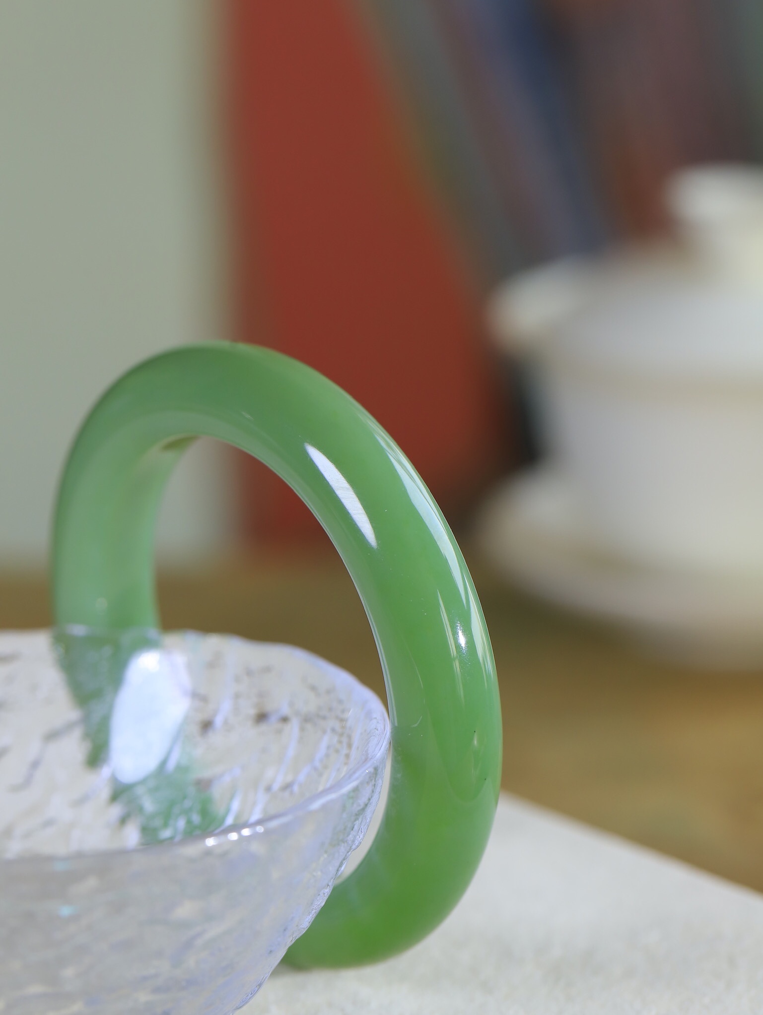 收藏級臻品和田玉碧玉手鐲,玉質極其細膩溫潤,手感舒適,線條流暢,簡約大氣,美自天成,佩戴於腕間,婉約之美,舉手投足間透出那份低調奢華,醉人心扉。