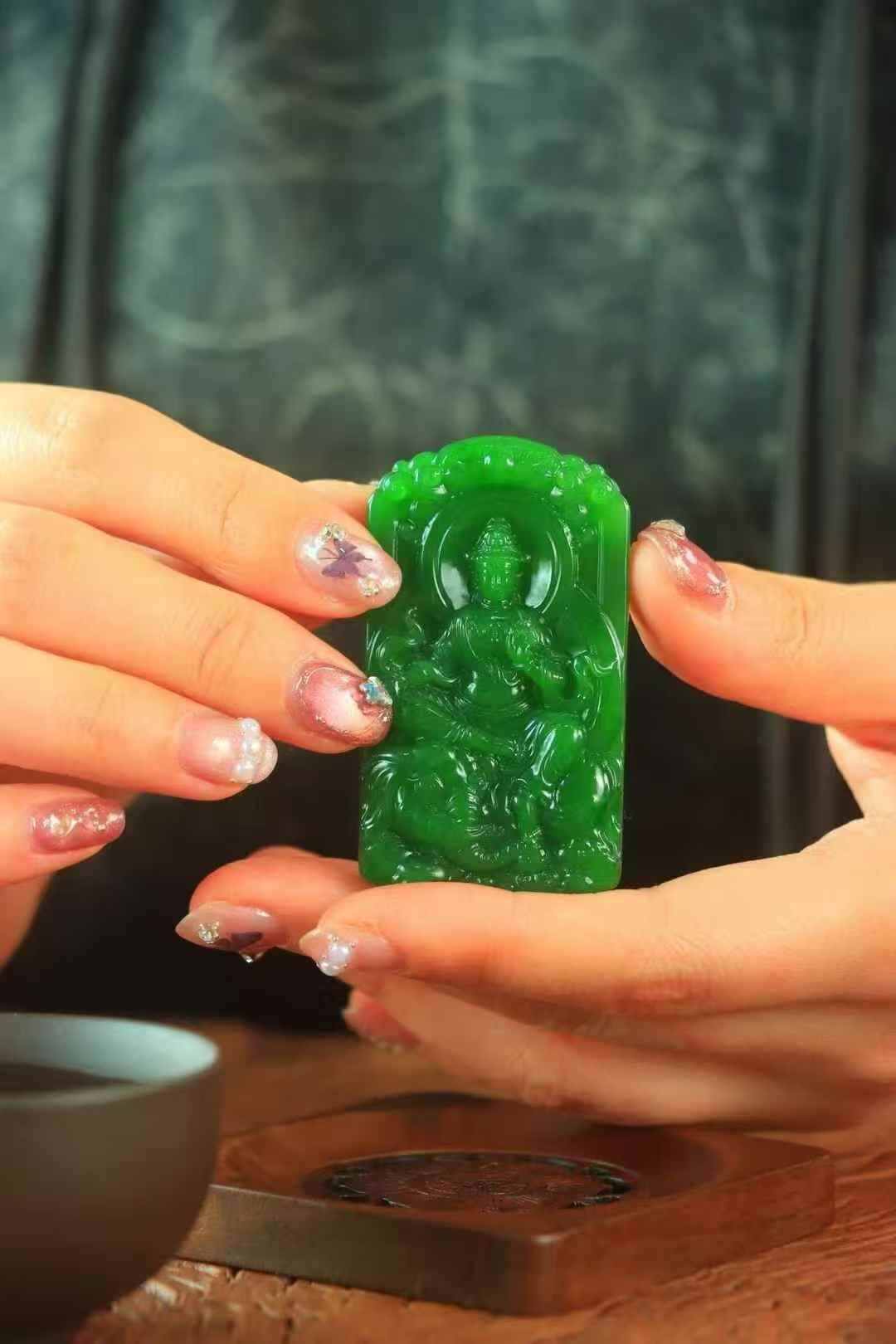 • 和田玉碧玉普賢菩薩,天然和田玉軟玉