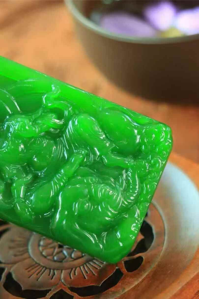 和田玉老坑料碧玉,臻品收藏,上手細潤出油,浮雕觀音法相,端莊慈祥,佛光普照,手持蓮花,安坐大象身上,做工精細,生動傳神,造型規整大氣,佩戴護佑平安,吉祥納福。收藏級臻品美貨,推薦收藏款美物。