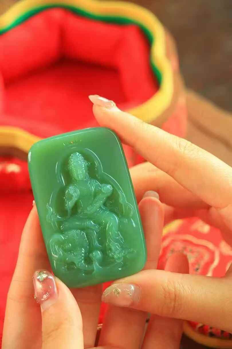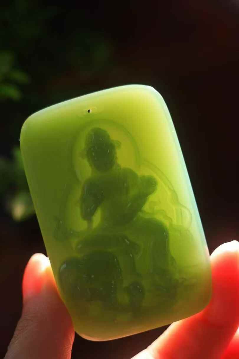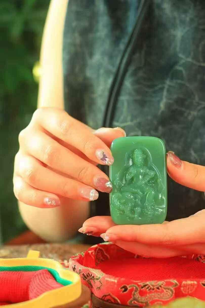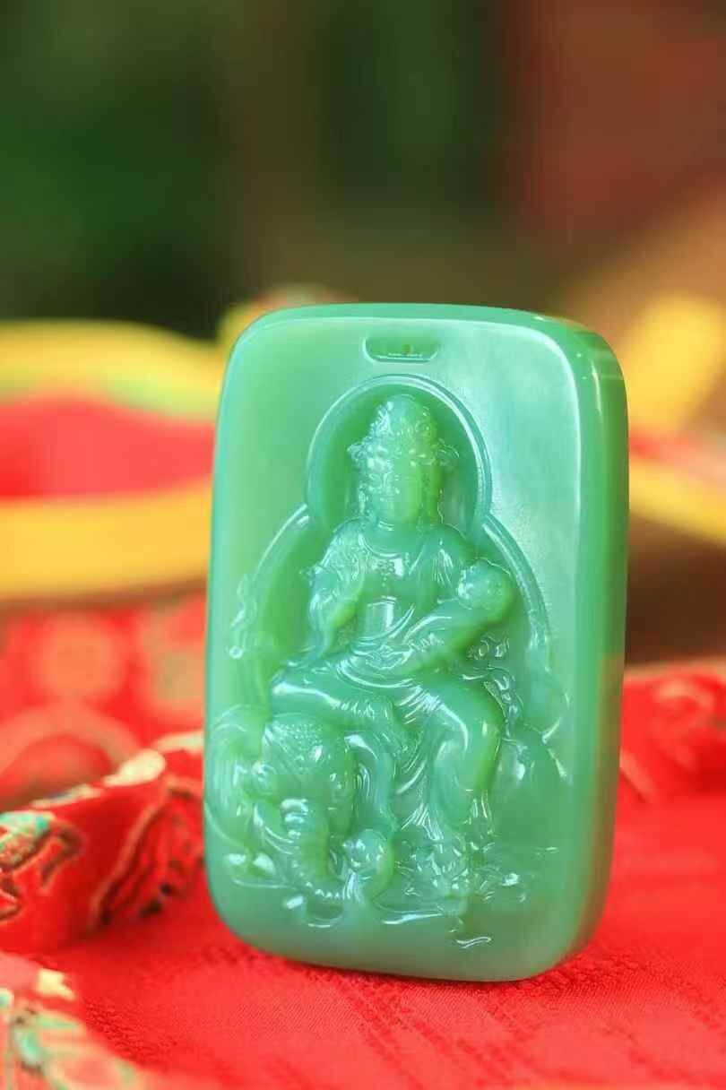 • 和田玉碧玉普賢菩薩,天然和田玉軟玉