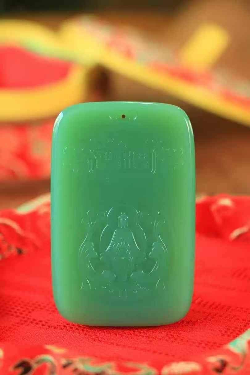 和田玉老坑料碧玉,臻品收藏,上手細潤出油,浮雕觀音法相,端莊慈祥,佛光普照,手持蓮花,安坐大象身上,做工精細,生動傳神,造型規整大氣,佩戴護佑平安,吉祥納福。