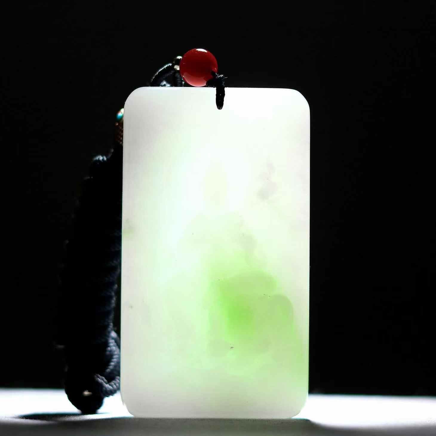 收藏品和田玉翠青,俄料翠青,脂白玉肉,翠色濃艷,聚而不散,清雅絕塵,極為稀缺,性價比超高,實屬精品。