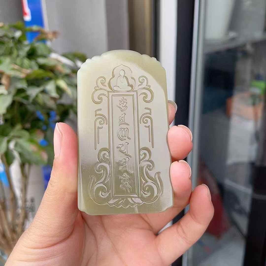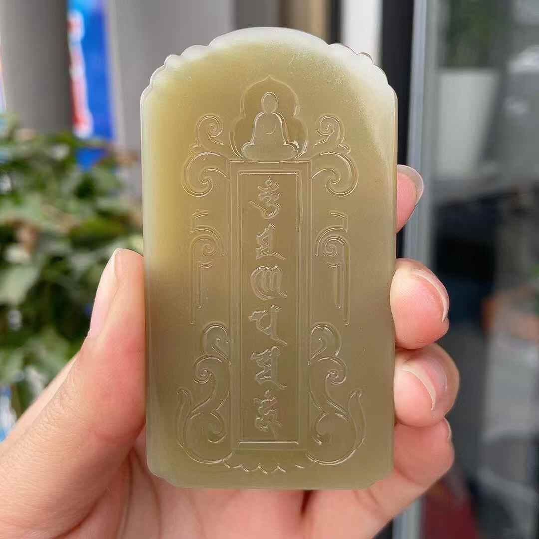 • 和田玉碧玉冰底糖料普賢掛件,天然和田玉軟玉