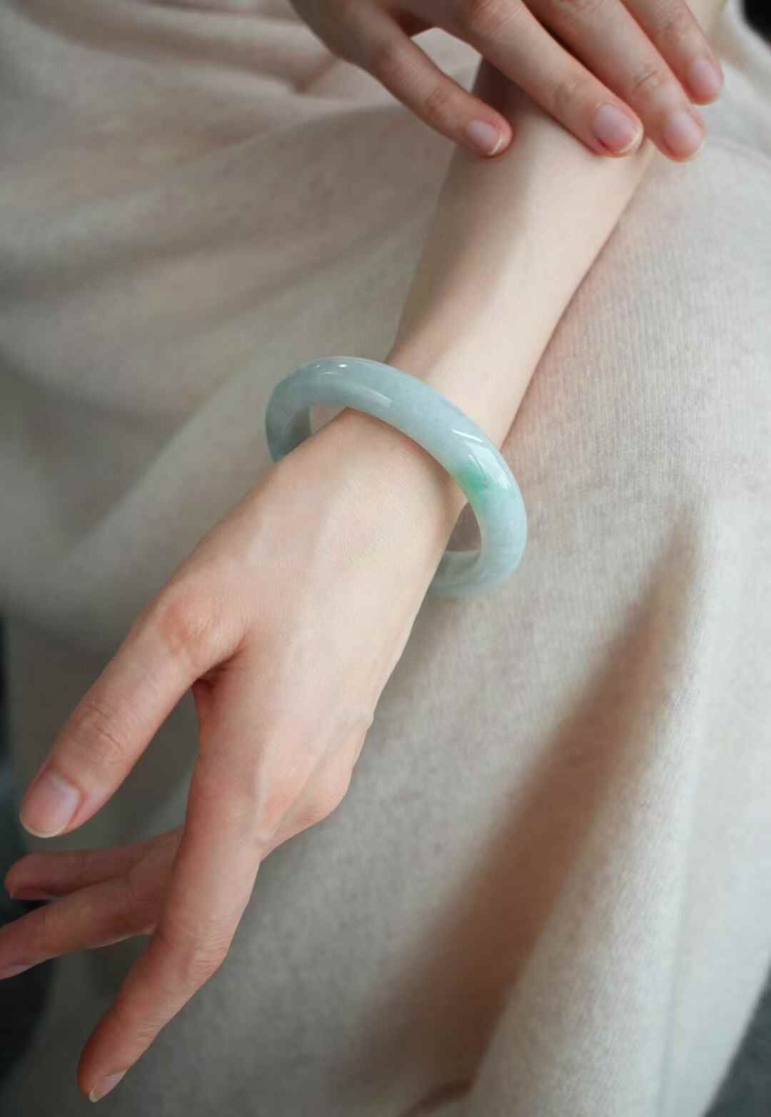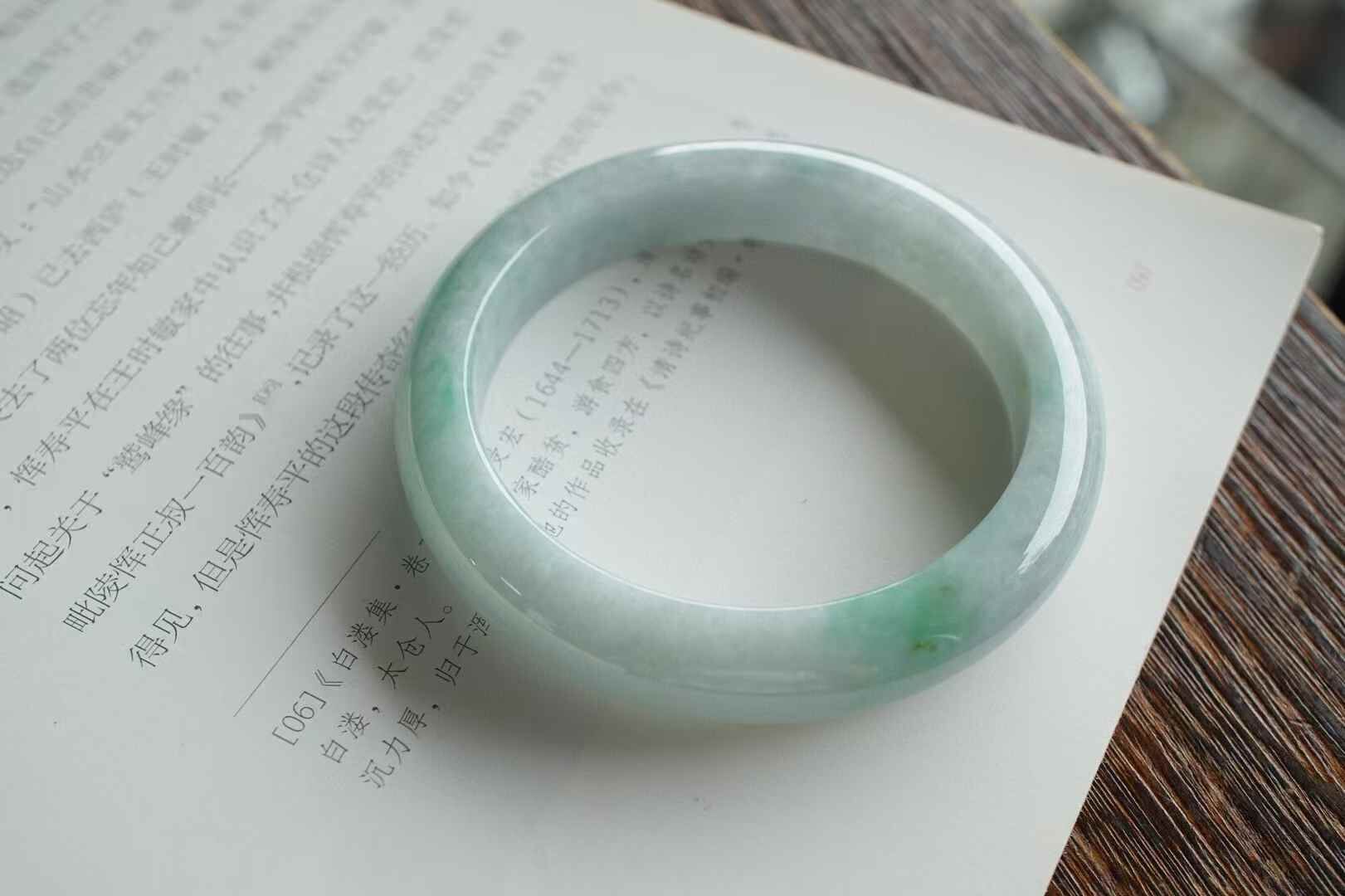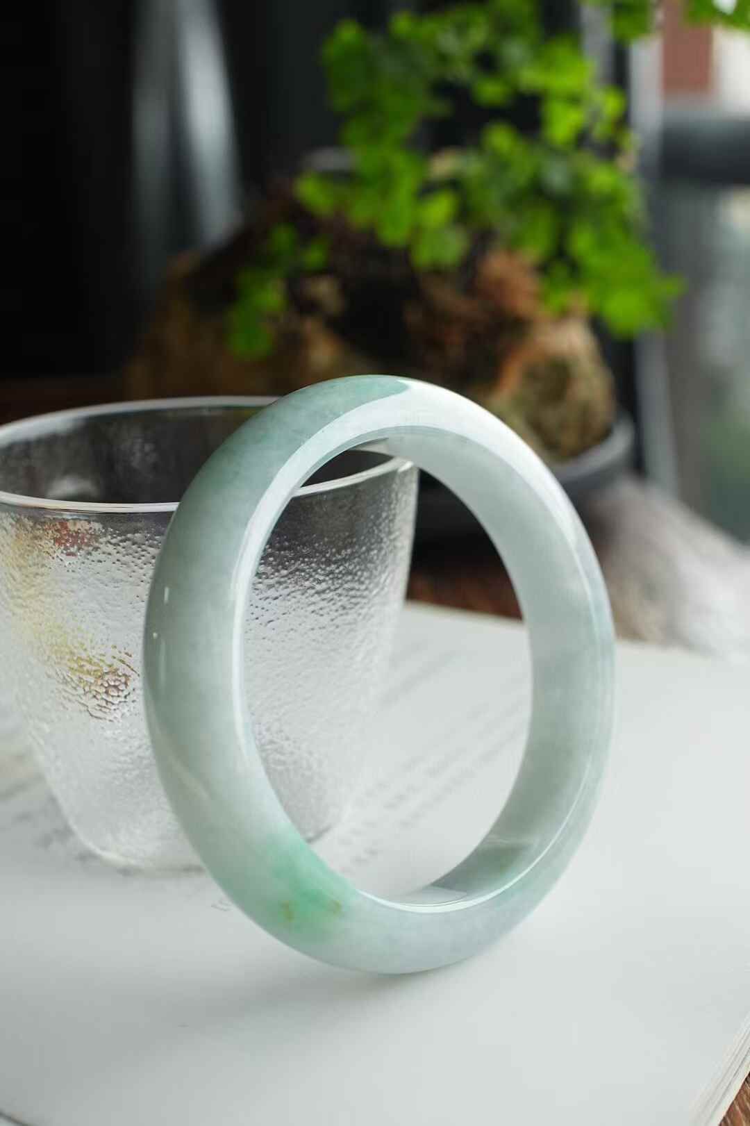 • 冰糯種飄綠正圈翡翠手鐲,天然翡翠A玉, 緬甸玉, Jade, Jadeite