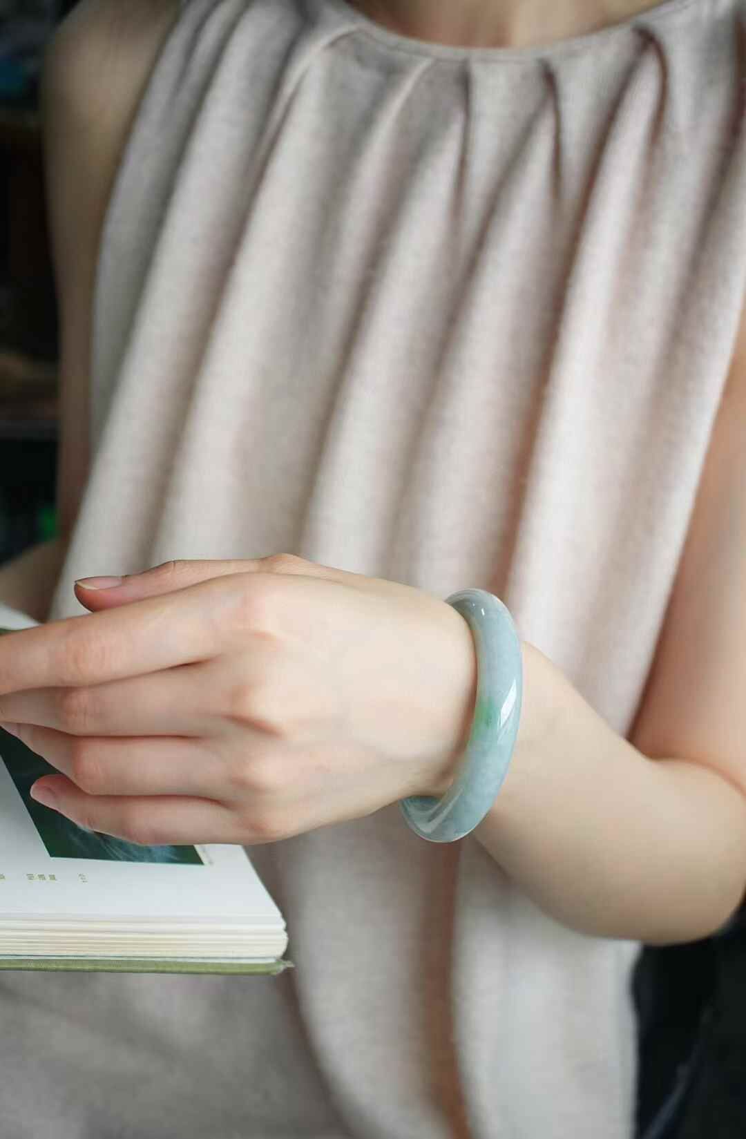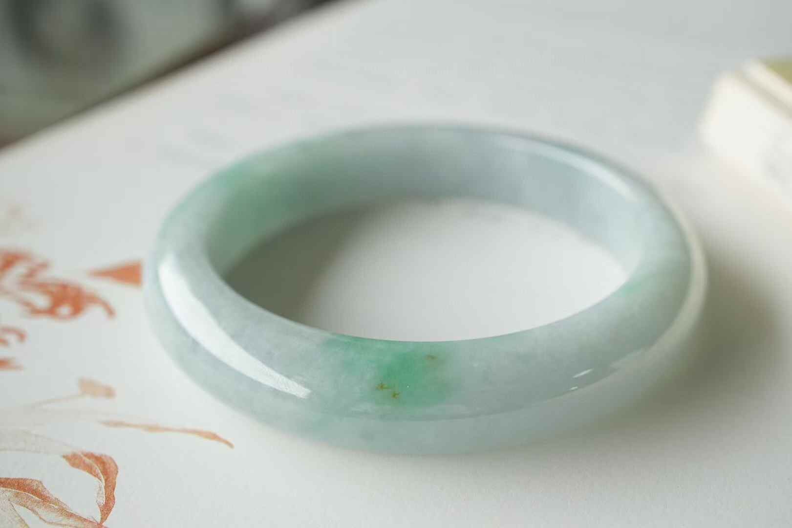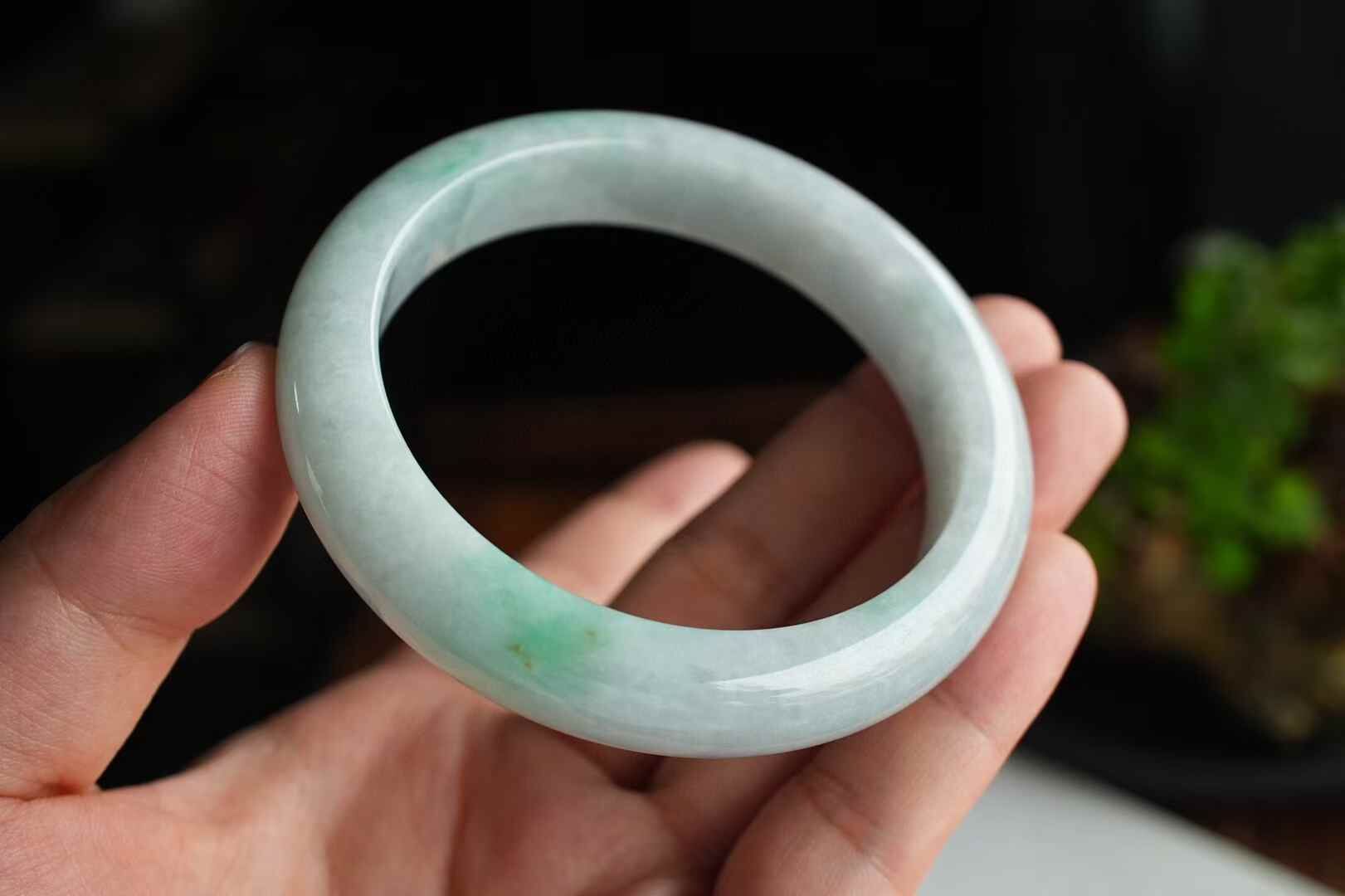 • 冰糯種飄綠正圈翡翠手鐲,天然翡翠A玉, 緬甸玉, Jade, Jadeite