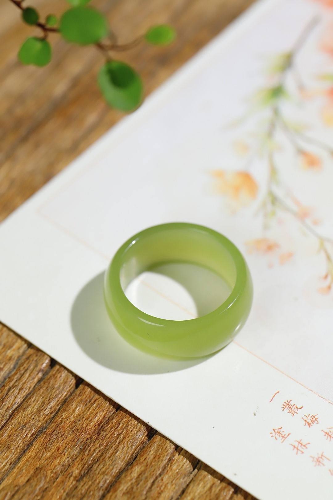 和田玉若羌黃口料,玉質溫潤細膩,脂粉渾厚油性十足。巧妙設計,指尖雅,妙趣橫生。常戴指上撫摸把玩,招財納瑞,闢邪消災,樂趣無窮。