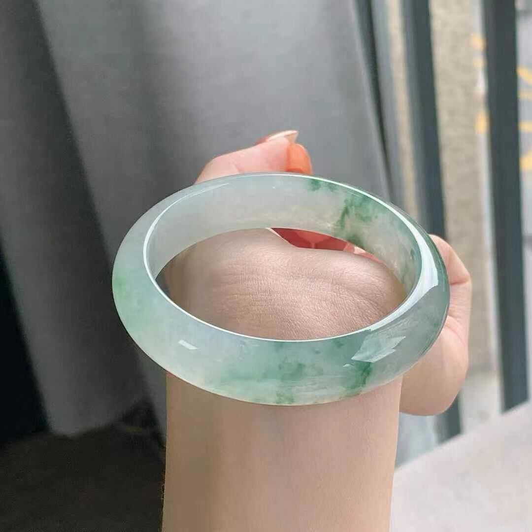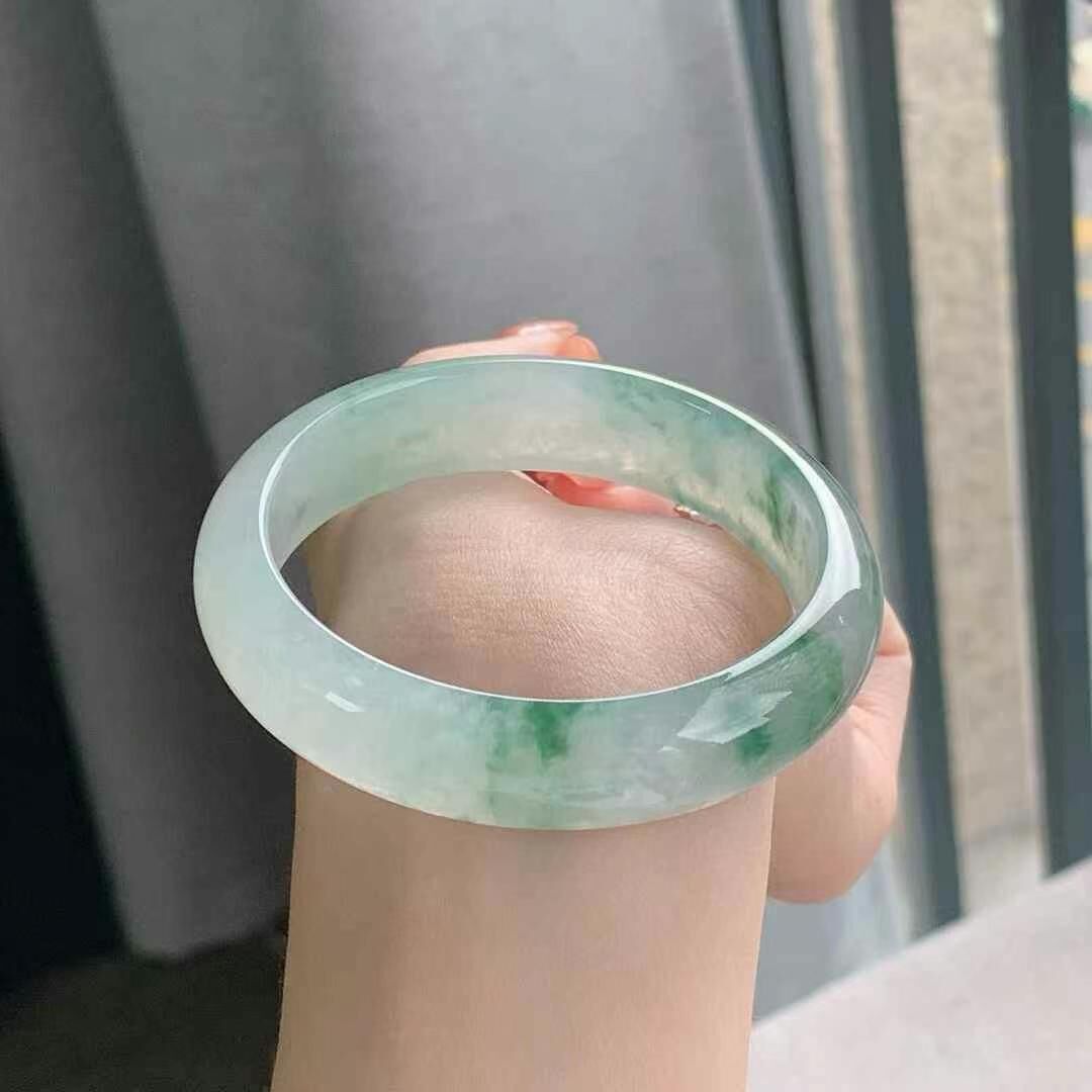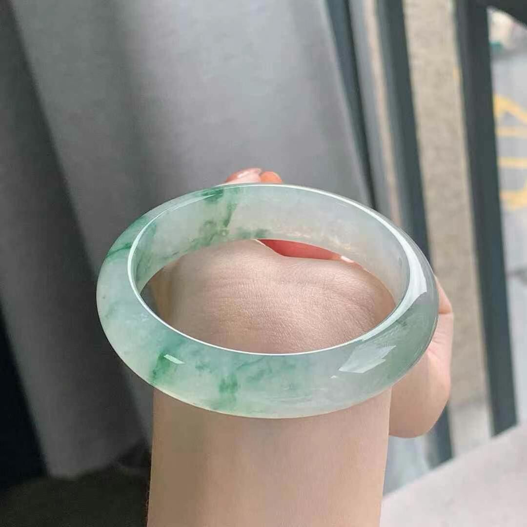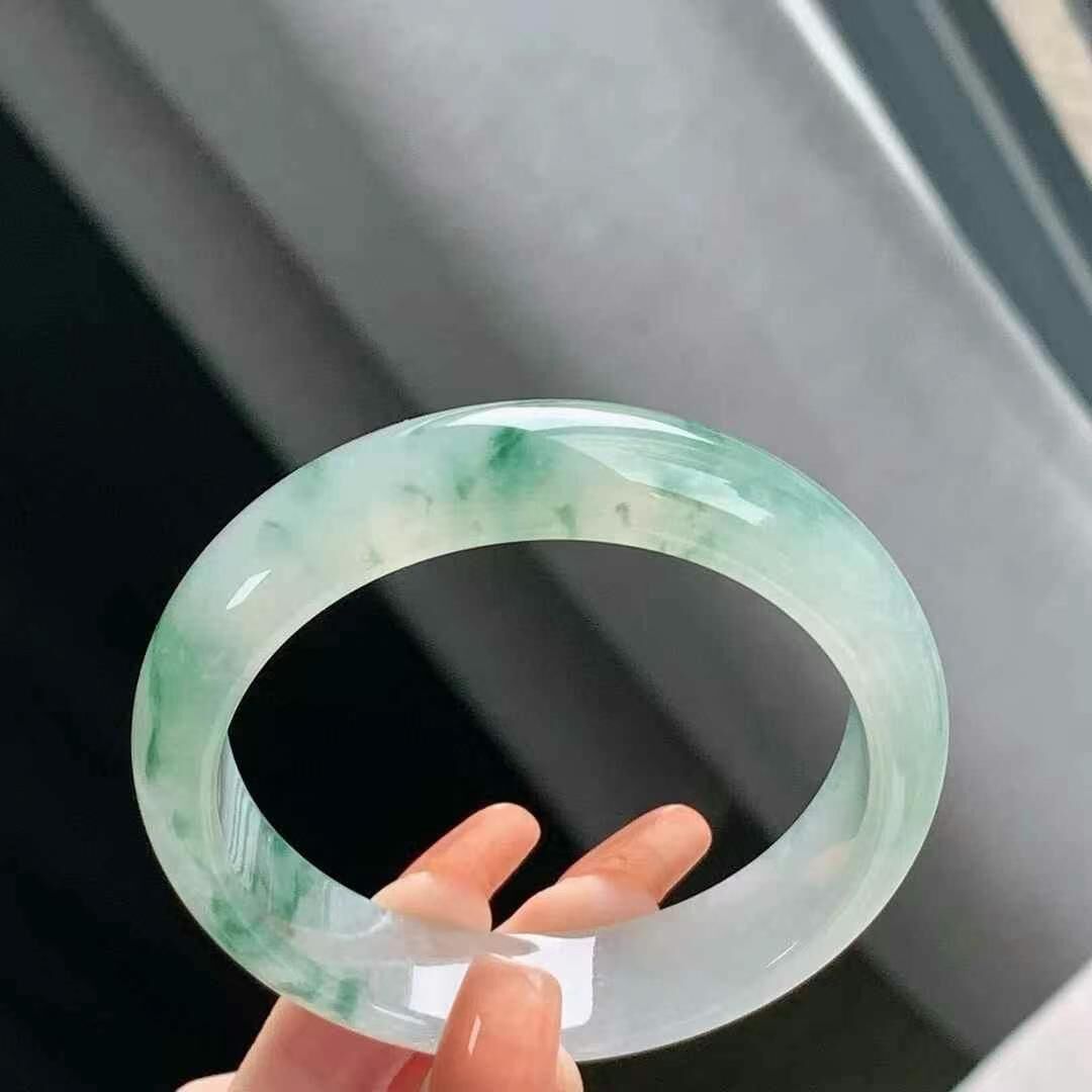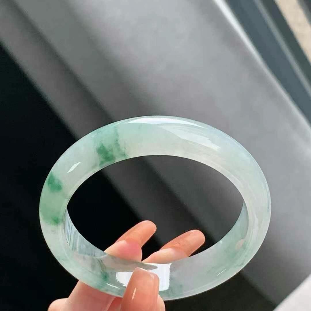 • 冰飄花翡翠正圈手鐲,天然翡翠A玉, 緬甸玉, Jade, Jadeite