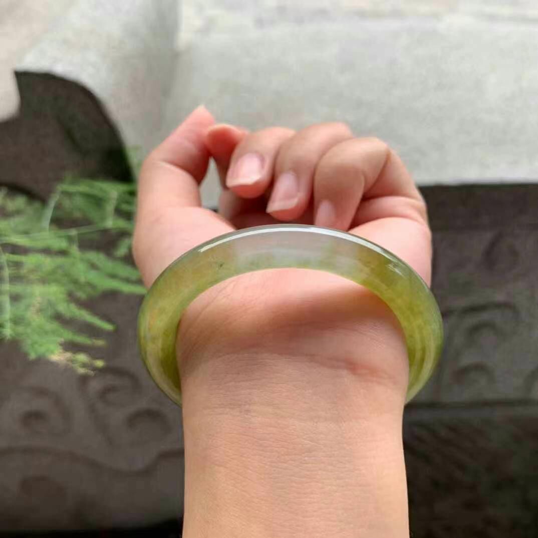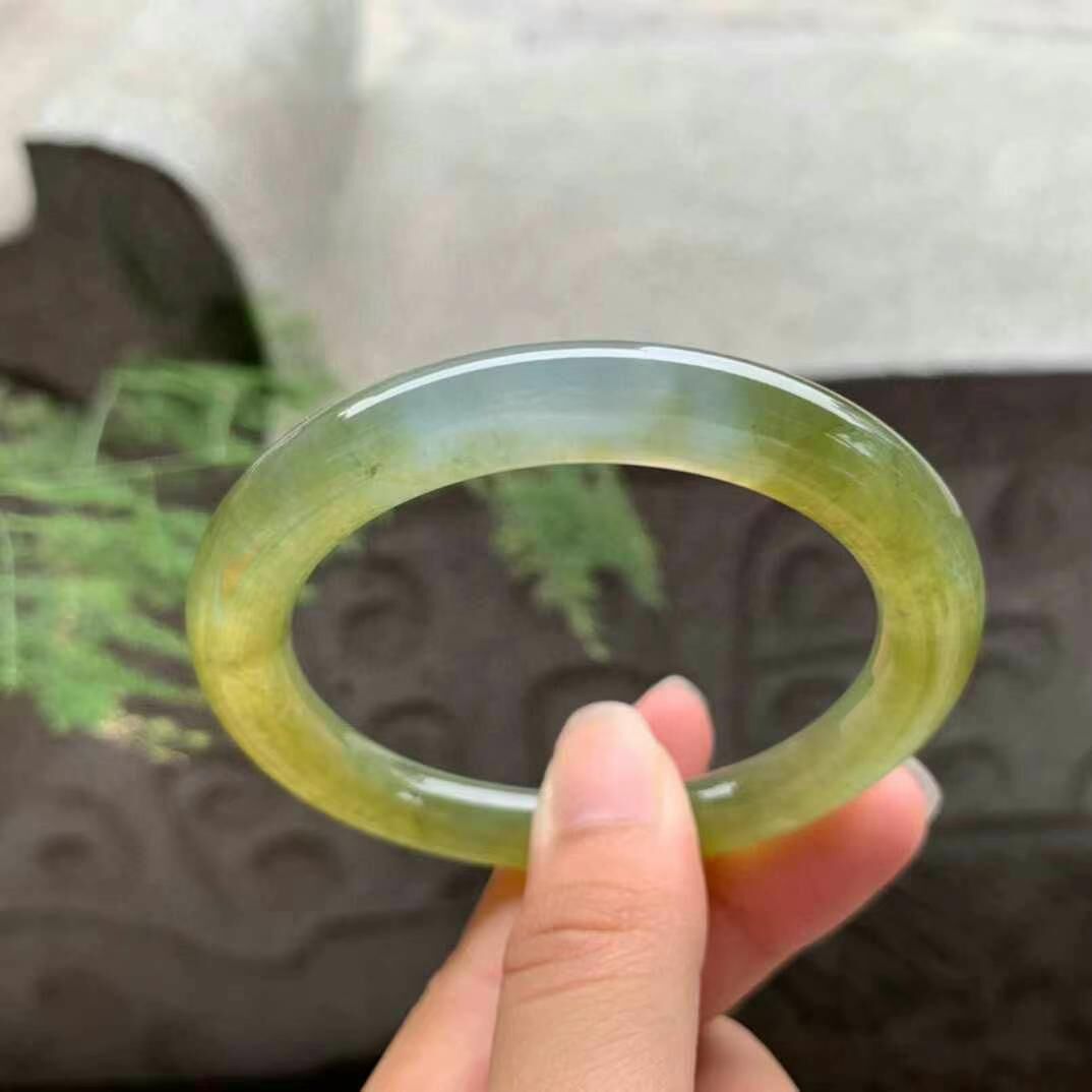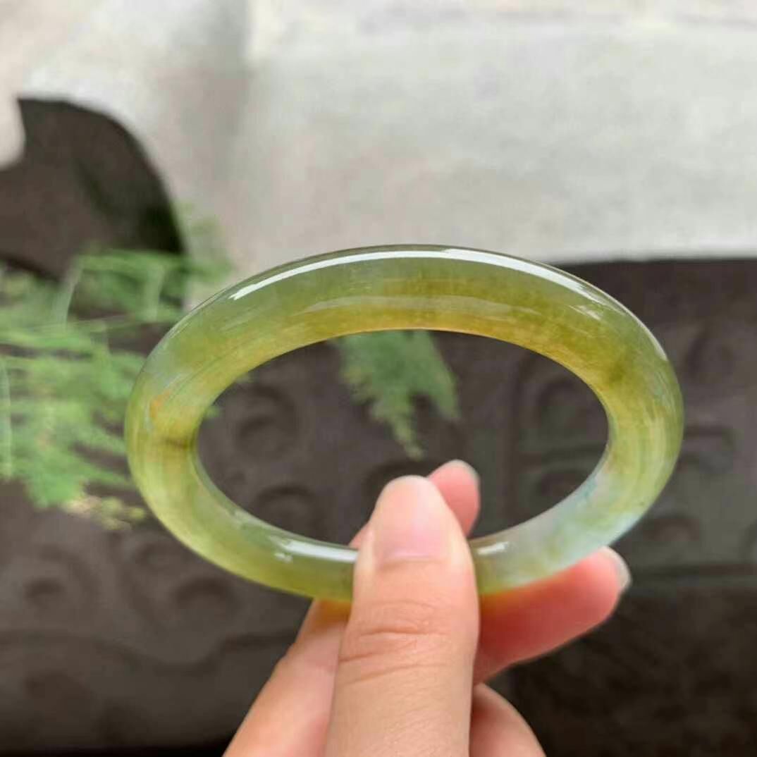 625647 53mm冰種黃翡翡翠圓條手鐲