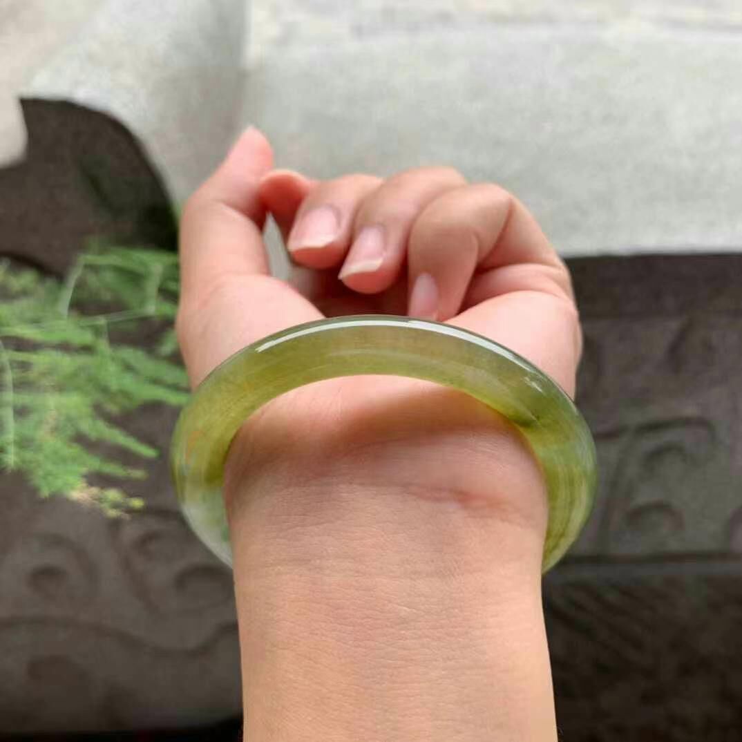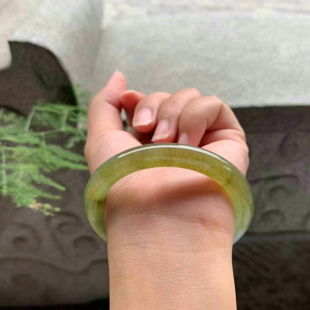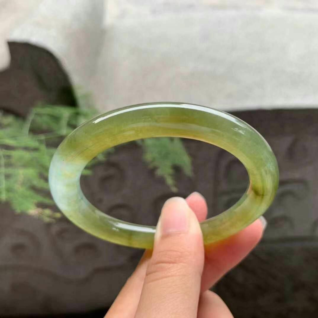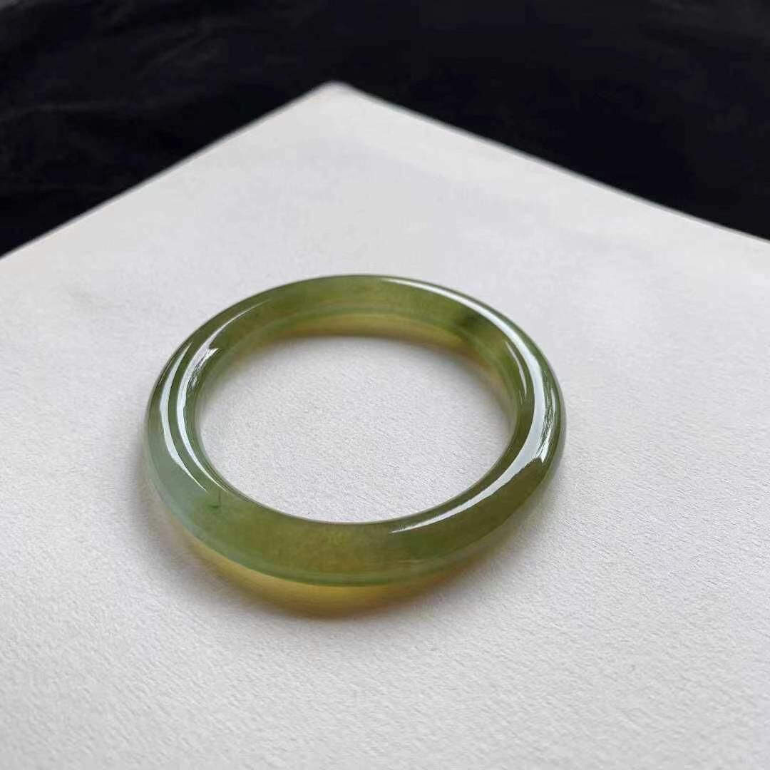 625647 53mm冰種黃翡翡翠圓條手鐲