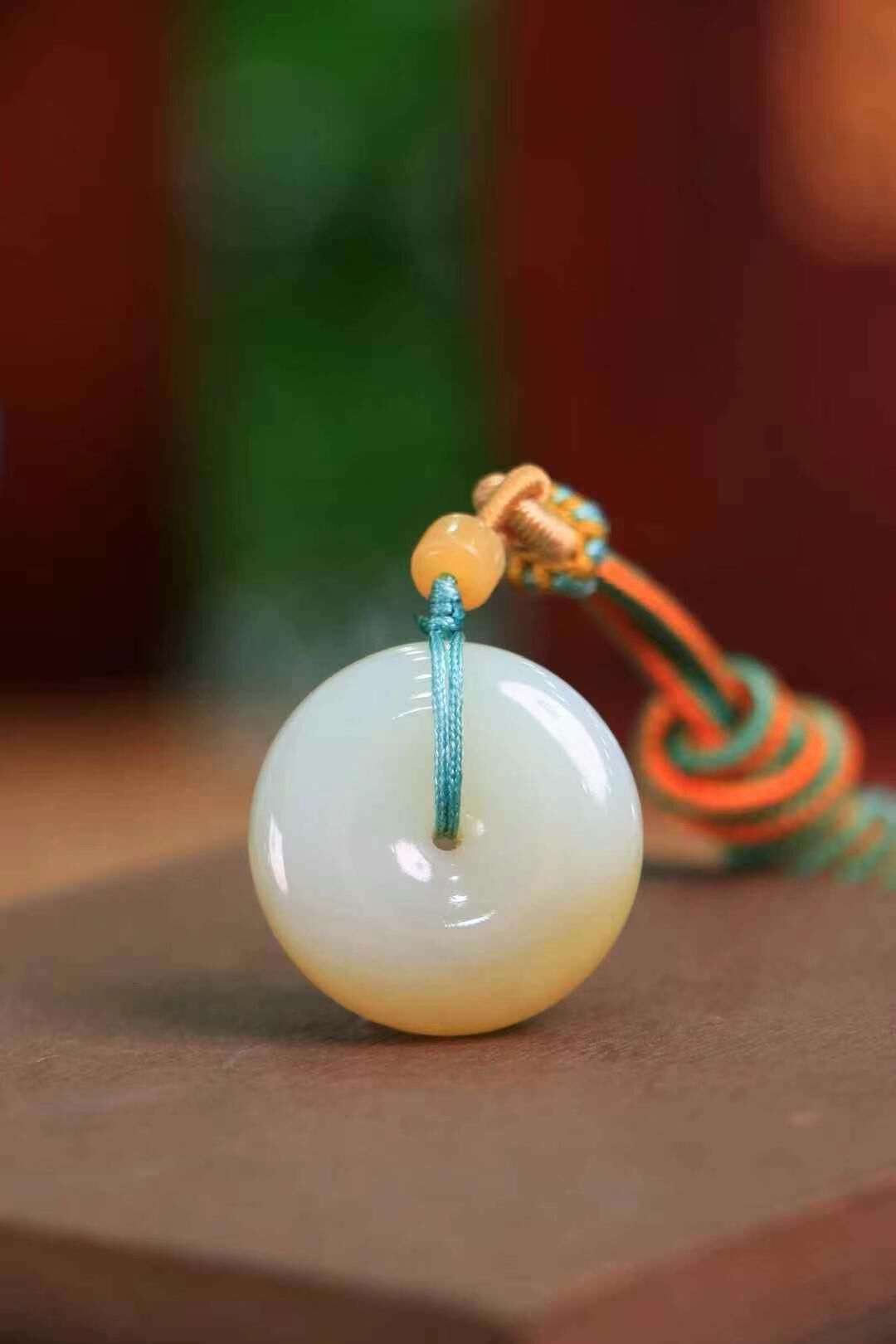 和田玉糖白玉,玉質油潤光澤,平安扣也稱懷古,可祛邪免災,保出入平安。