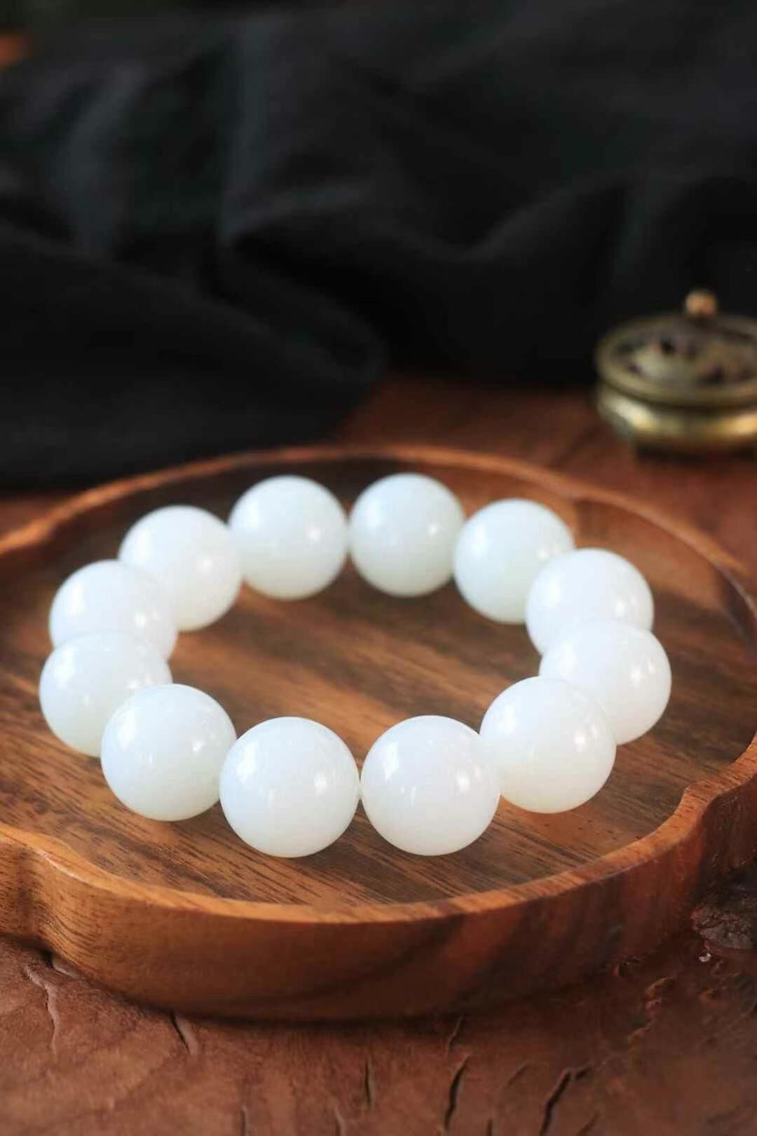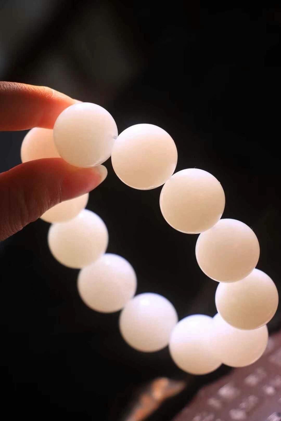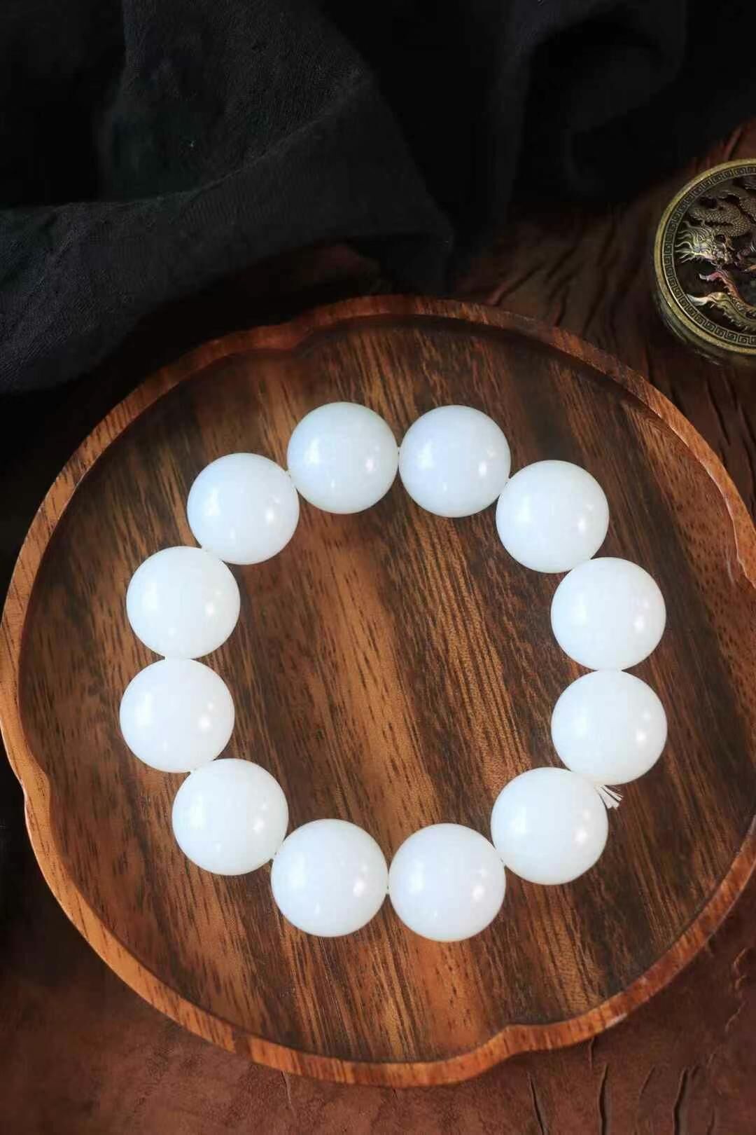 • 和田玉羊脂白珠圓玉潤手串 (20mm直徑),天然和田玉軟玉