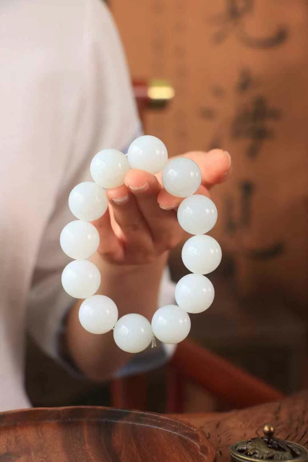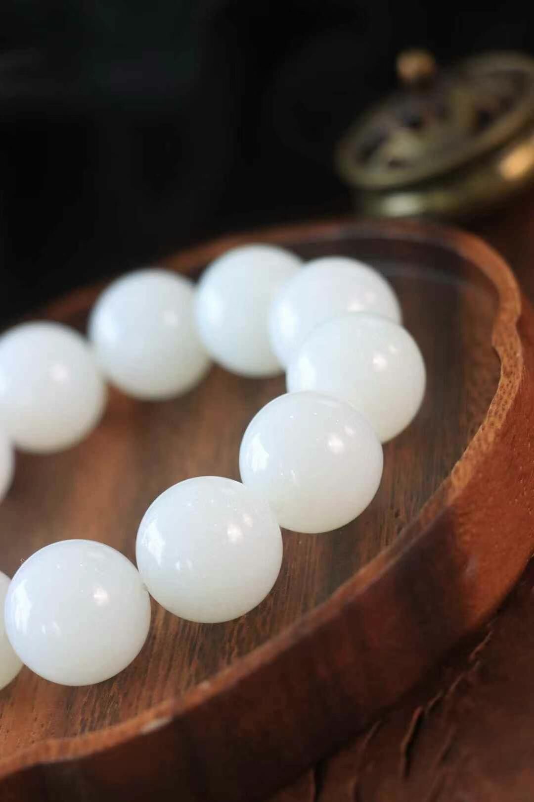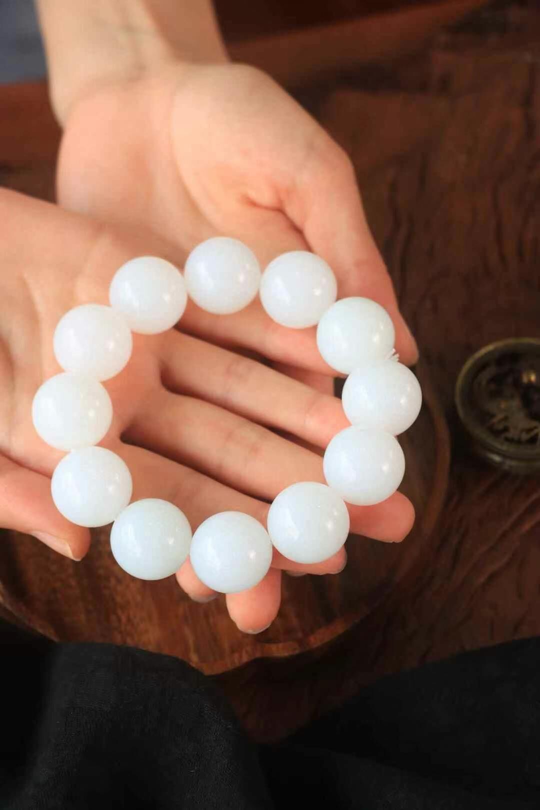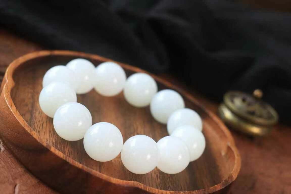 • 和田玉羊脂白珠圓玉潤手串 (20mm直徑),天然和田玉軟玉