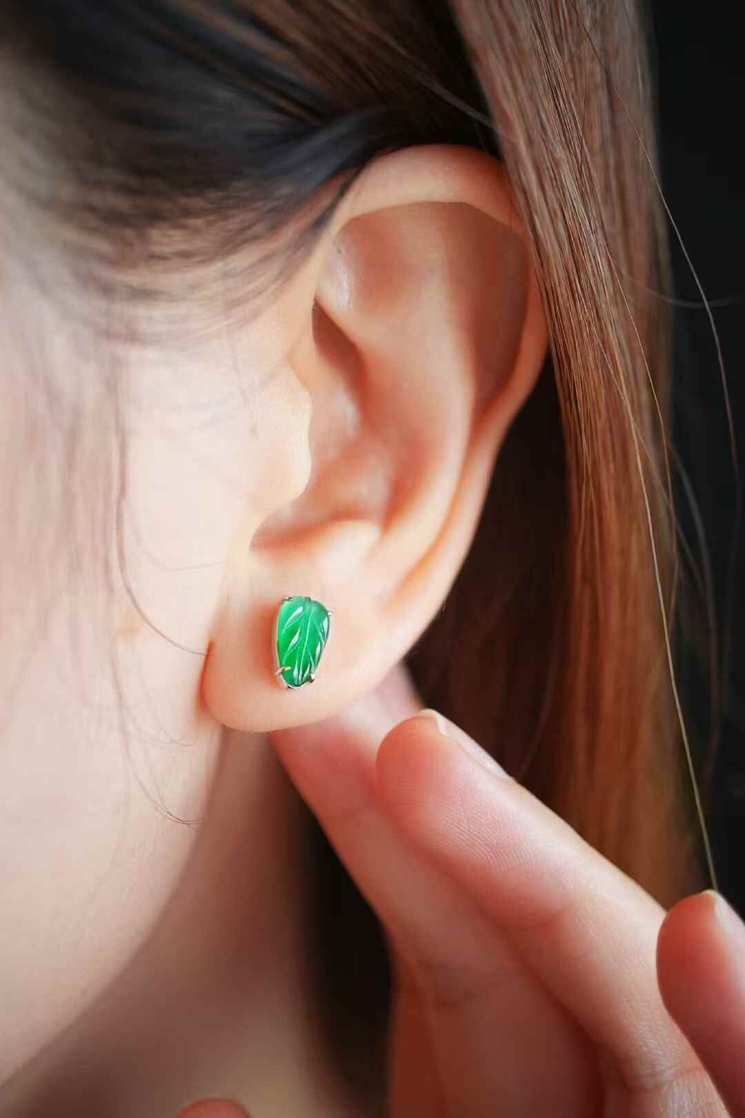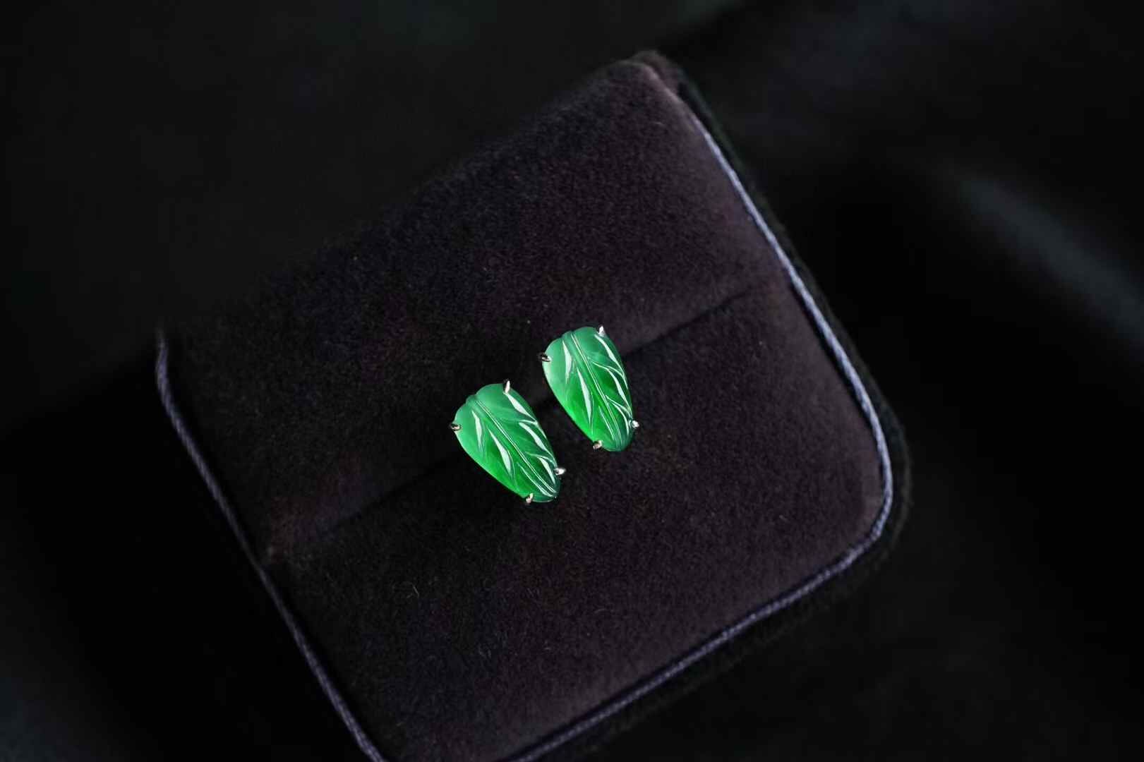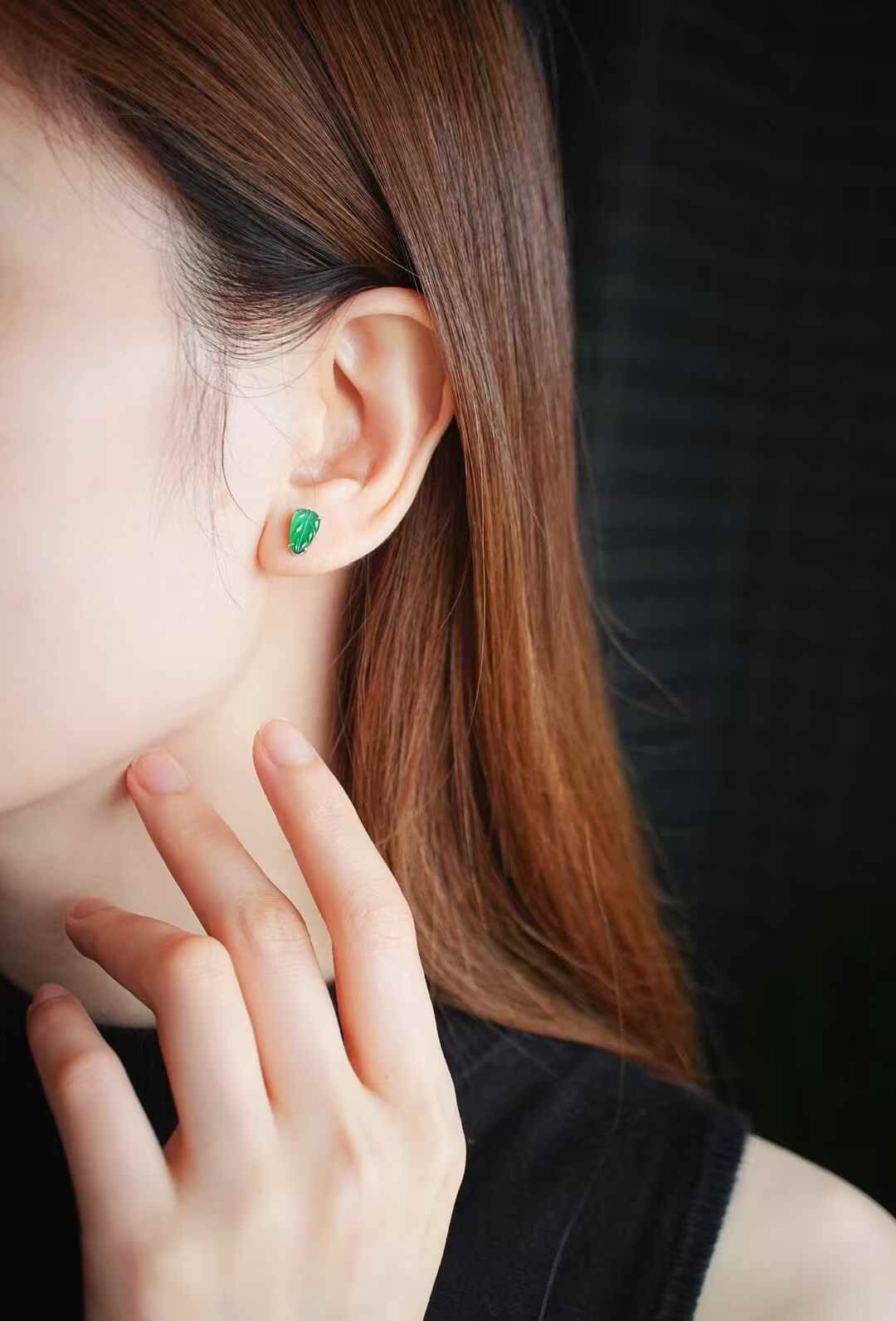 青翠欲滴,精緻點綴。天然翡翠A玉,18K金極簡設計,冰陽綠翡翠葉子耳釘,簡簡單單,靈氣精緻。