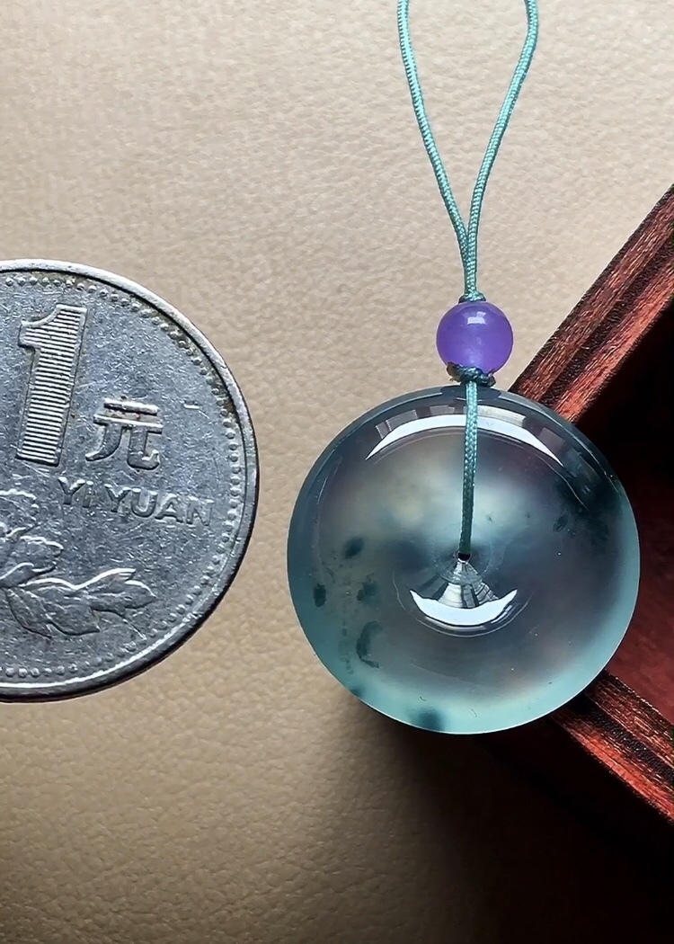 • 翡翠玻璃種飄花懷古 (20mm直徑),天然翡翠A玉, 緬甸玉, Jade, Jadeite