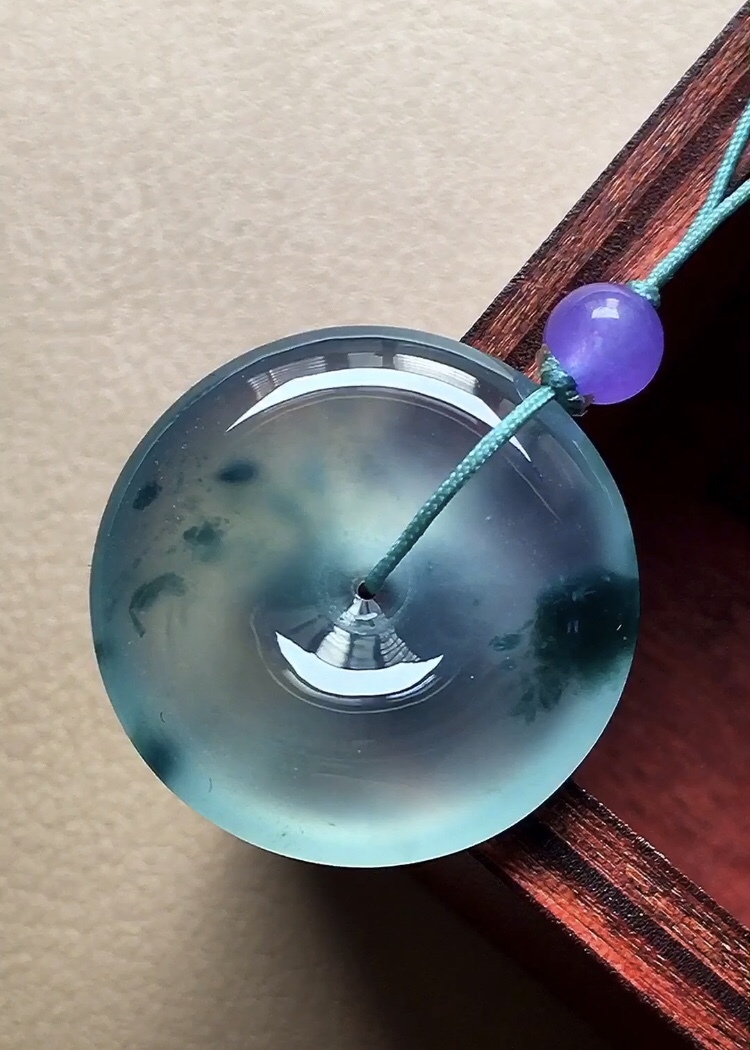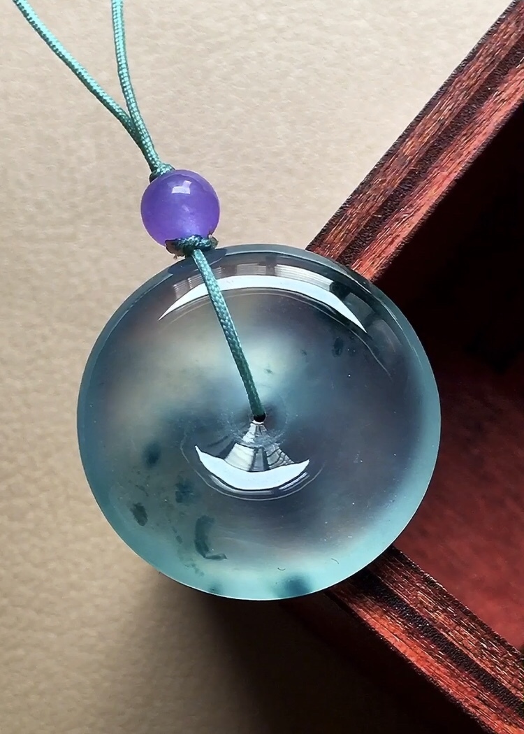 天然翡翠A玉,飄花十分漂亮,種老十足,熒潤起光,完美。