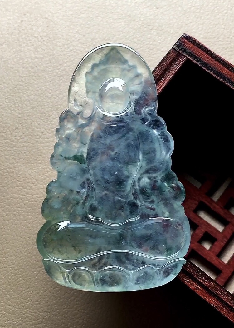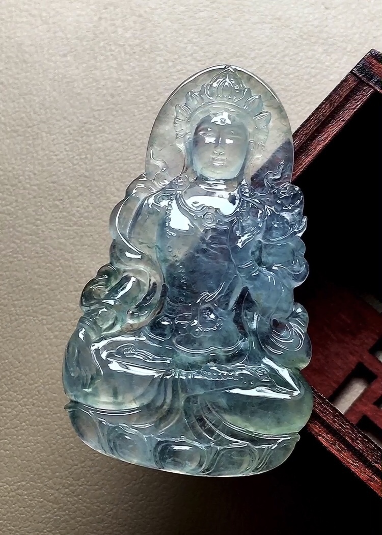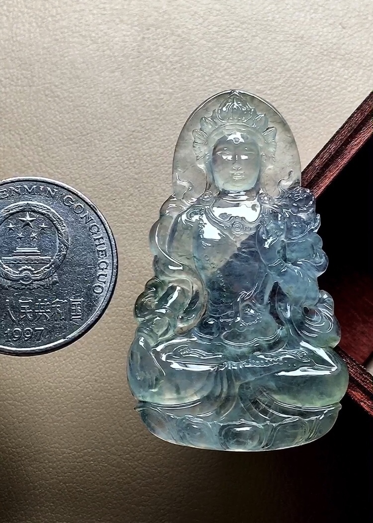 • 翡翠玻璃種晴水度母,天然翡翠A玉, 緬甸玉, Jade, Jadeite