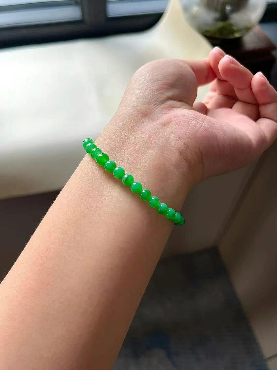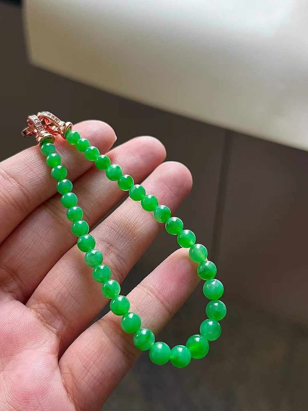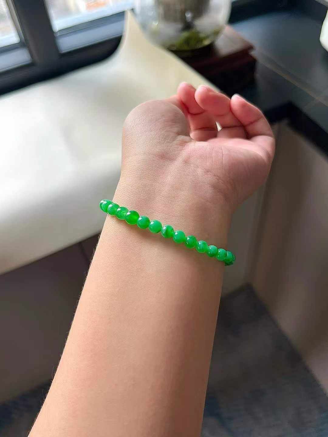 • 翡翠手串 (4.1-6.2mm直徑),天然翡翠A玉, 緬甸玉, Jade, Jadeite