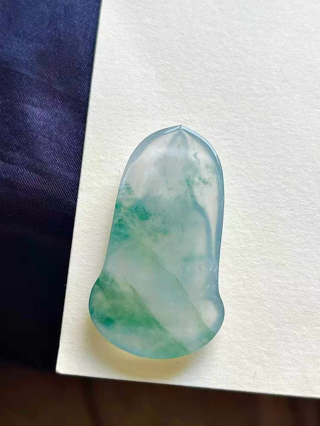 天然翡翠A玉,冰潤水透,種老細膩起熒。