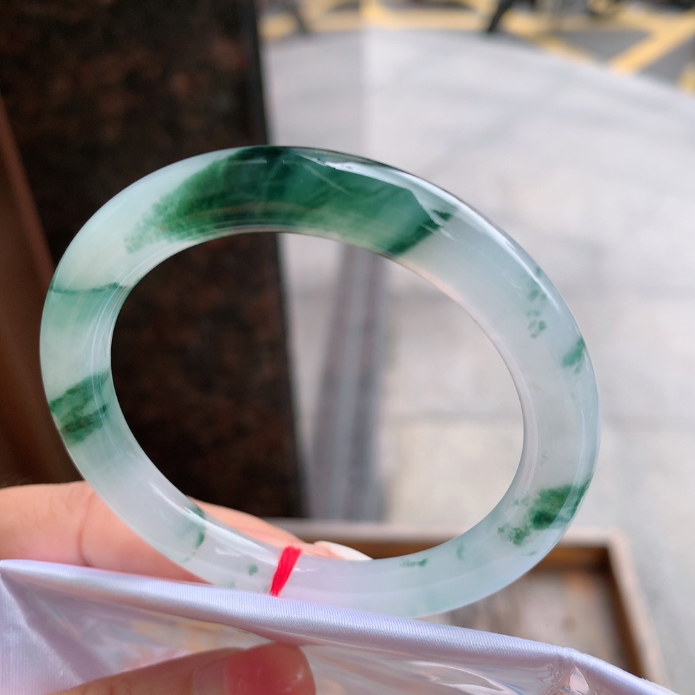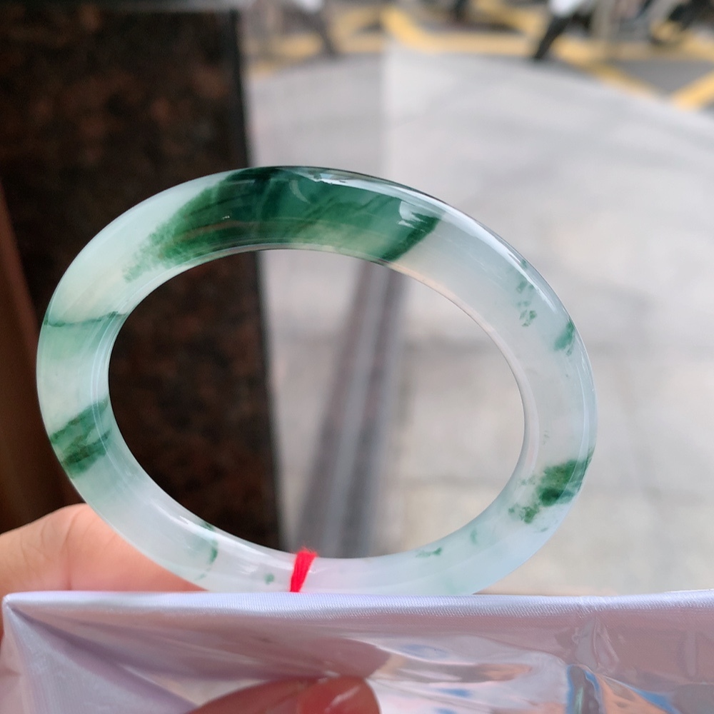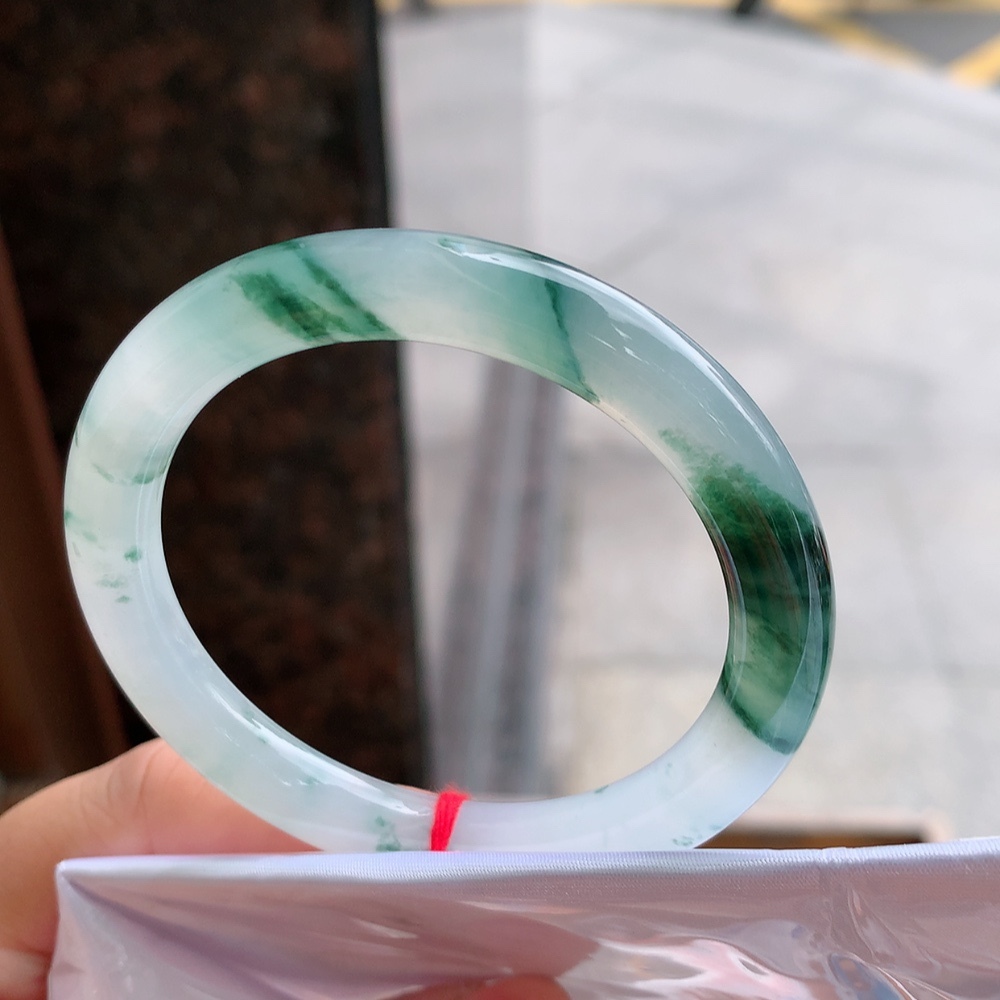 712364 52.5mm高冰飄花翡翠圓條手鐲
