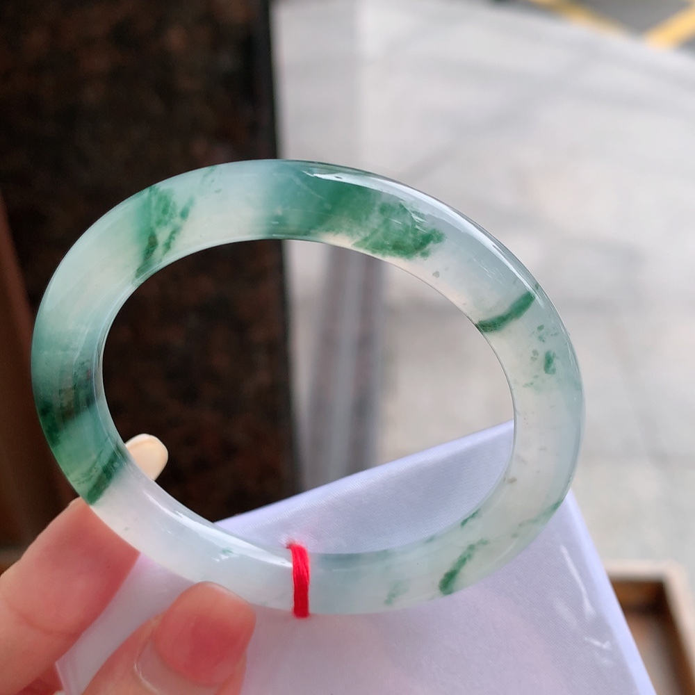 • 高冰飄花翡翠圓條手鐲,天然翡翠A玉, 緬甸玉, Jade, Jadeite