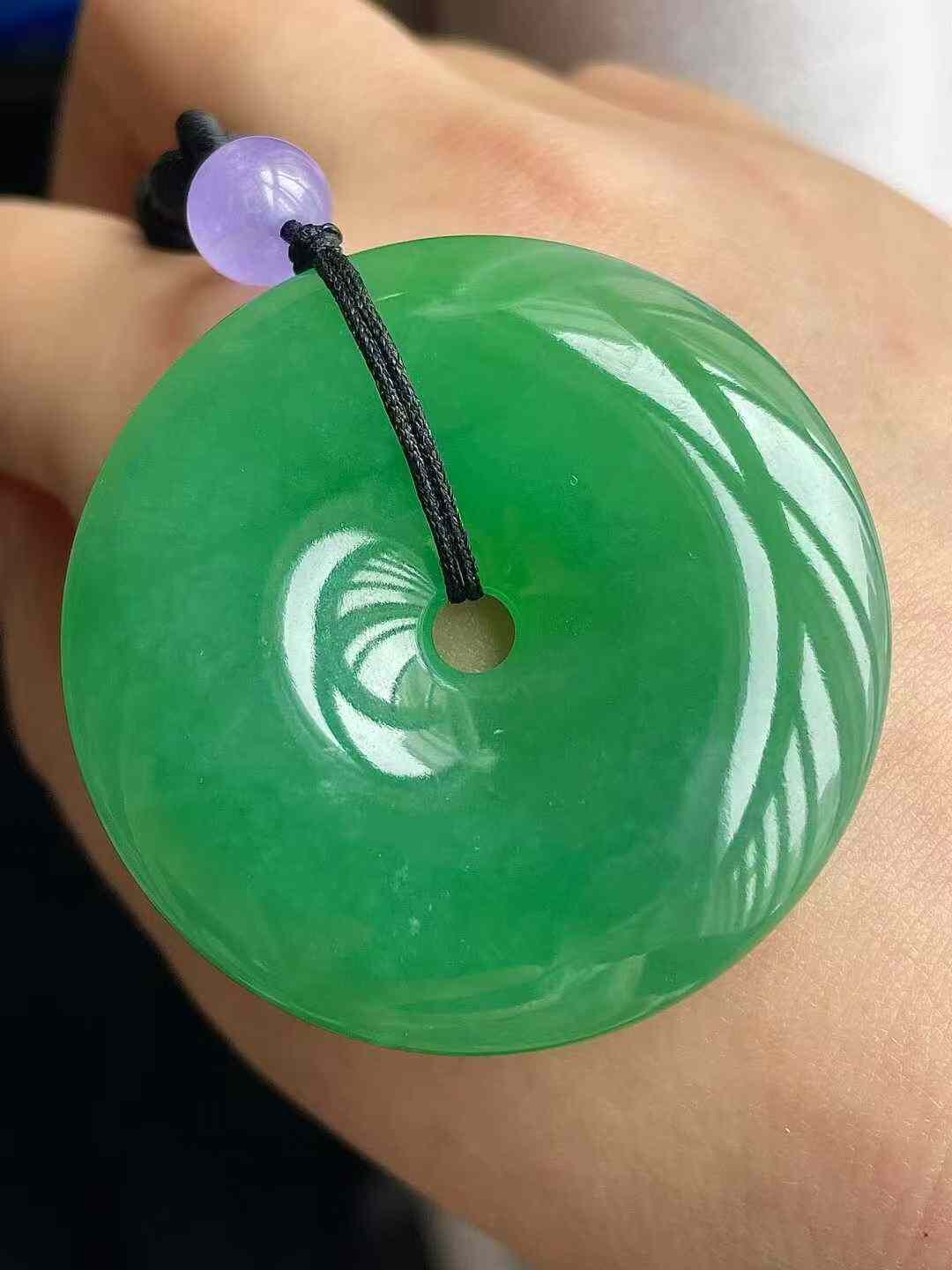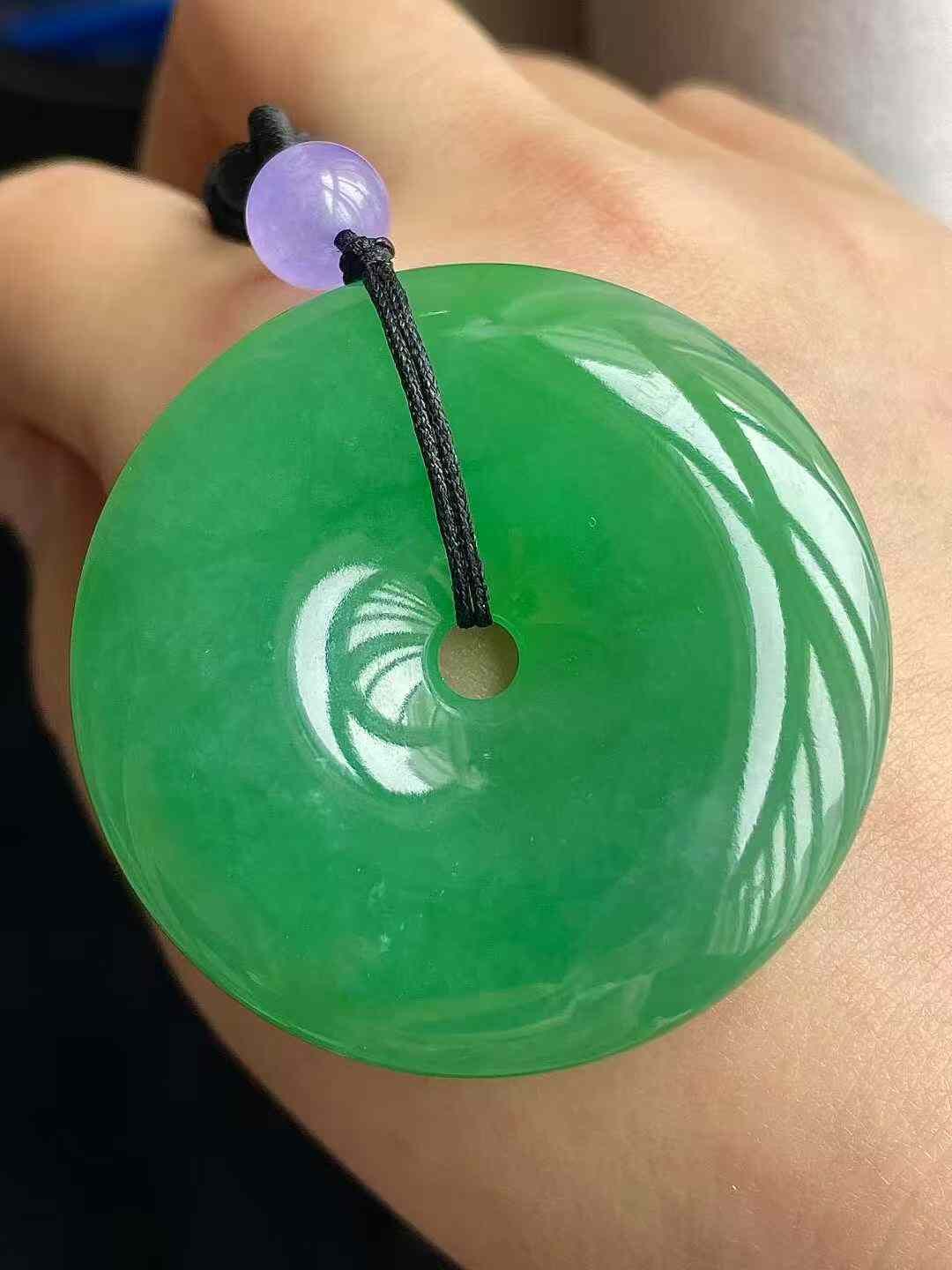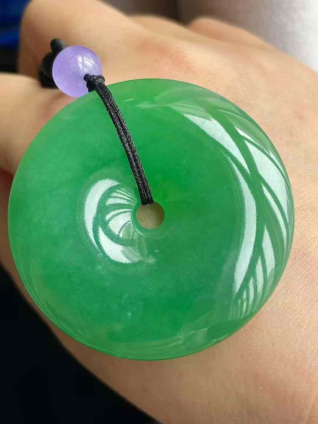 • 翡翠冰種陽綠平安扣吊墜 (43.3mm直徑),天然翡翠A玉, 緬甸玉, Jade, Jadeite