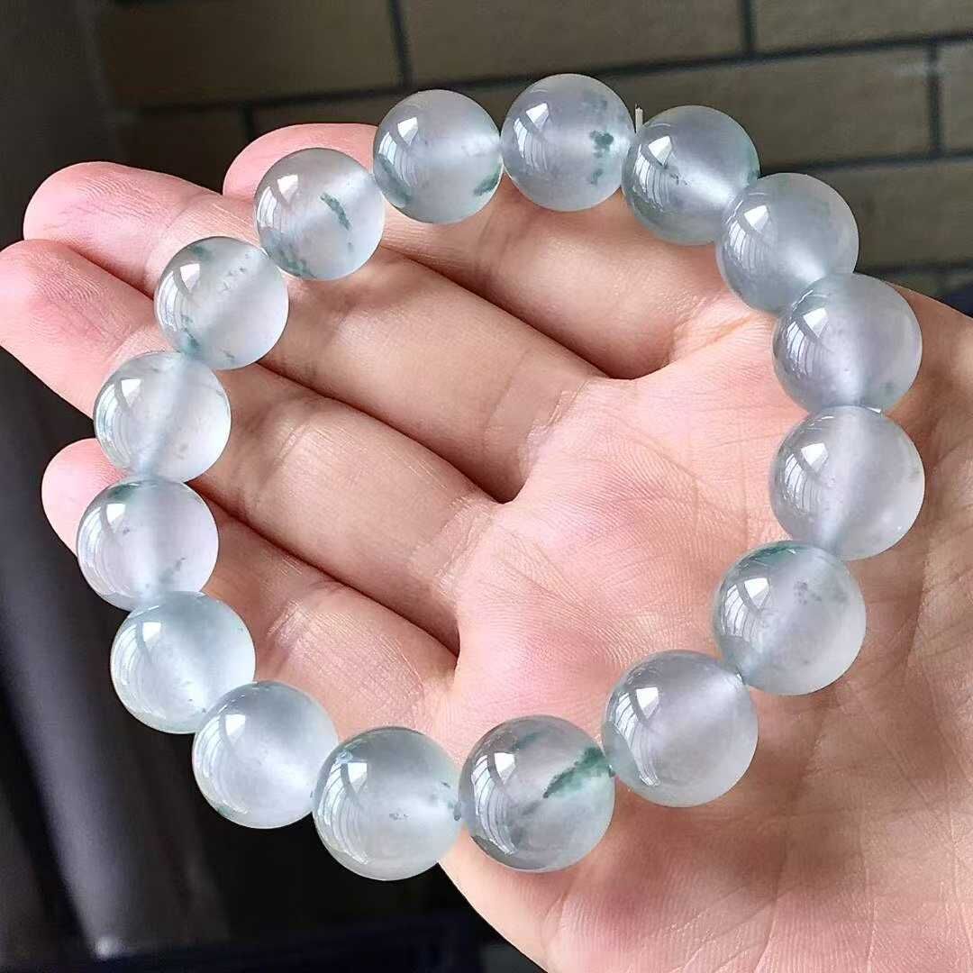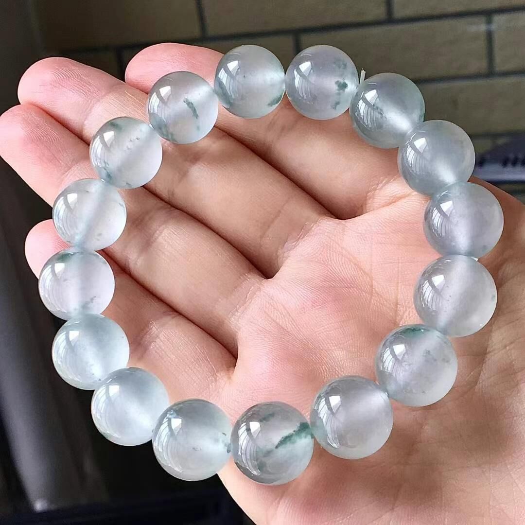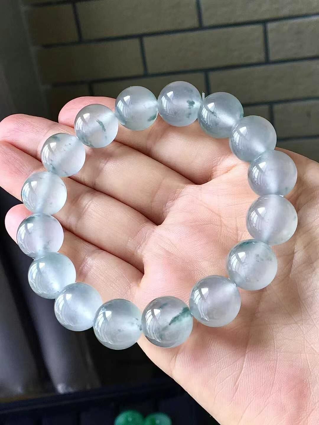 7125517 翡翠玻璃種飄花手串 (12.4mm直徑)