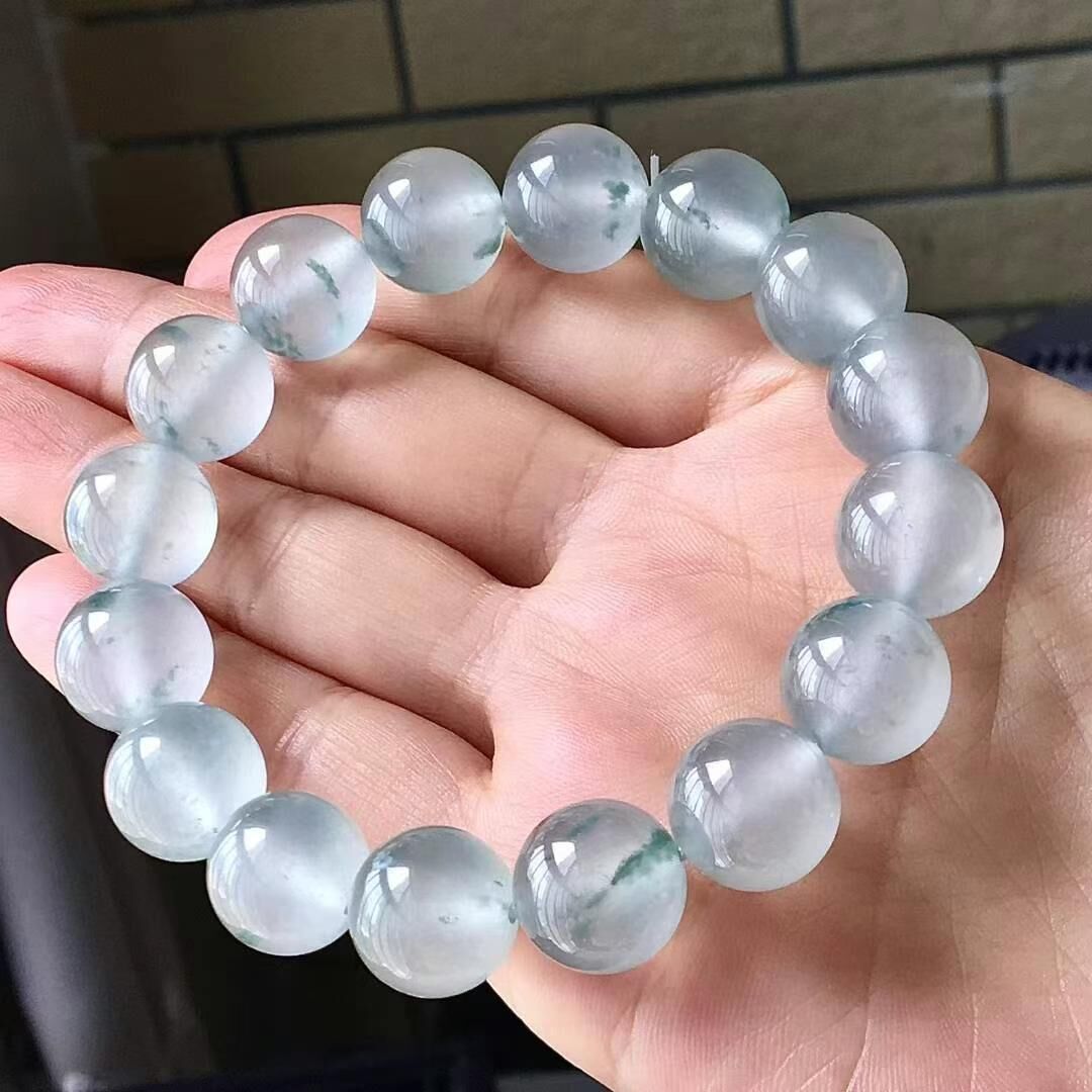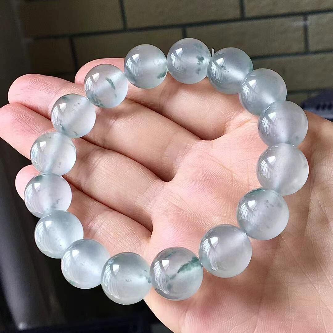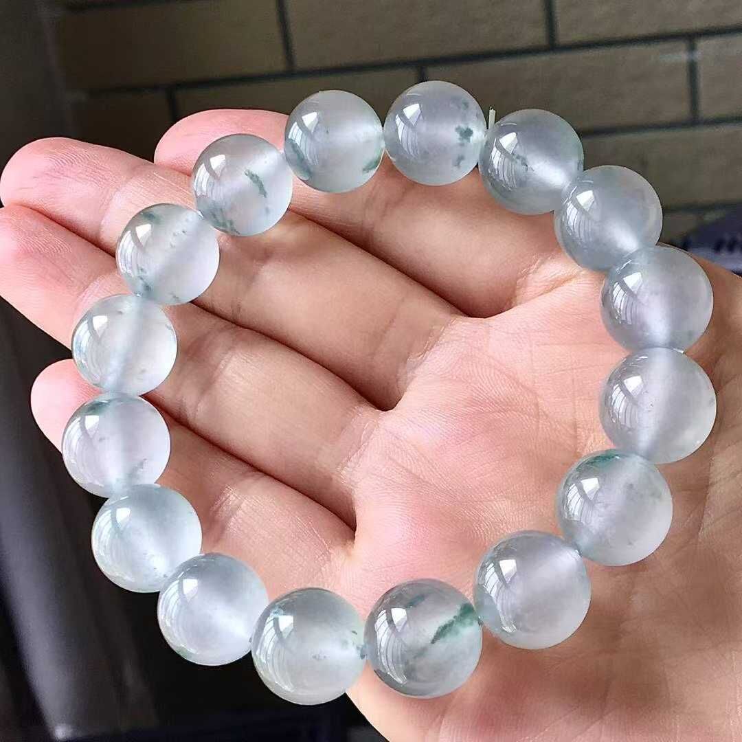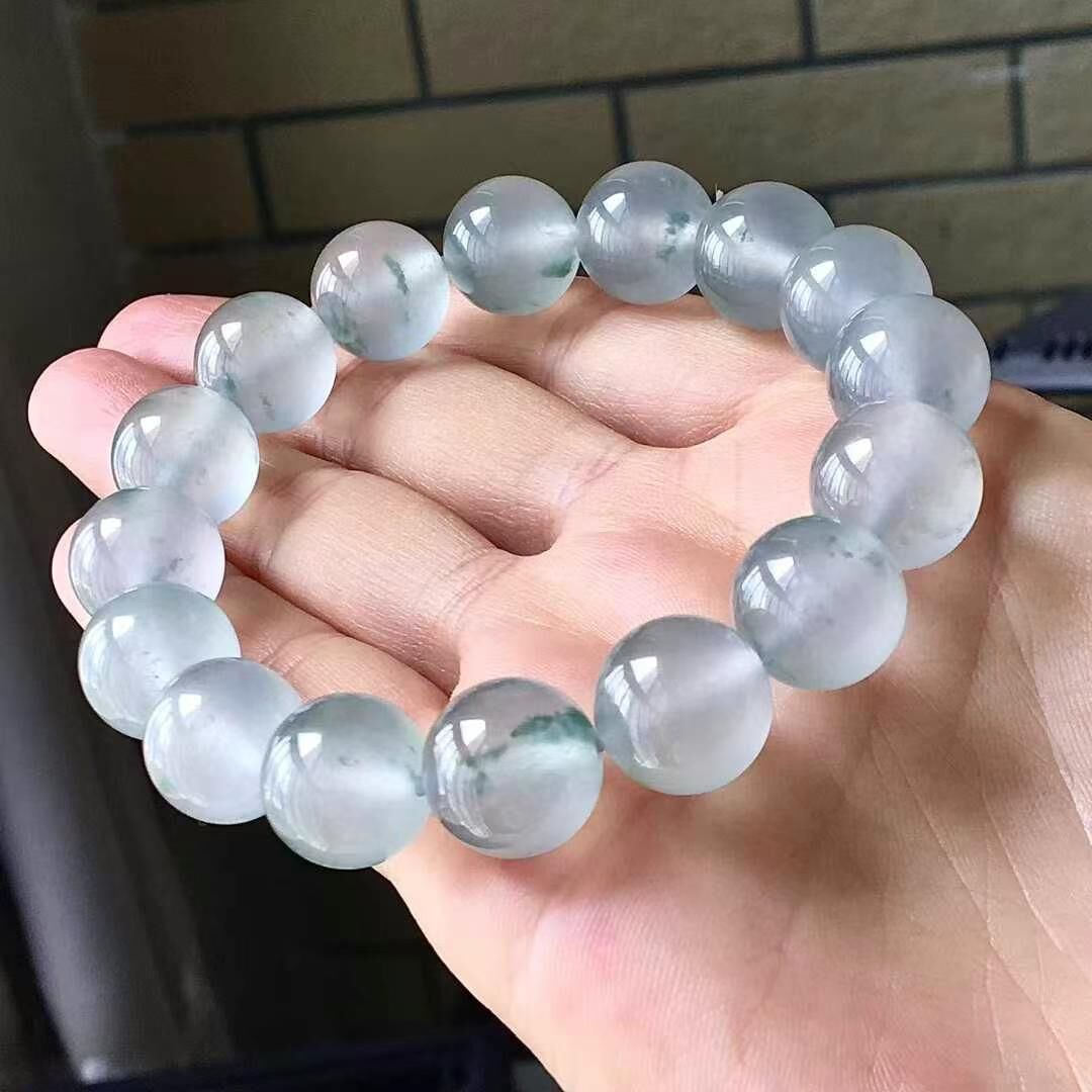 7125517 翡翠玻璃種飄花手串 (12.4mm直徑)