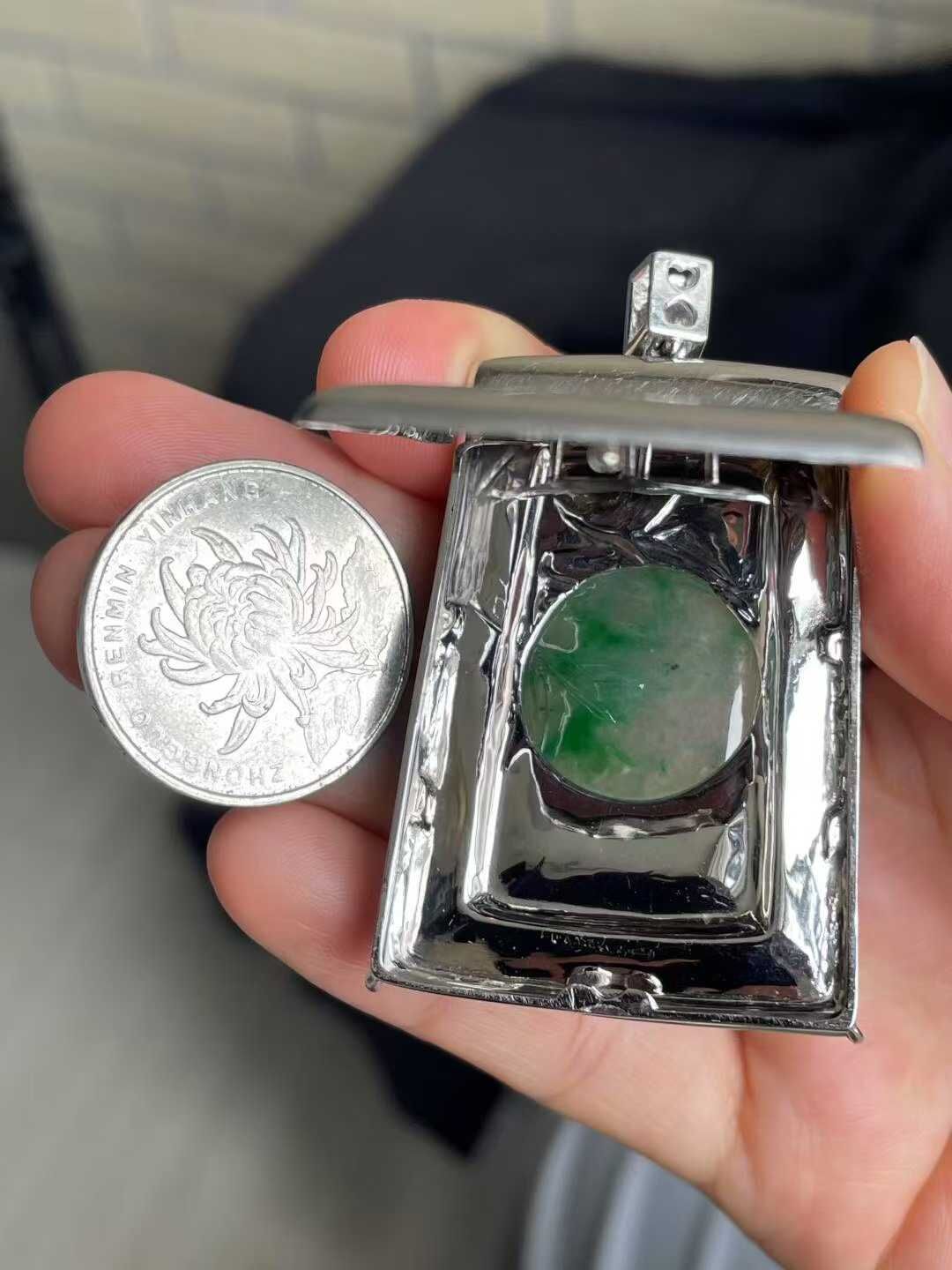 7125519 翡翠冰種陽綠山水牌吊墜