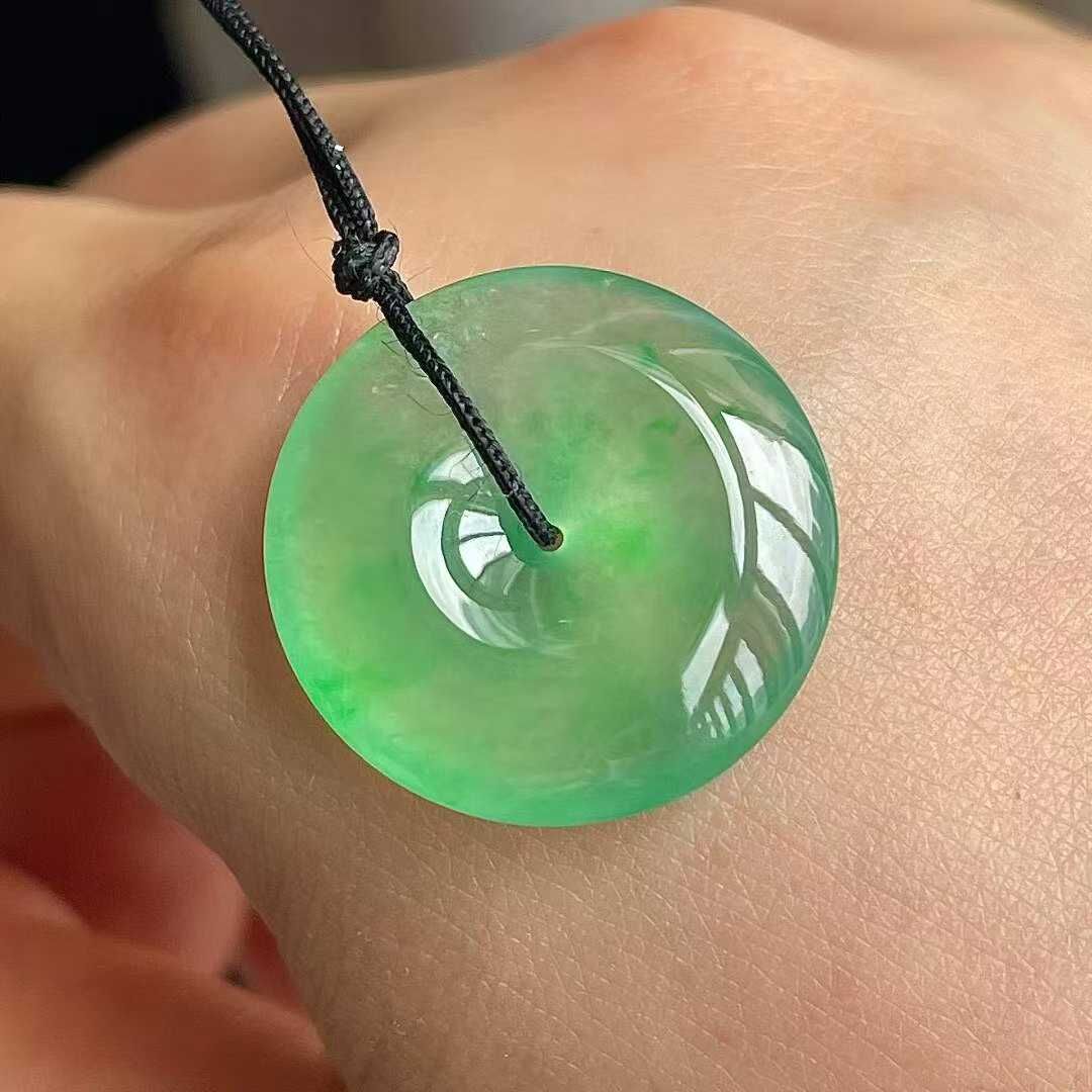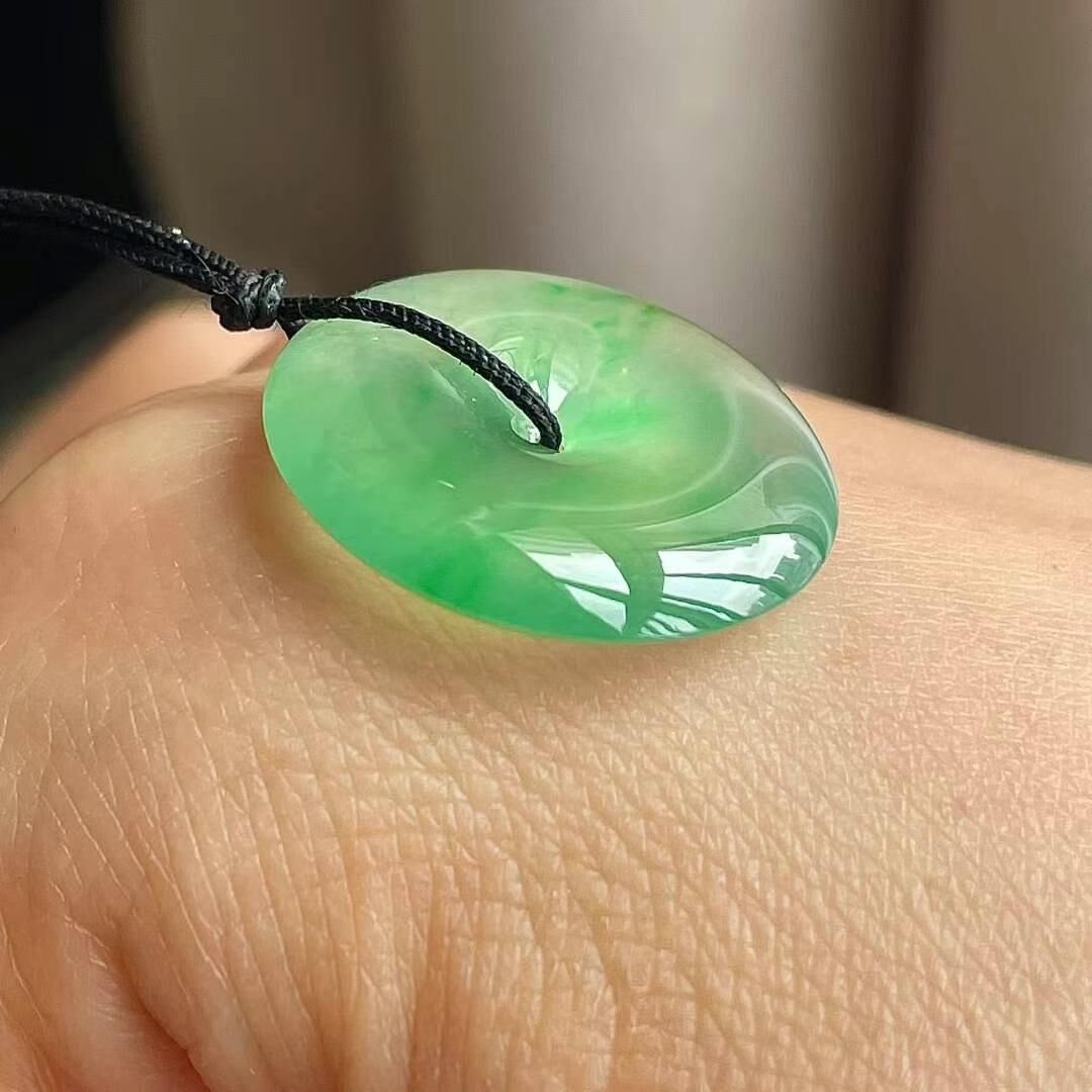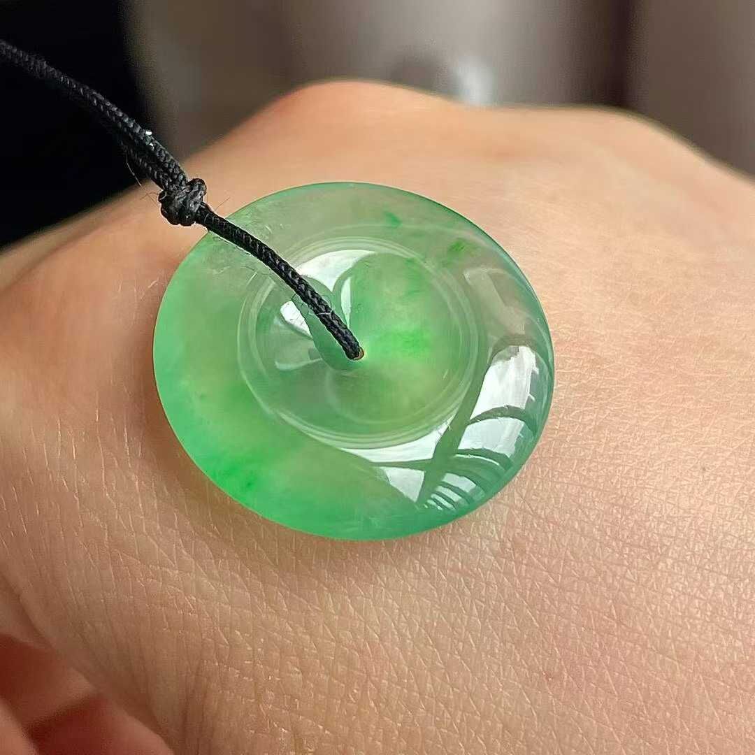 • 翡翠高冰陽綠平安扣吊墜 (19.8mm直徑),天然翡翠A玉, 緬甸玉, Jade, Jadeite