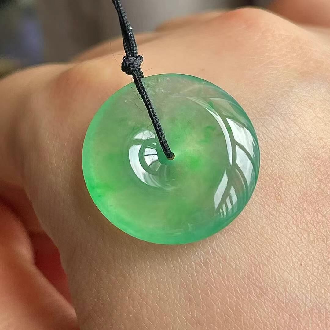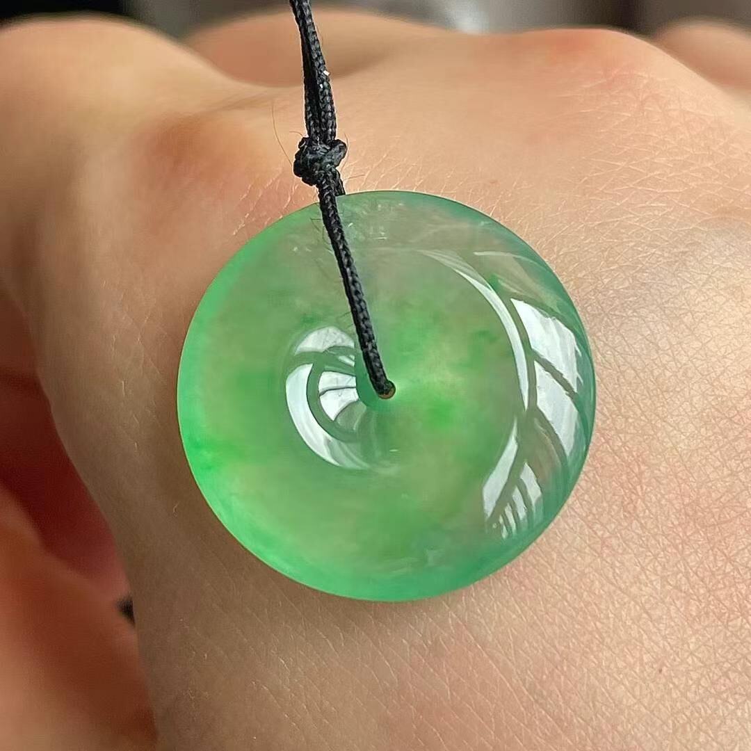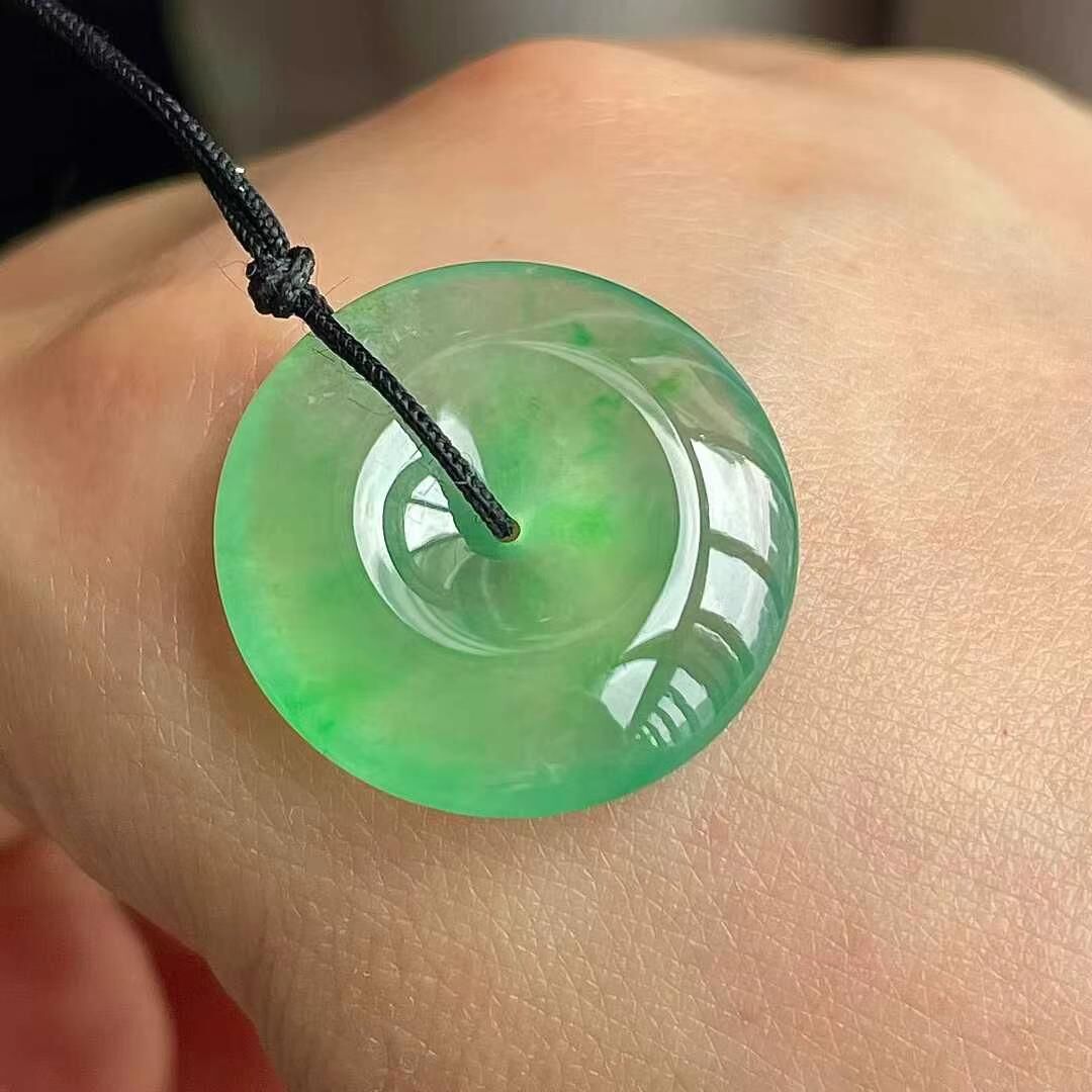 • 翡翠高冰陽綠平安扣吊墜 (19.8mm直徑),天然翡翠A玉, 緬甸玉, Jade, Jadeite