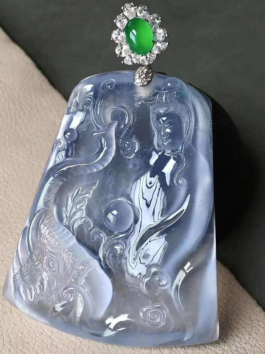 天然翡翠A玉,緬料,飽滿水潤,無裂,雕工精細,起光。