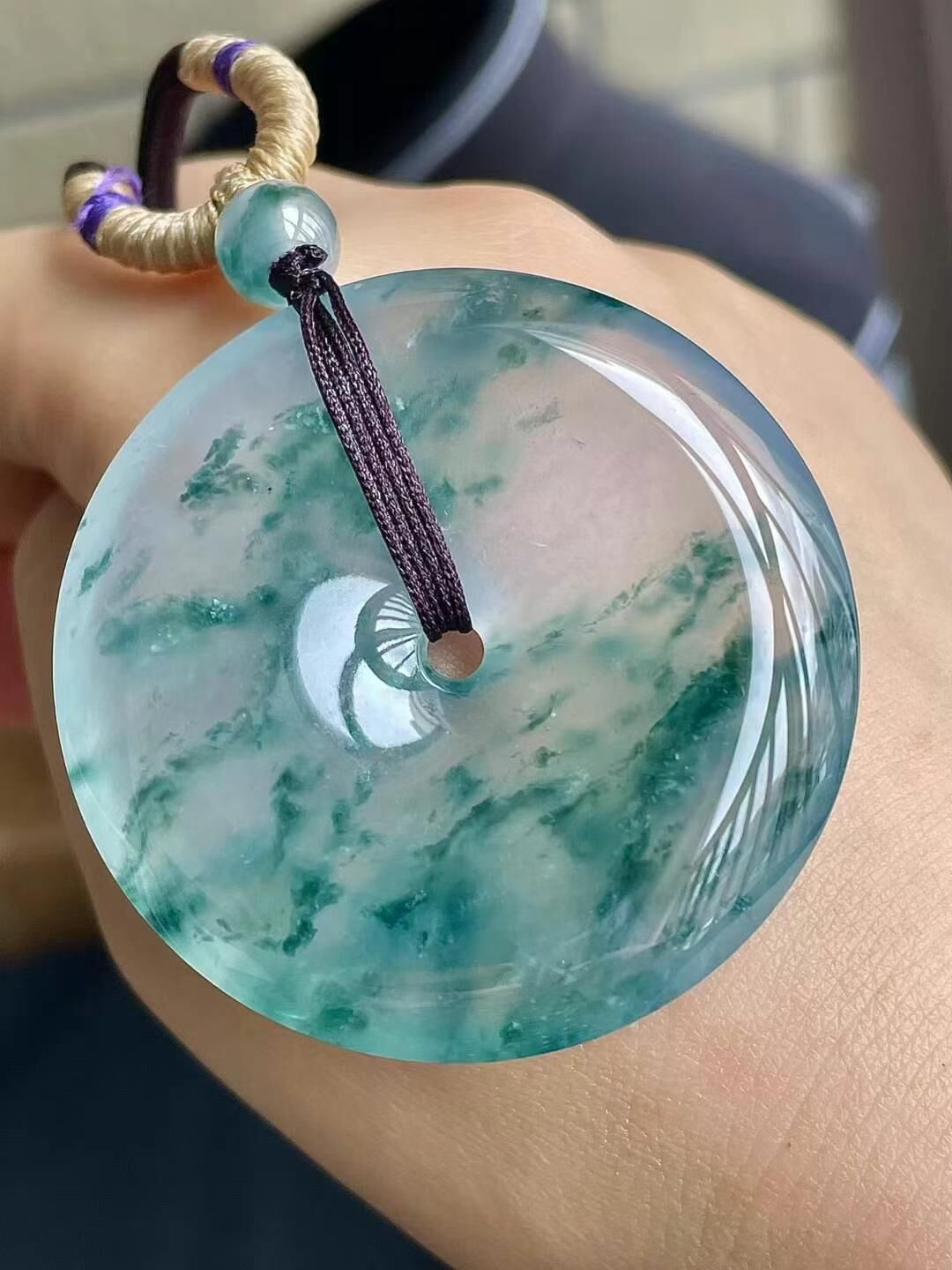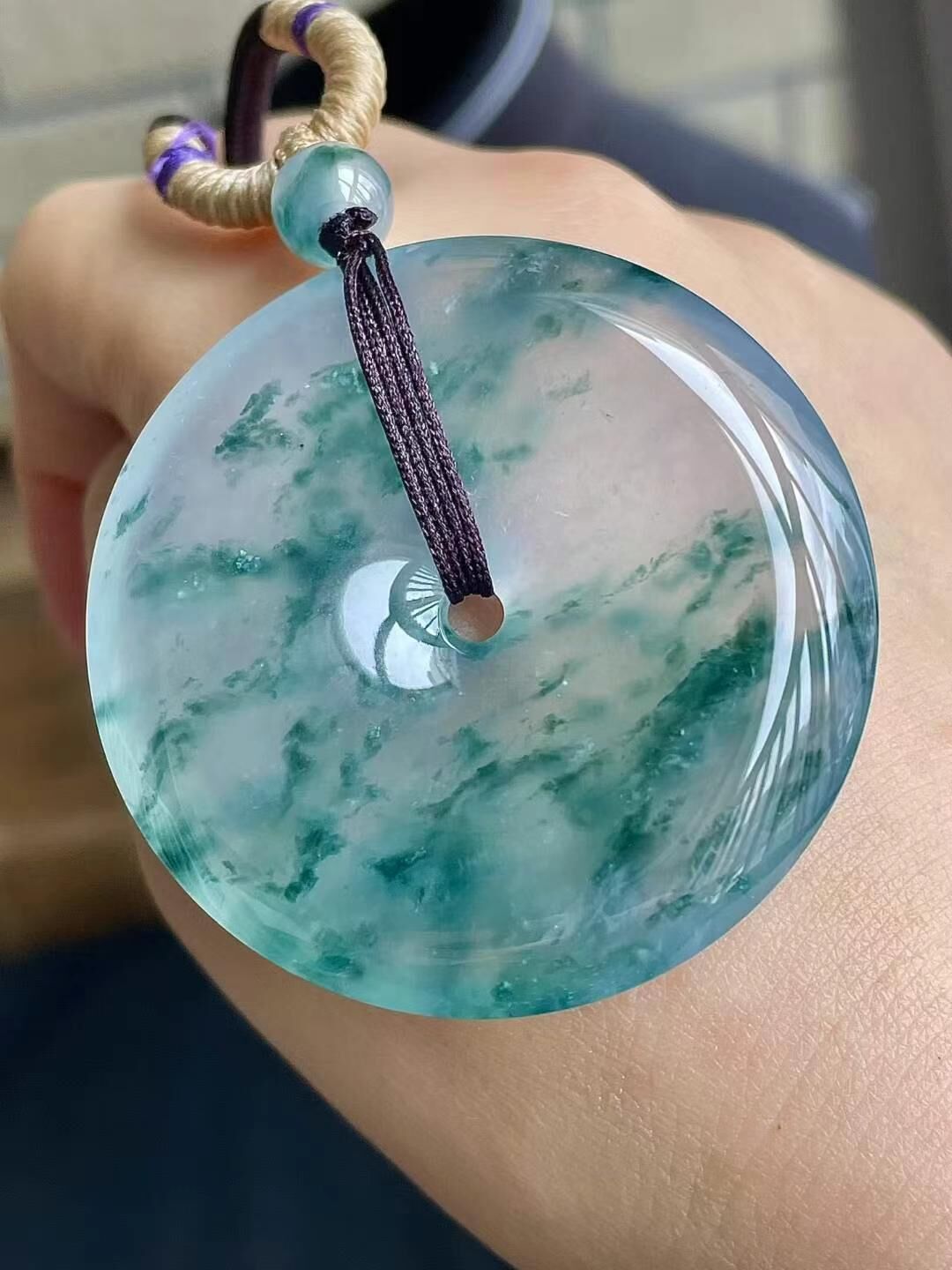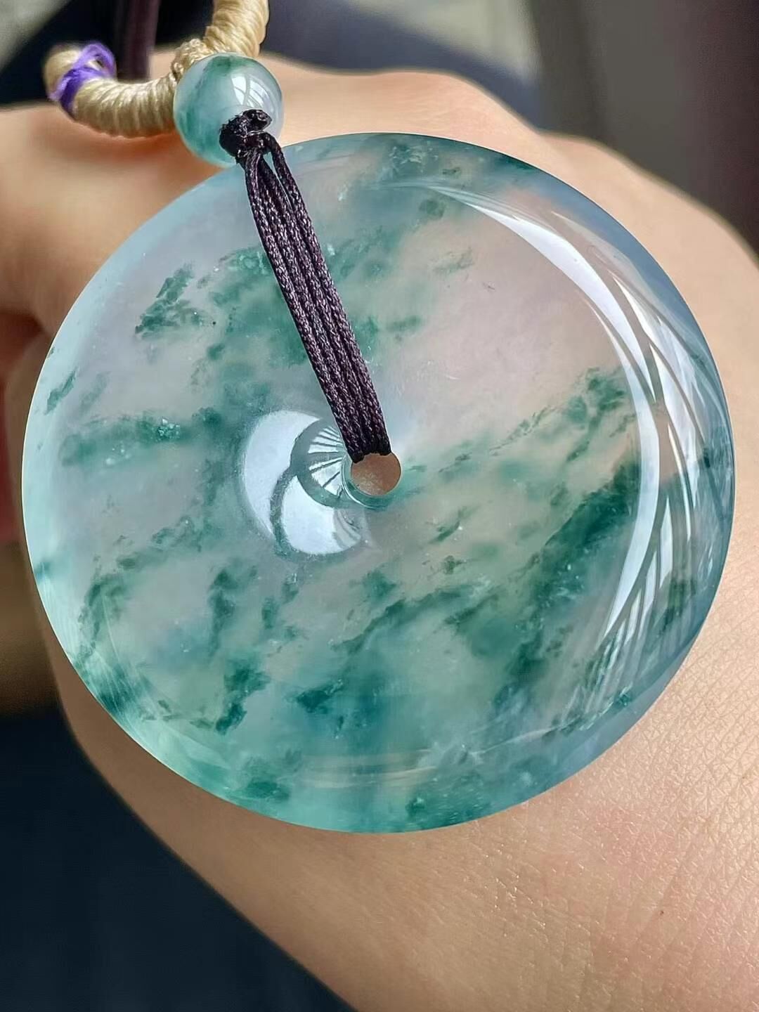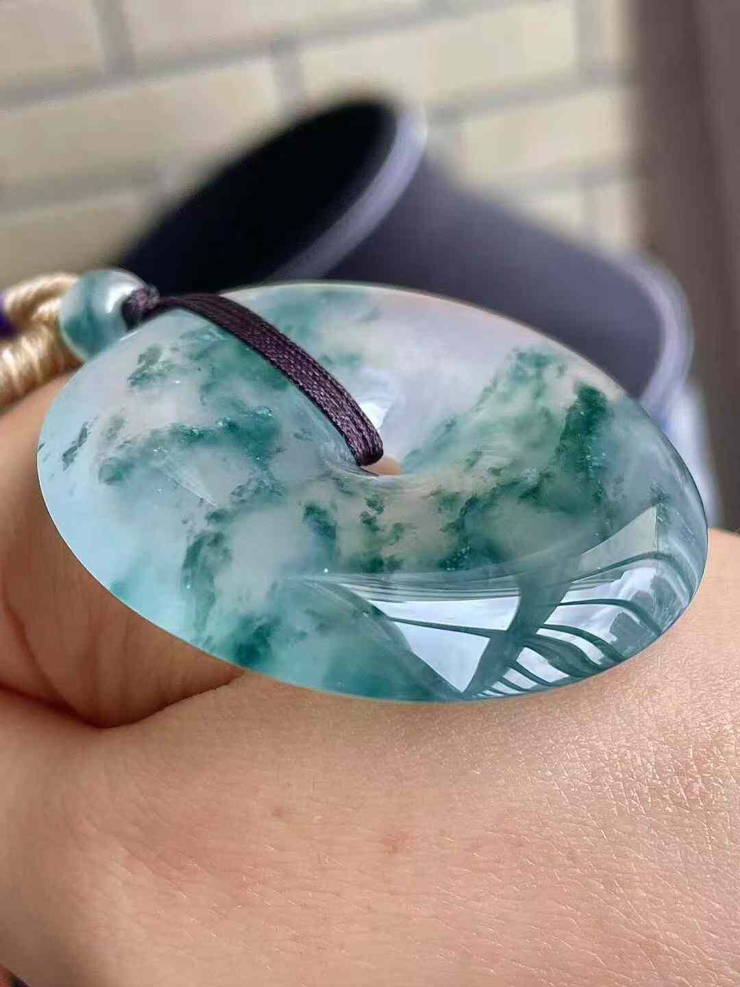 7125525 翡翠高冰飄藍花平安扣