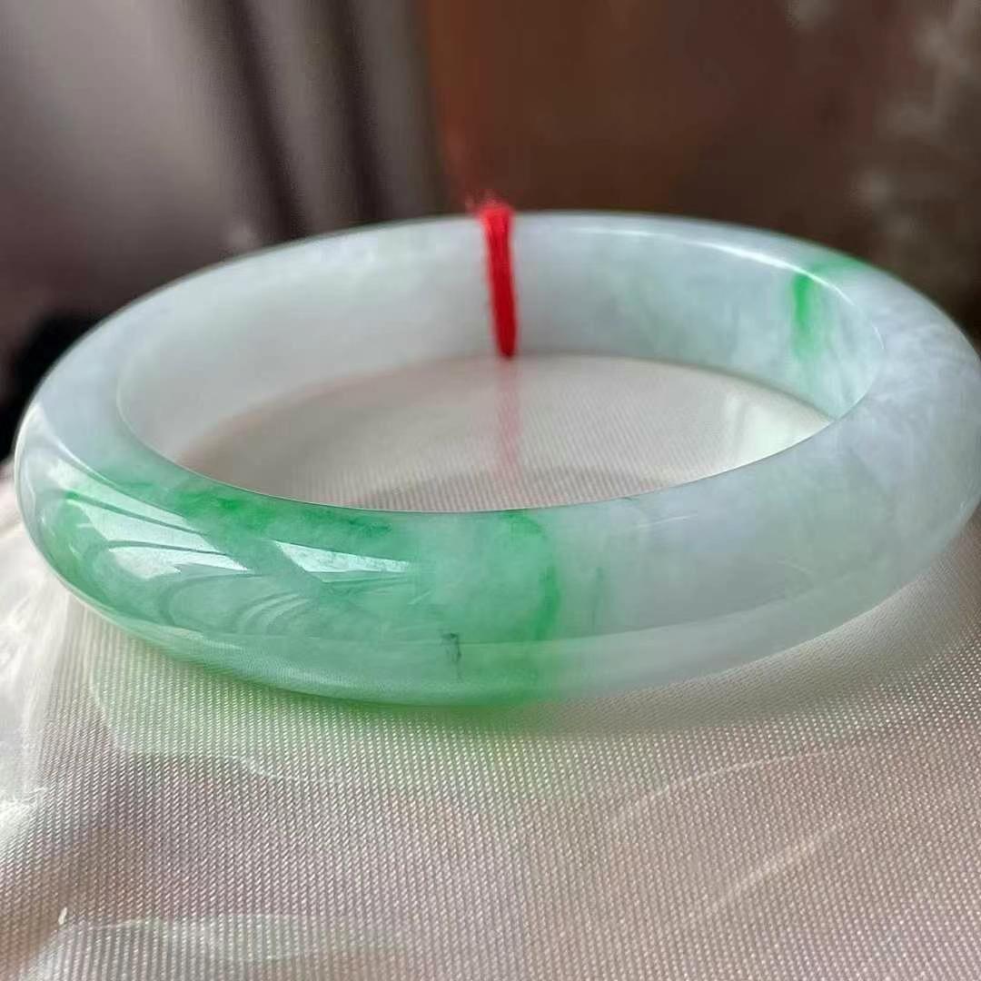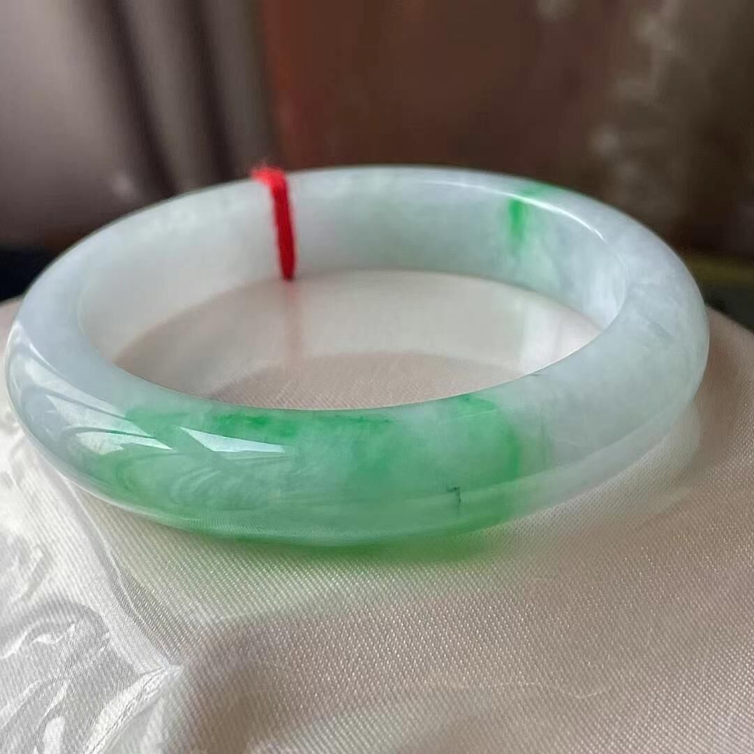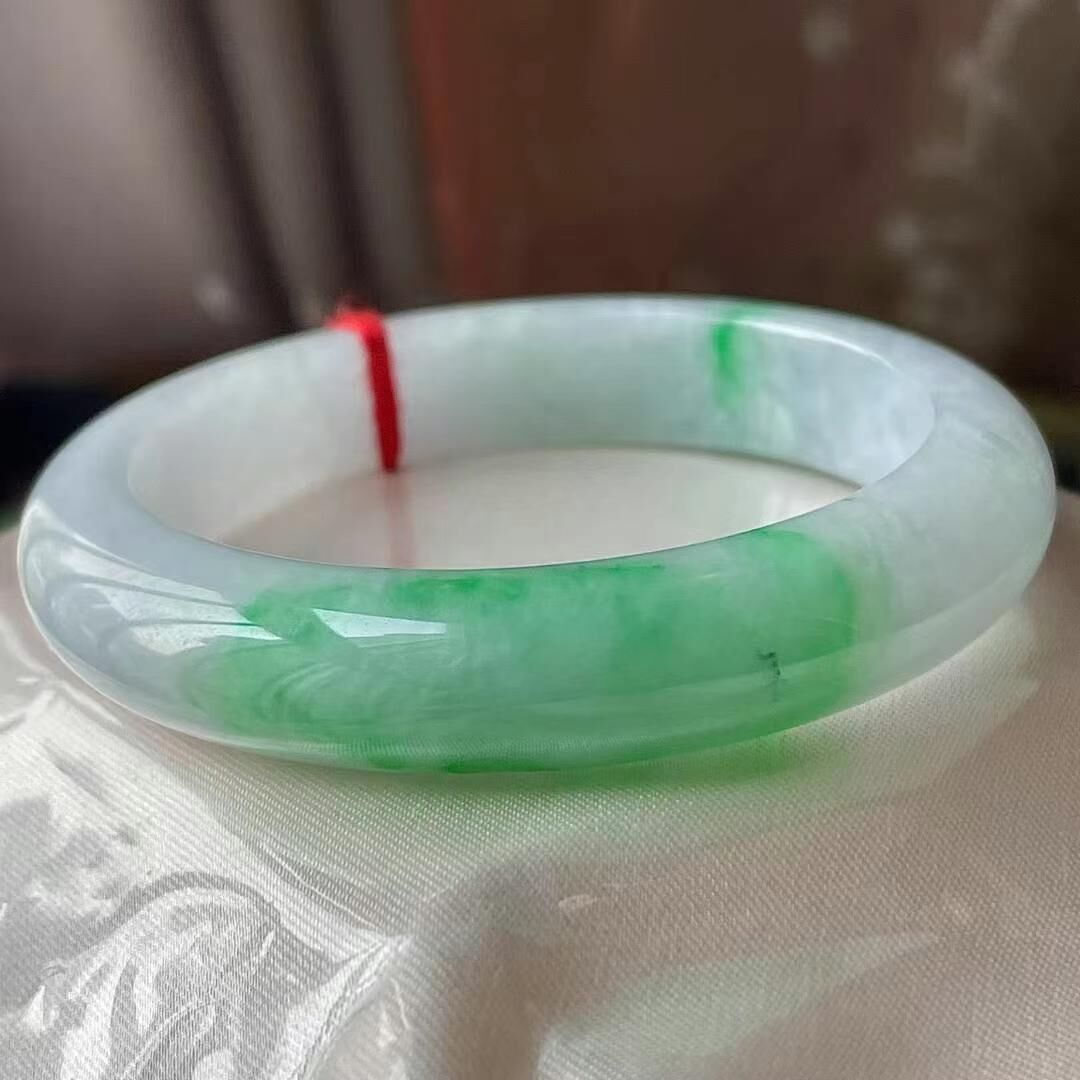 • 冰種飄綠翡翠正圈手鐲,天然翡翠A玉, 緬甸玉, Jade, Jadeite