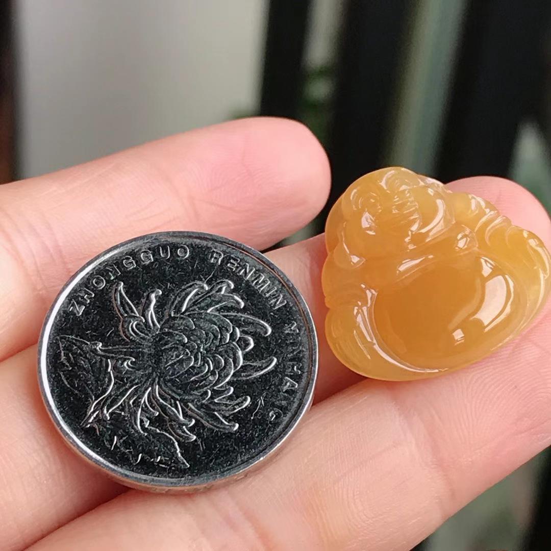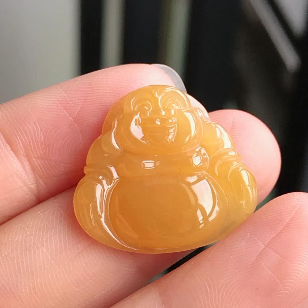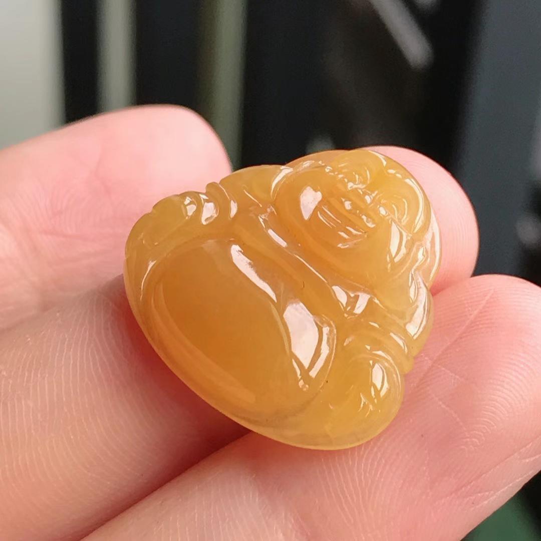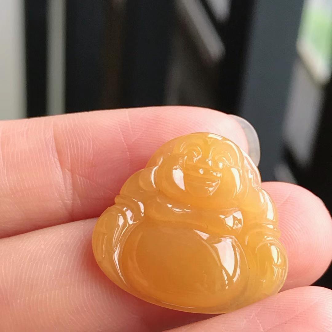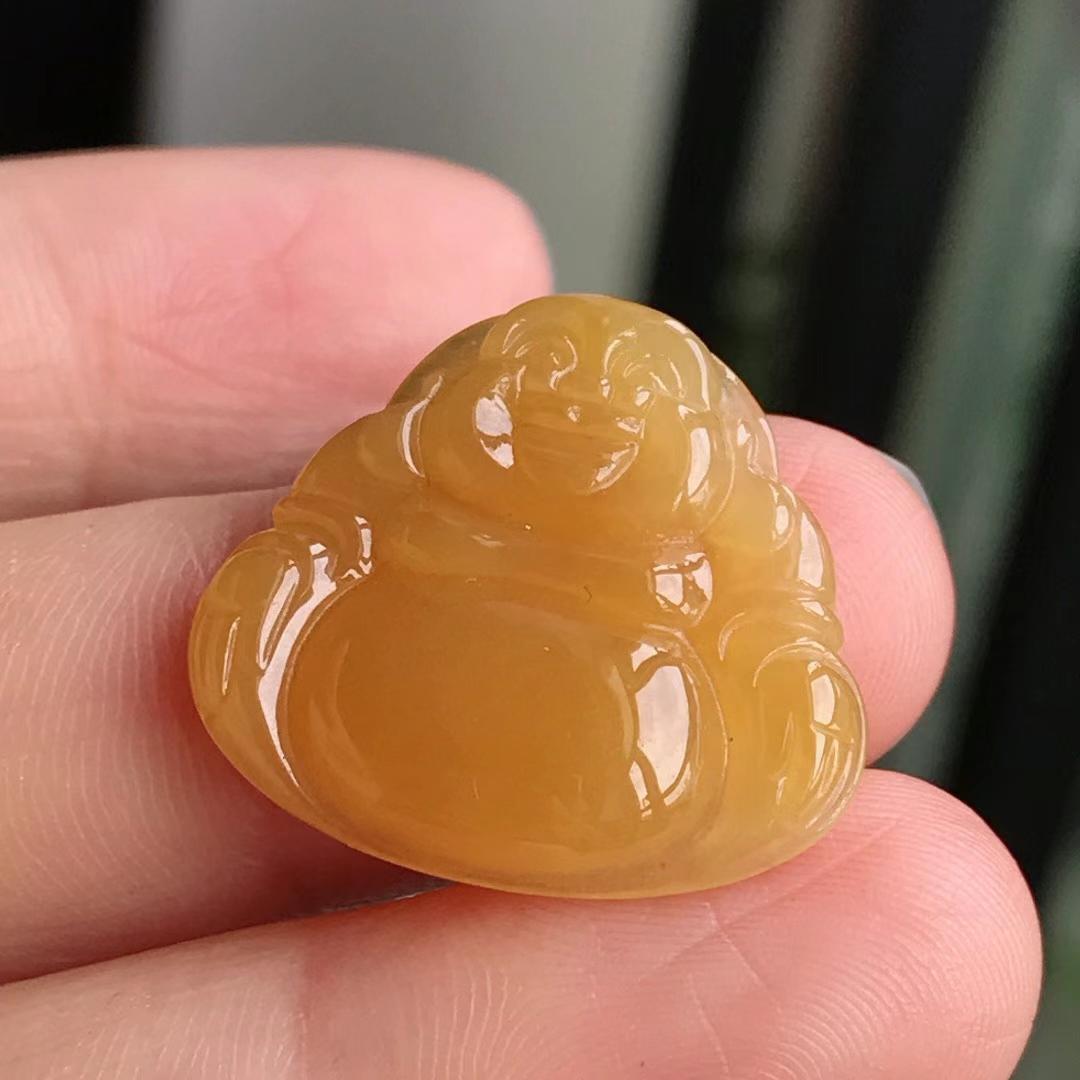 • 黃翡笑佛公吊墜, 天然翡翠A玉, 緬甸玉, Jade, Jadeite