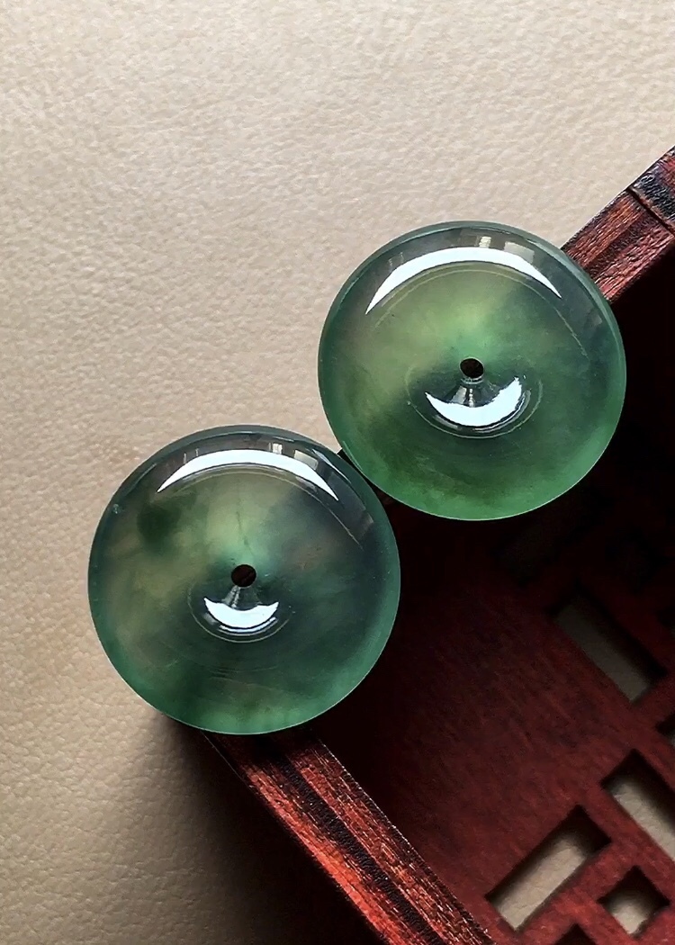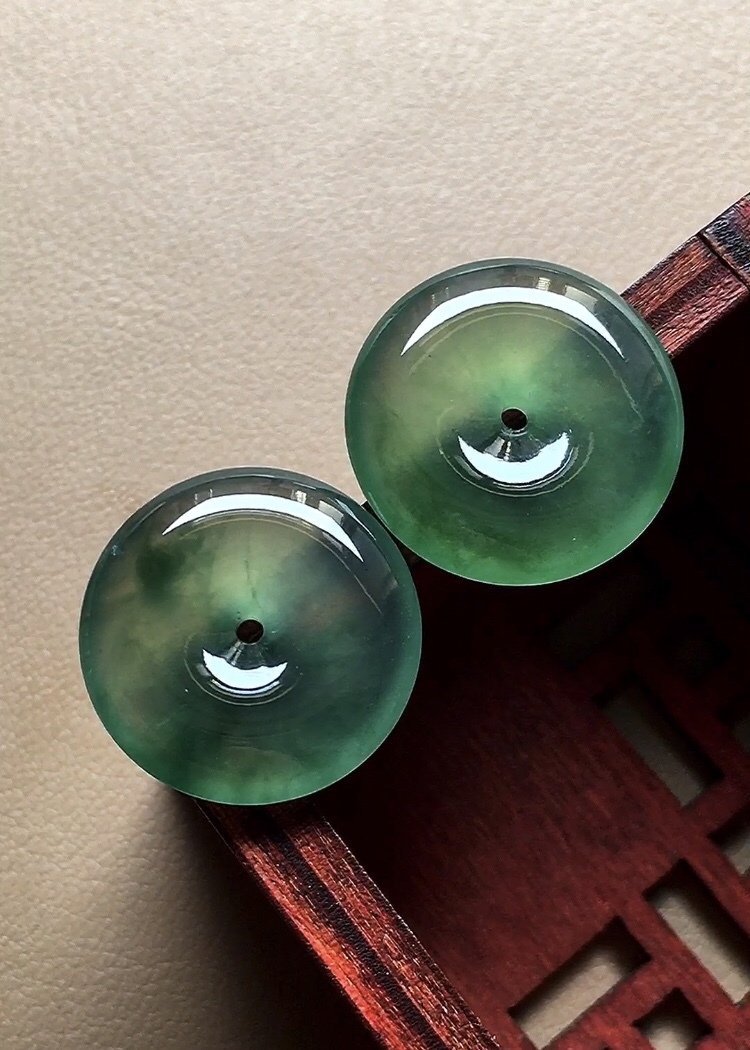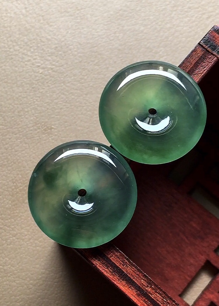 • 翡翠高冰晴水懷古一對 (17mm直徑),天然翡翠A玉, 緬甸玉, Jade, Jadeite